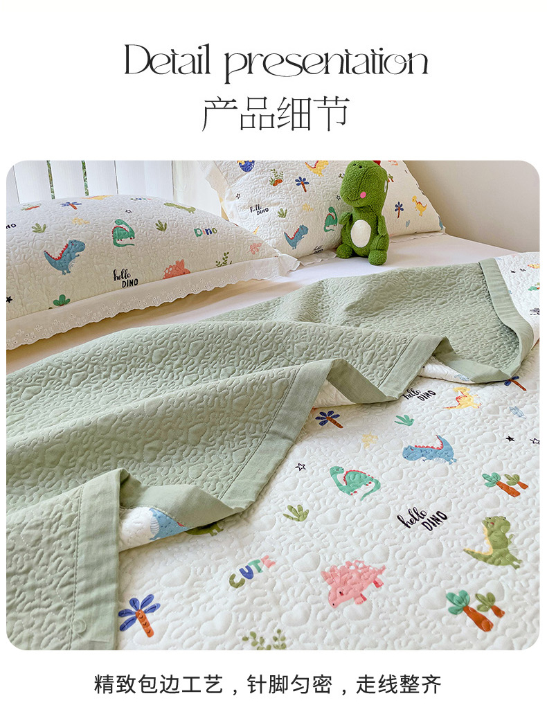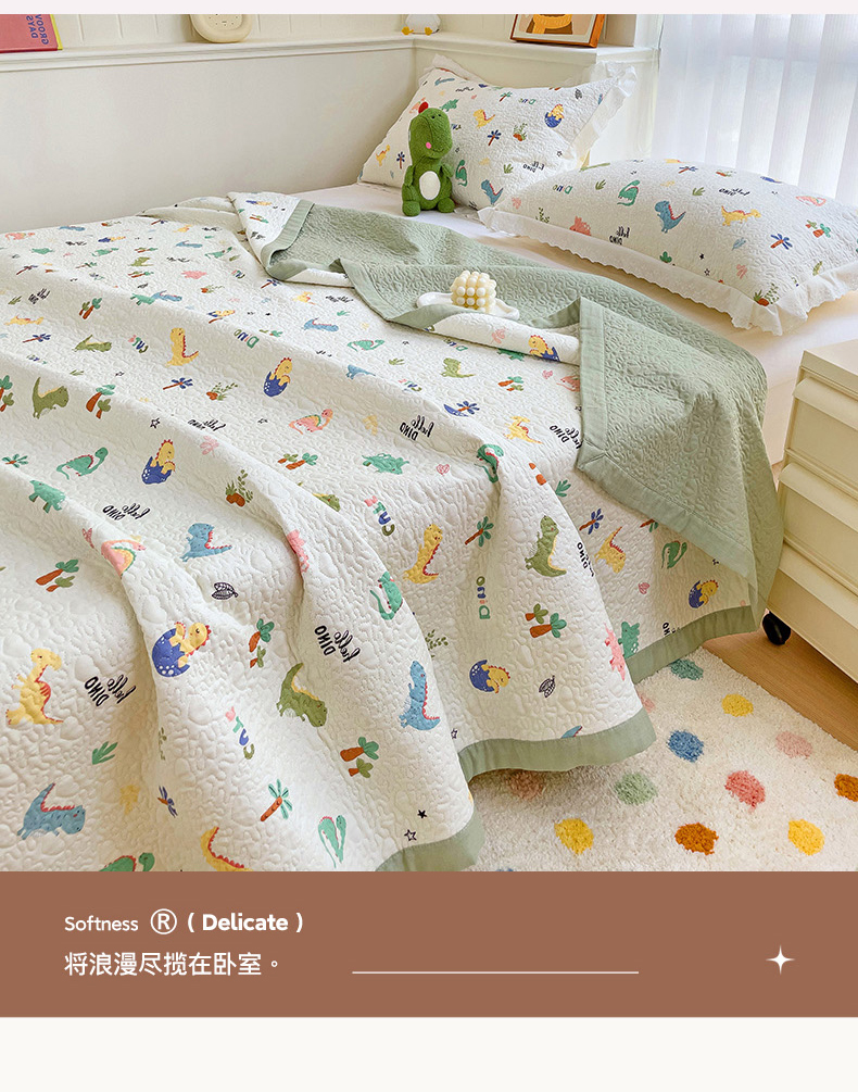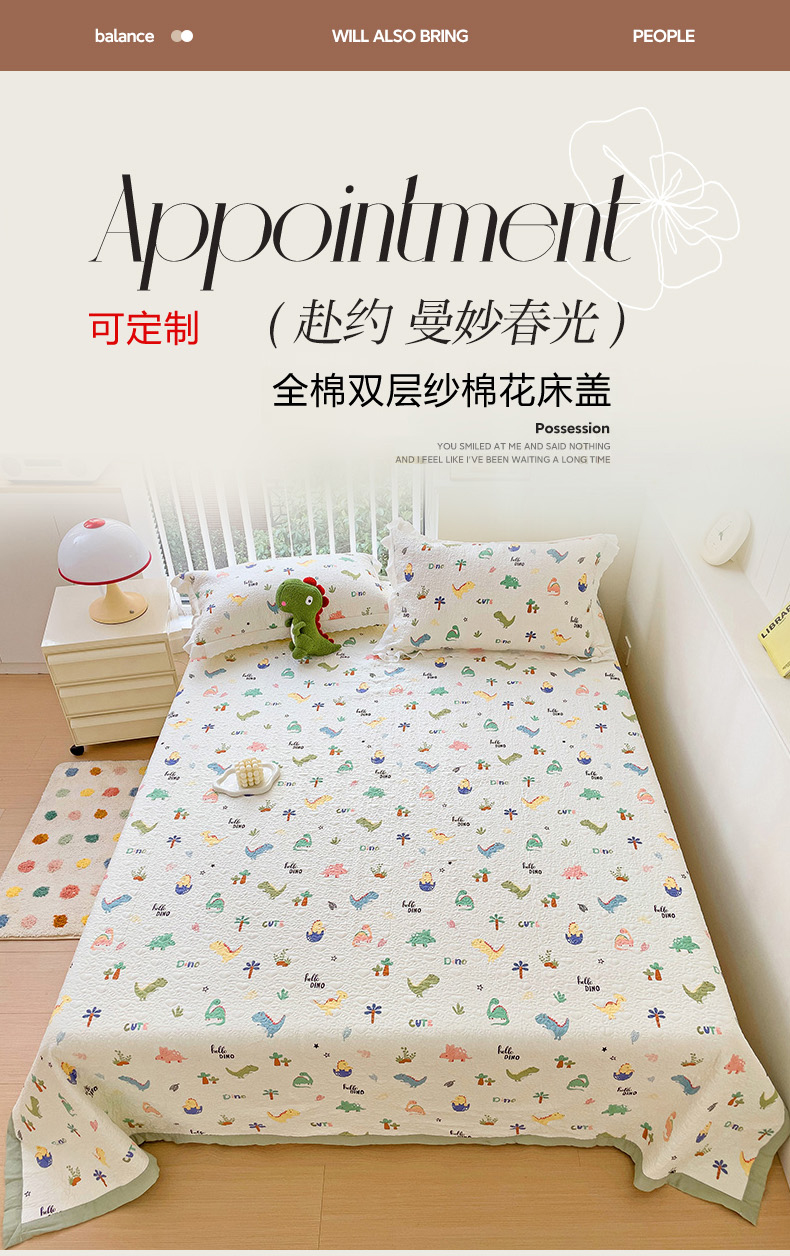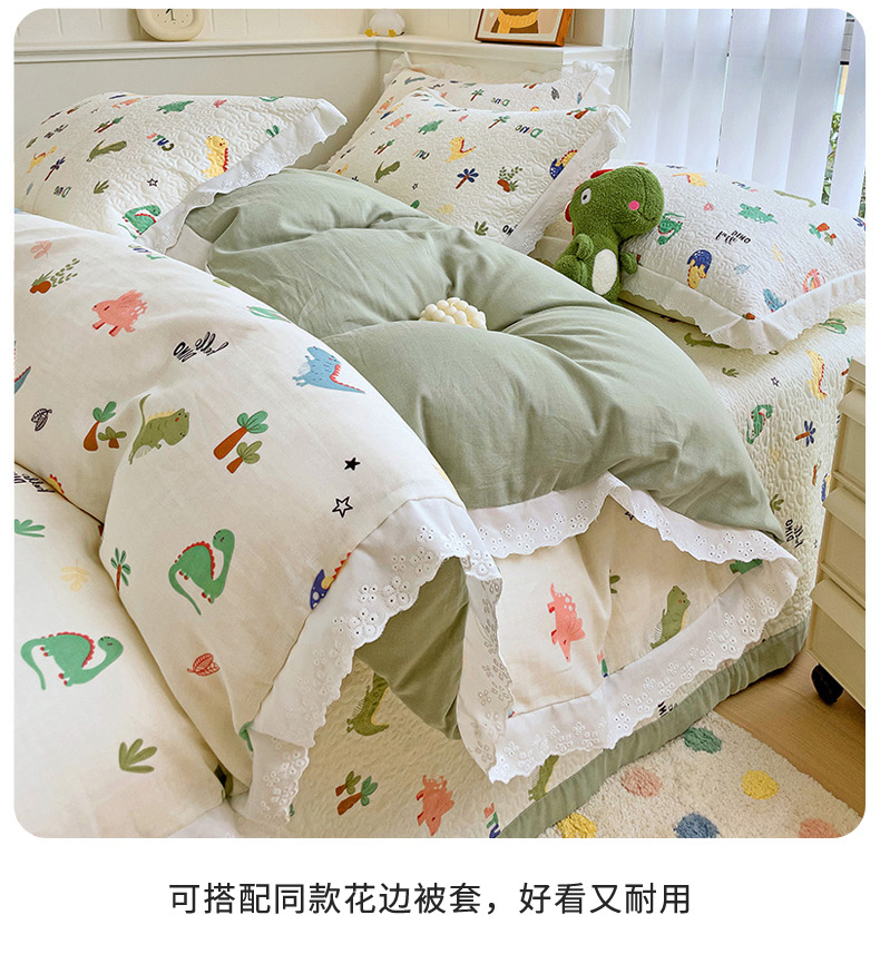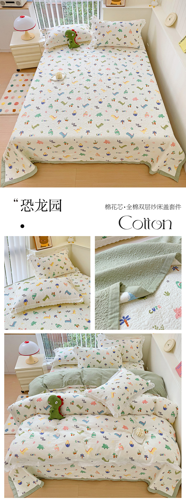 羽爱家纺 2024新款双层纱棉花芯床盖套件 恐龙园