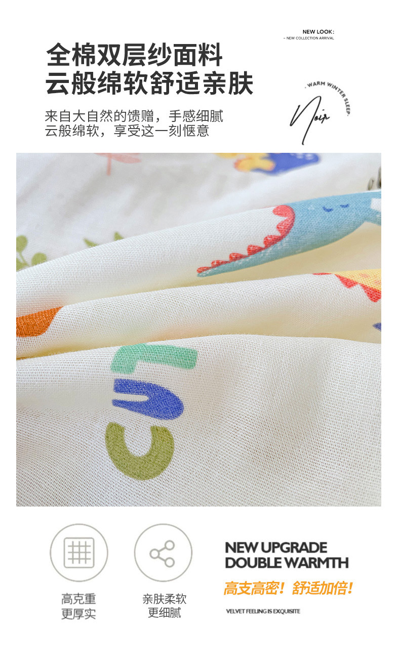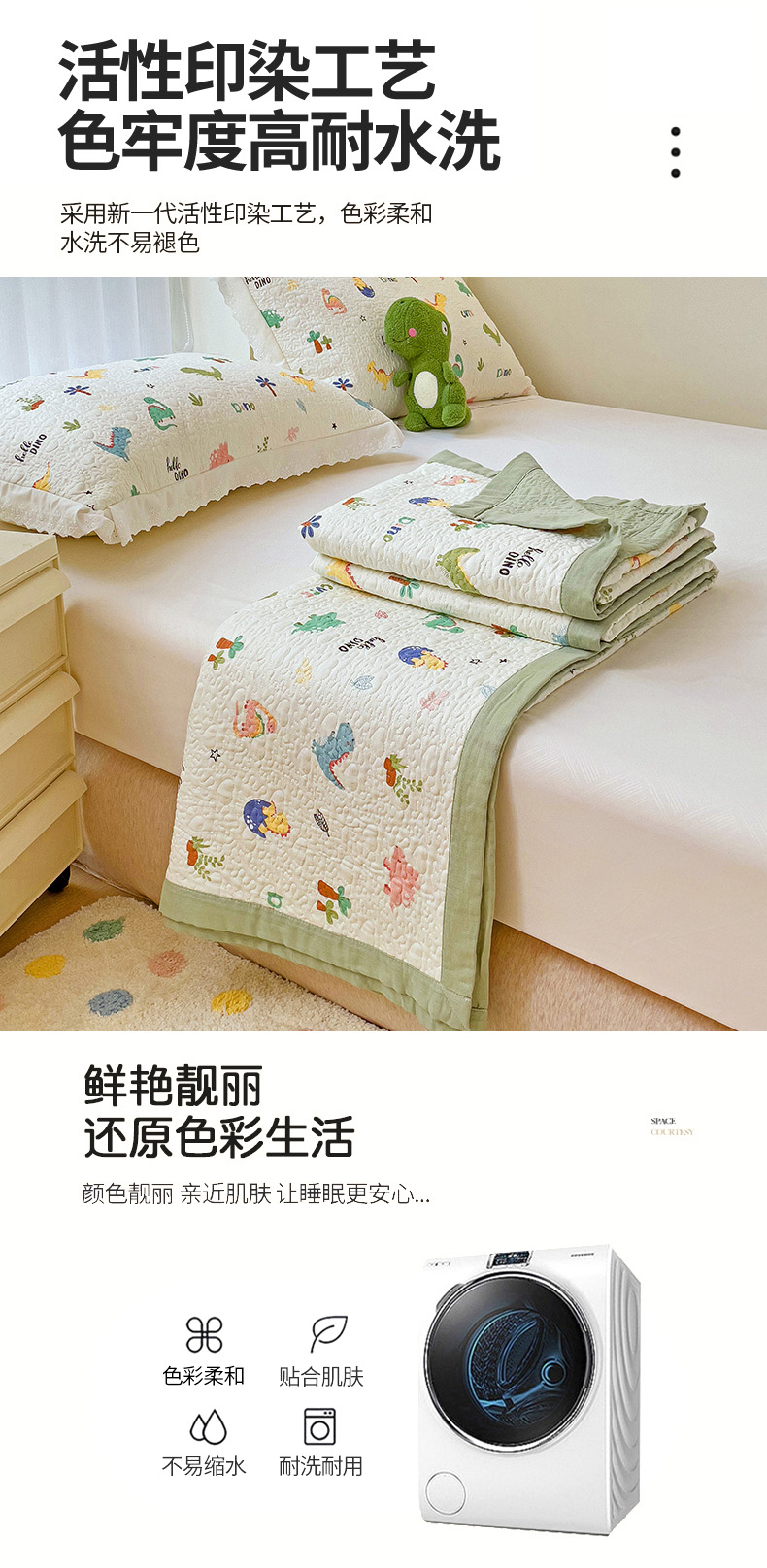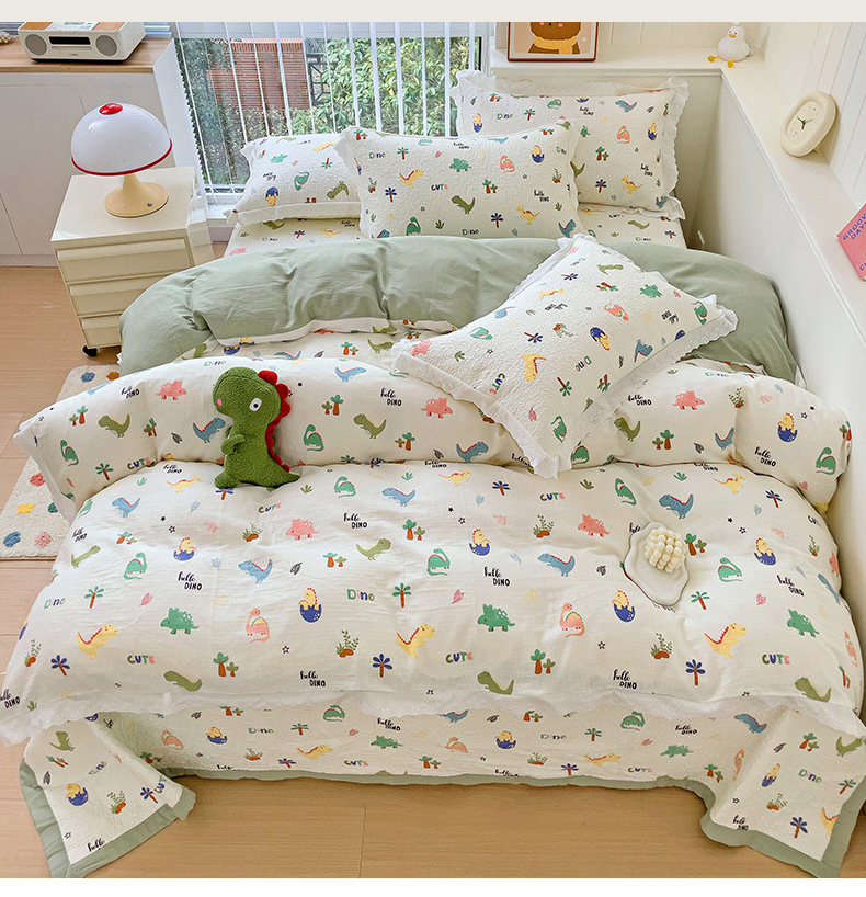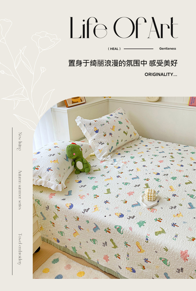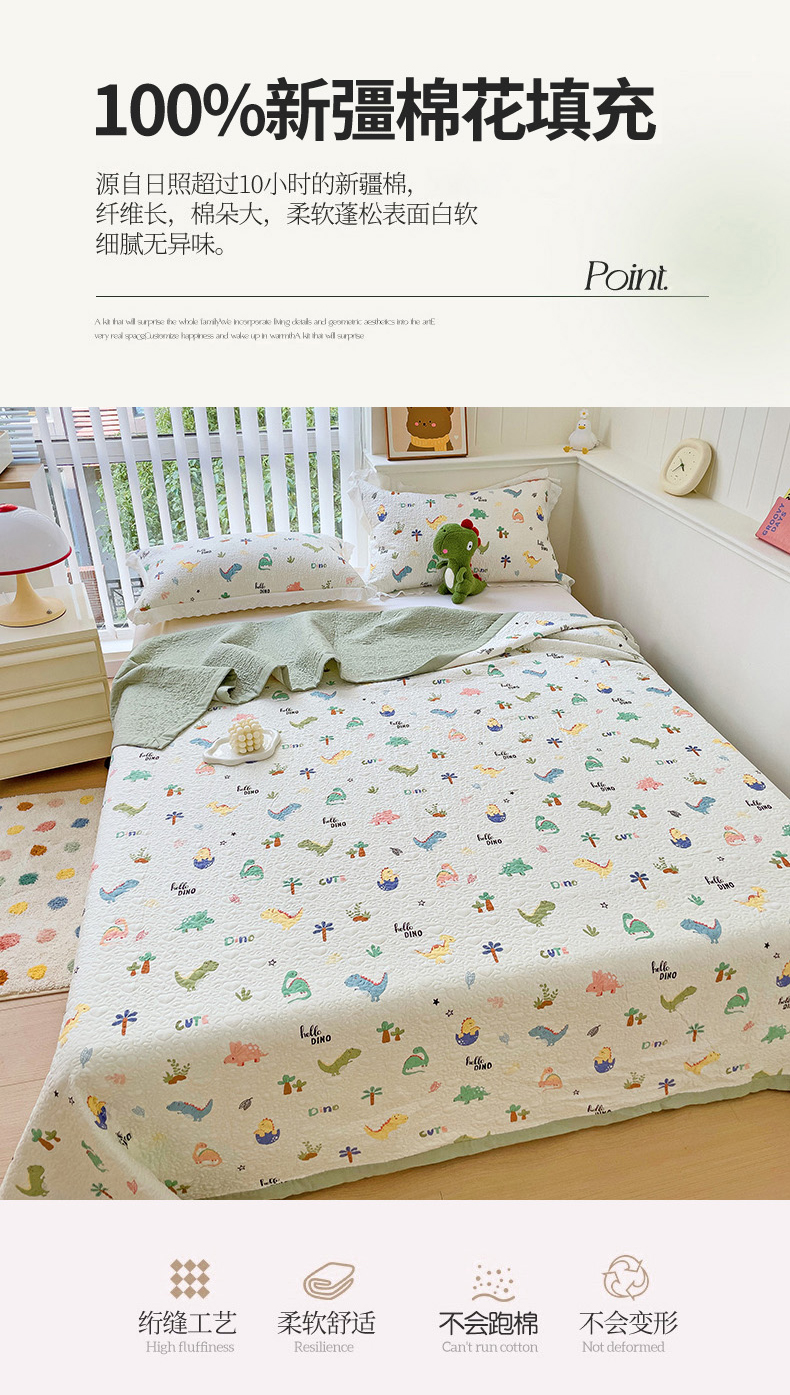 羽爱家纺 2024新款双层纱棉花芯床盖套件 恐龙园