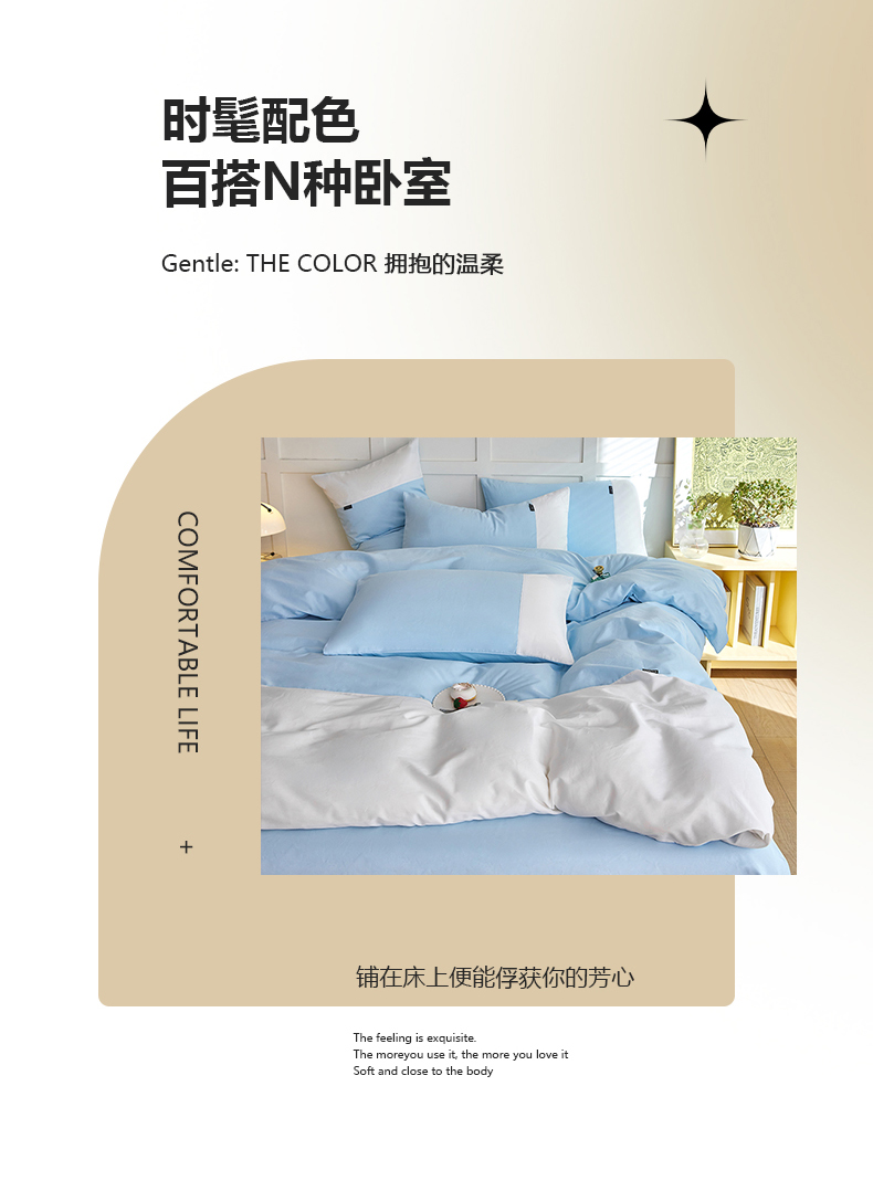 商品名称:(总)2024新款13372全棉拼色正拼四件套系列-简尚