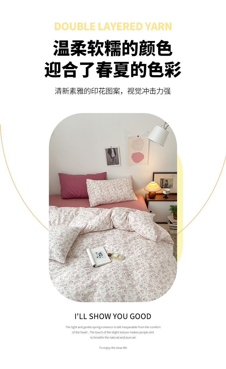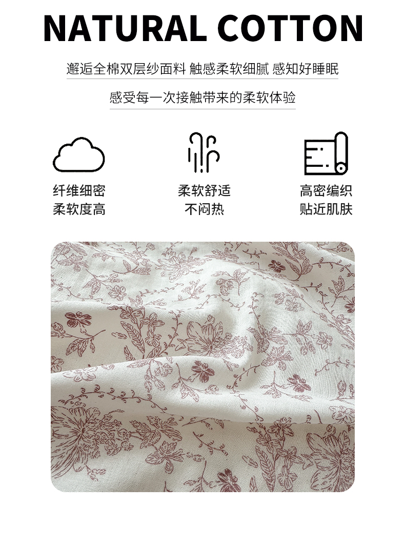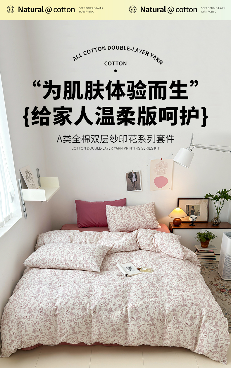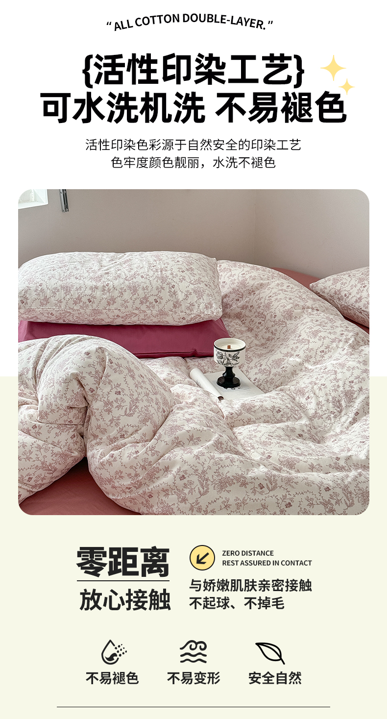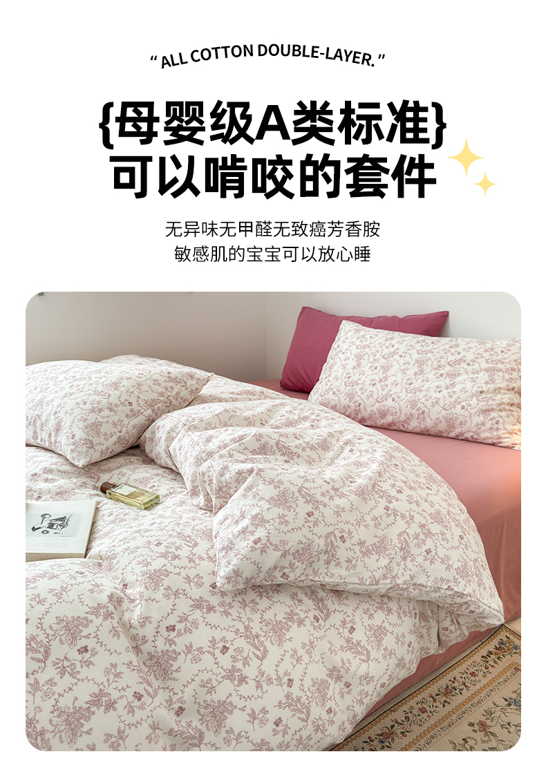 (总)优彩 2025新款全棉双层纱四件套,采花兔,彩蘑菇,初暖,粉小花,花栖,恋花小径,萝蔓,落山秋,南瓜派,清然,瑞莎,小熊派,紫葡萄,花栖-咖