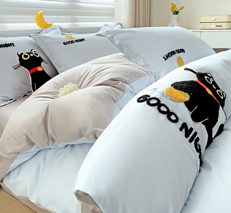 娜娜 2024新款全棉亲肤舒适毛巾绣卡通系列四件套 可爱猫咪-天空蓝