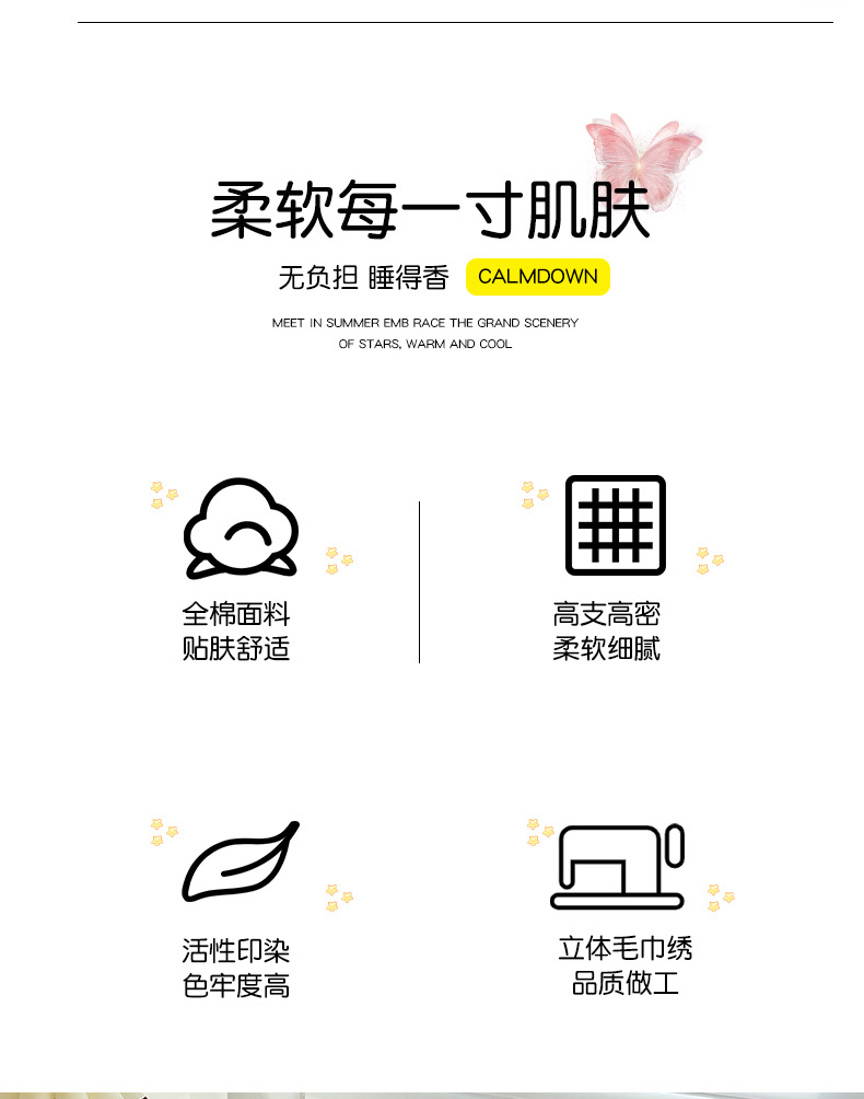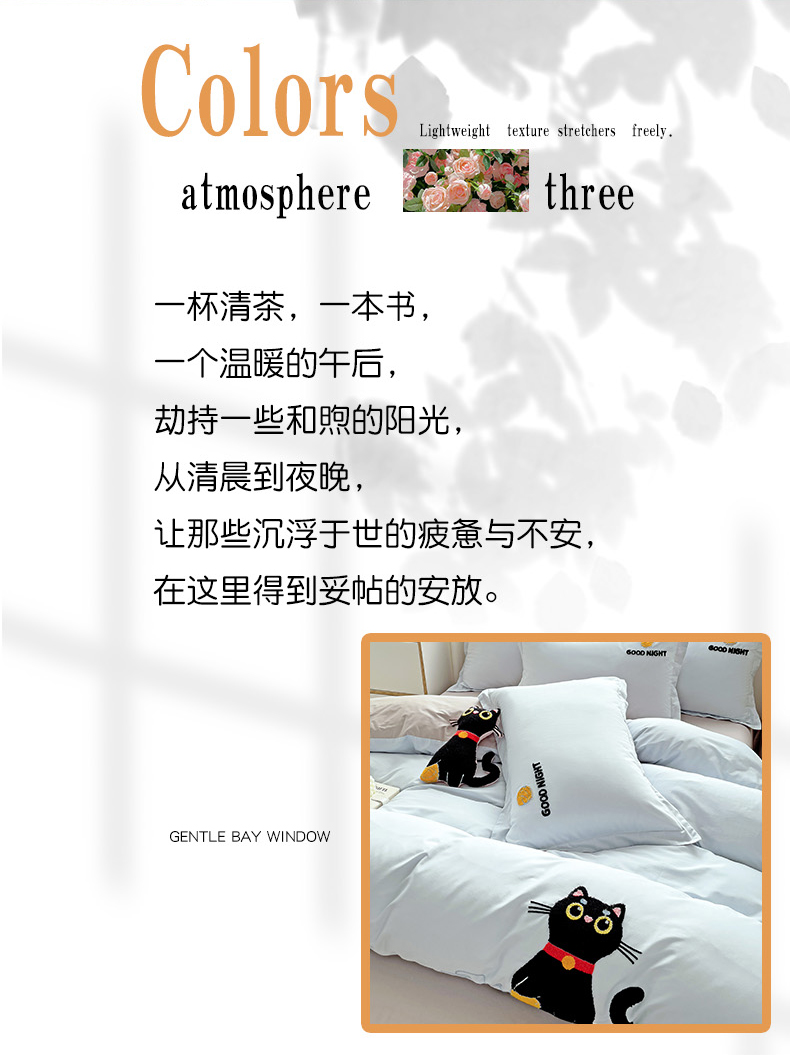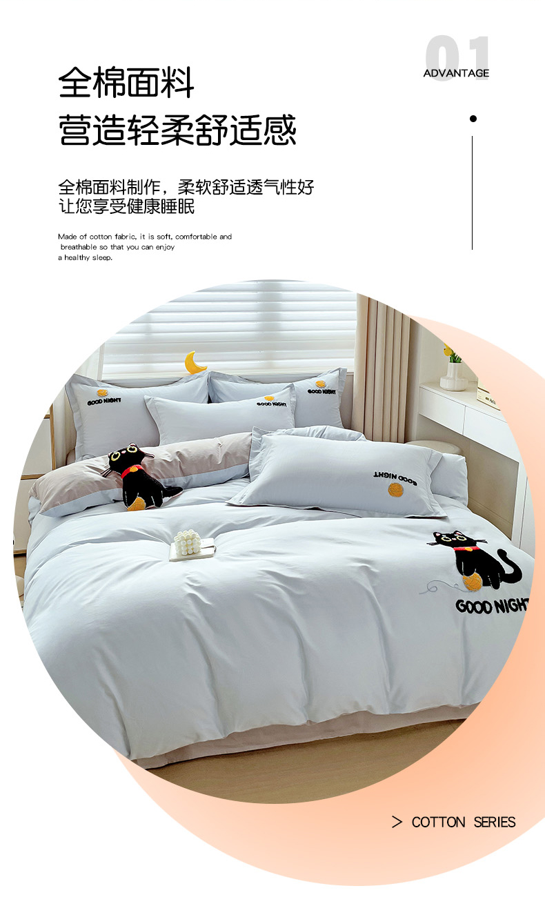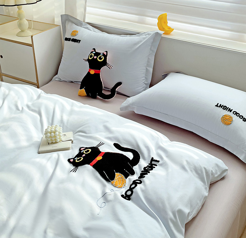 商品名称:娜娜 2024新款全棉亲肤舒适毛巾绣卡通系列四件套 可爱猫咪-天空蓝