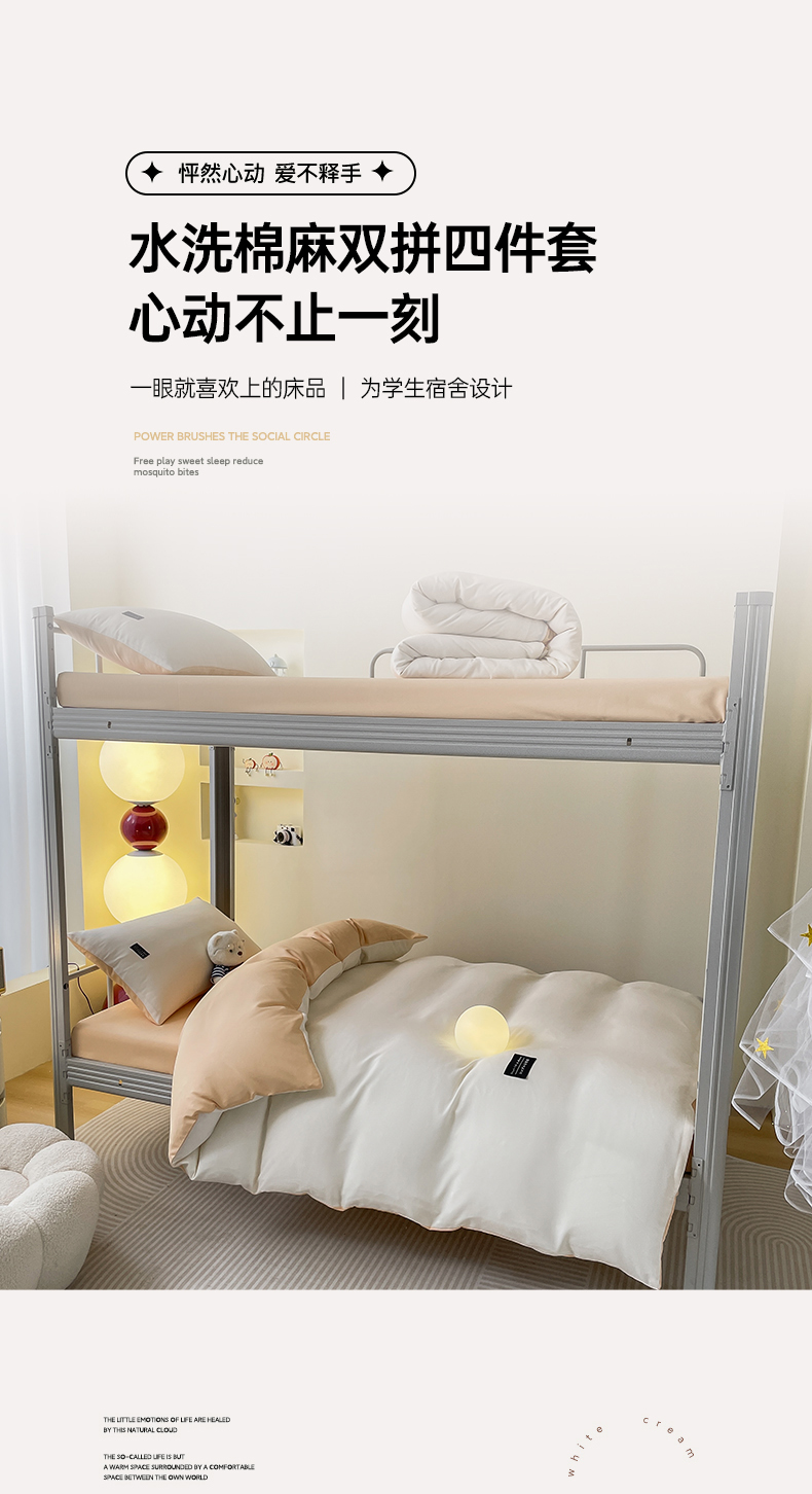 当前位置: 91家纺网 > 商品网购 > 床品套件 > 三件套 > 米瑞娜 2024新款水洗棉麻双拼纯色学生三件套 奶茶+芝士
