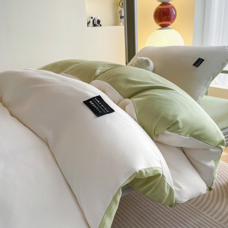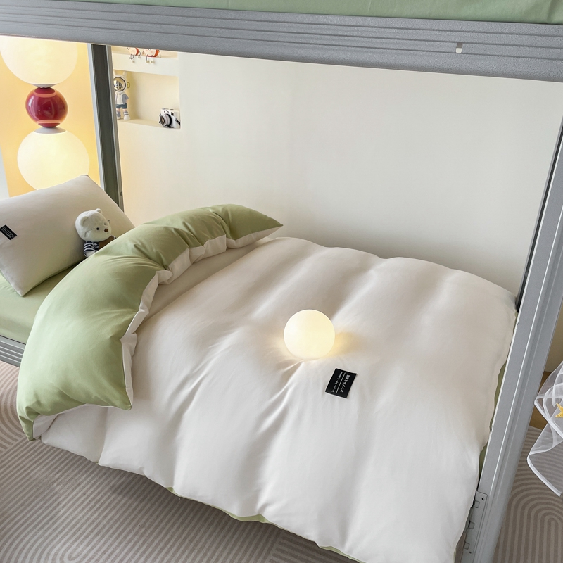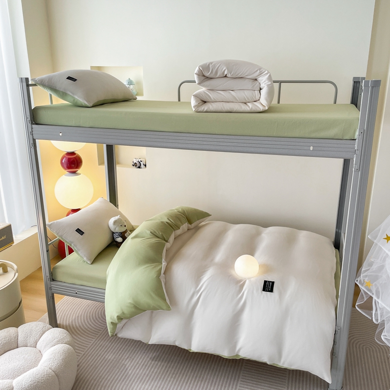(总)米瑞娜2024水洗棉麻双拼纯色学生款四件套
