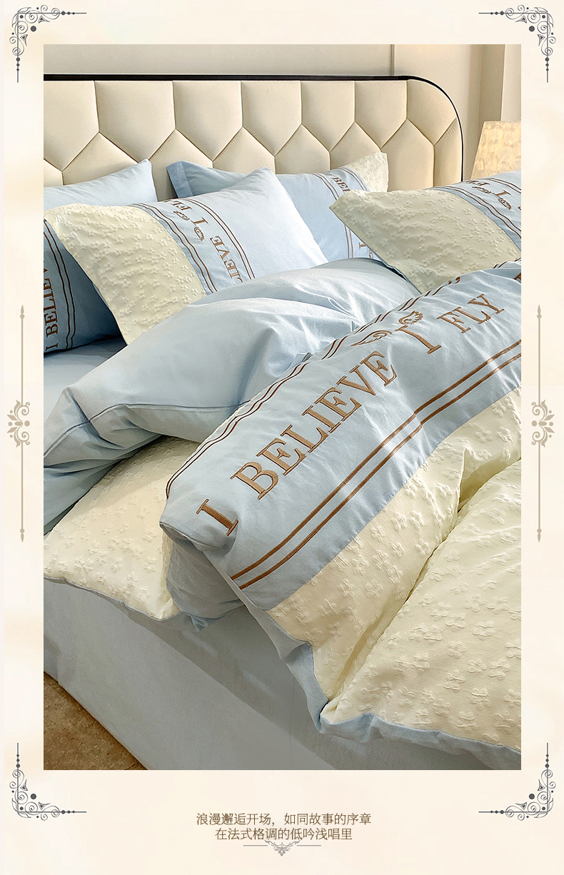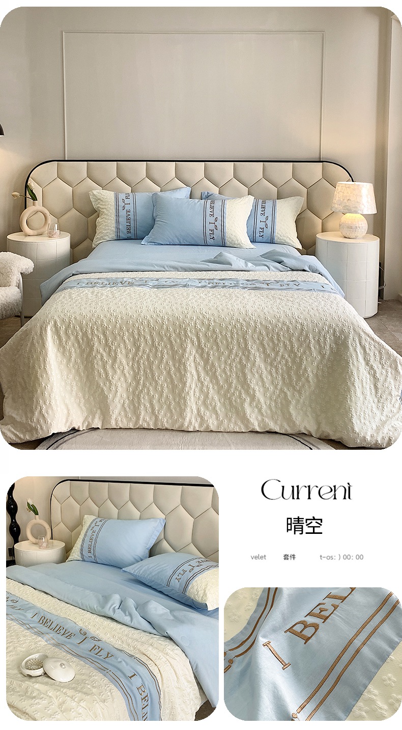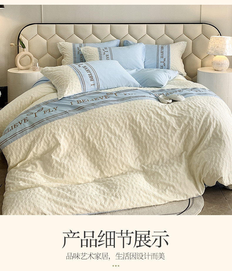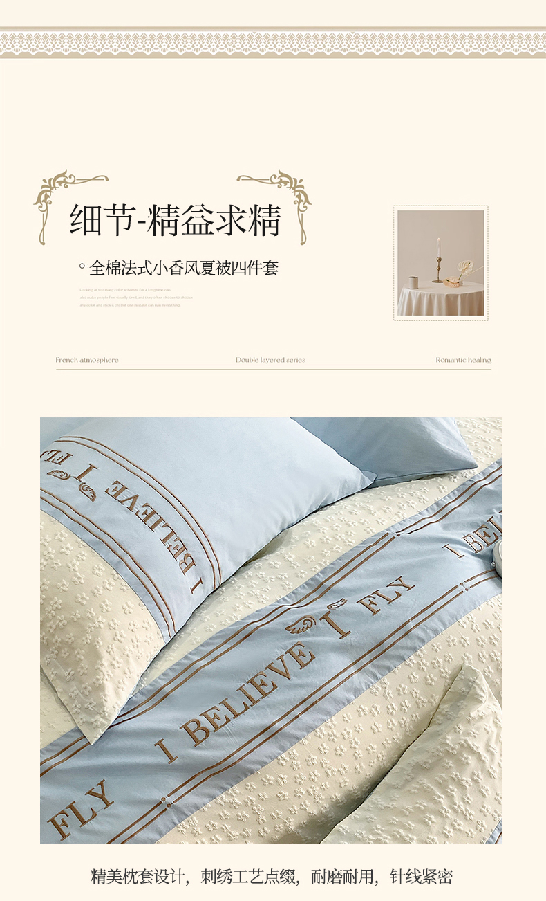 • 91家纺网 家纺一手货源 找家纺 换种生活 2024新款法式小香风全棉夏被四件套 晴空