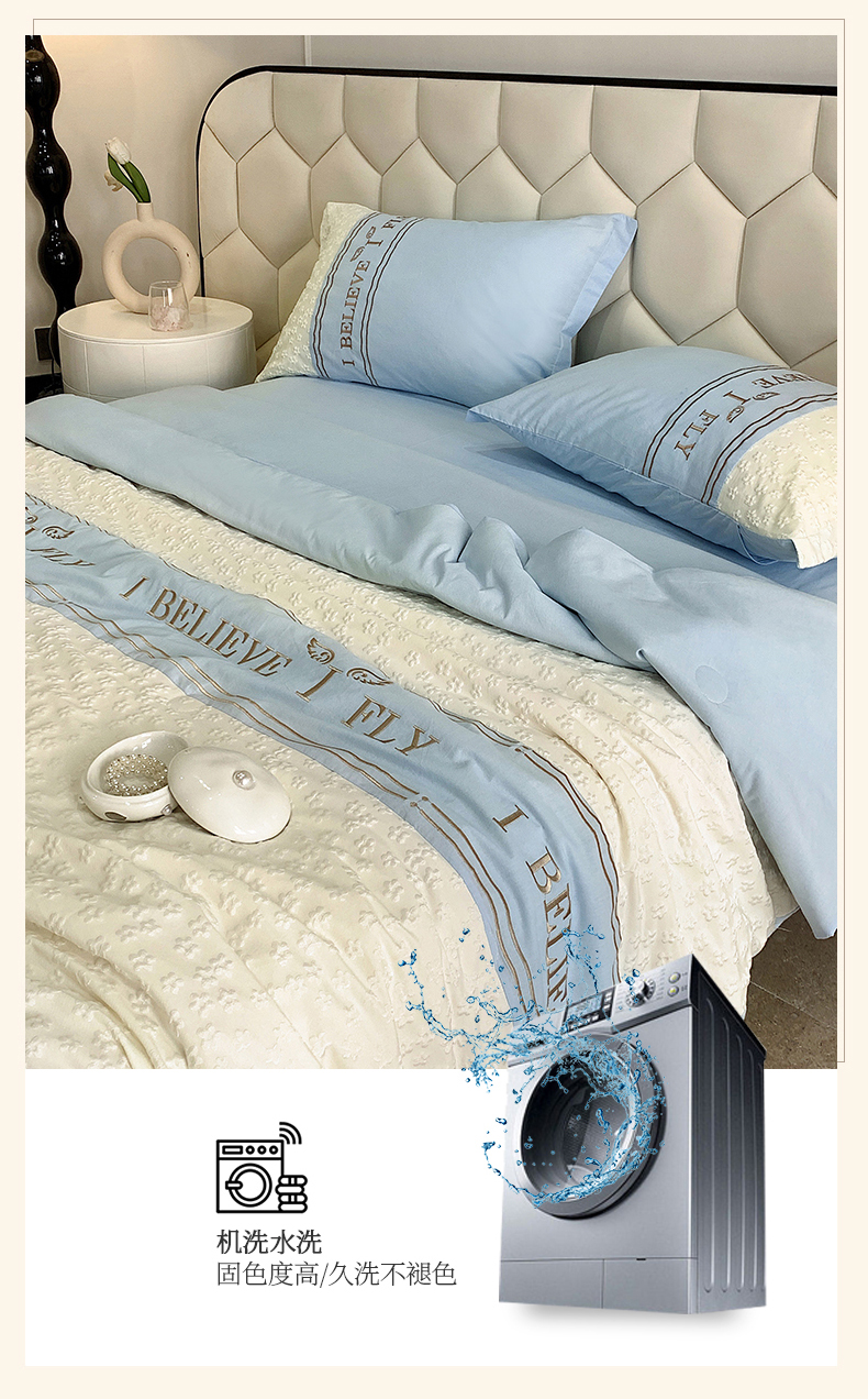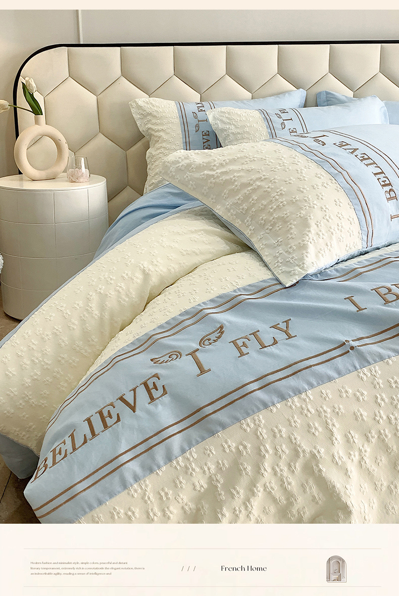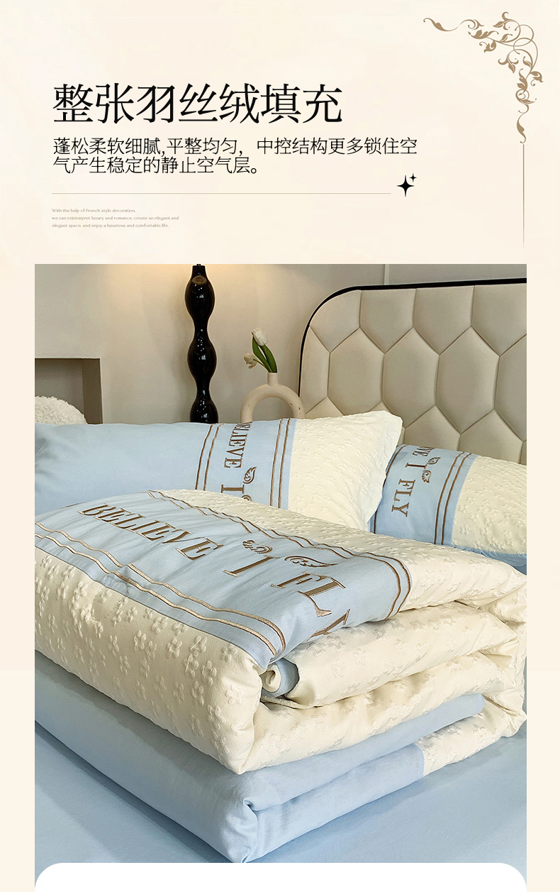 • 91家纺网 家纺一手货源 找家纺 换种生活 2024新款法式小香风全棉夏被四件套 晴空