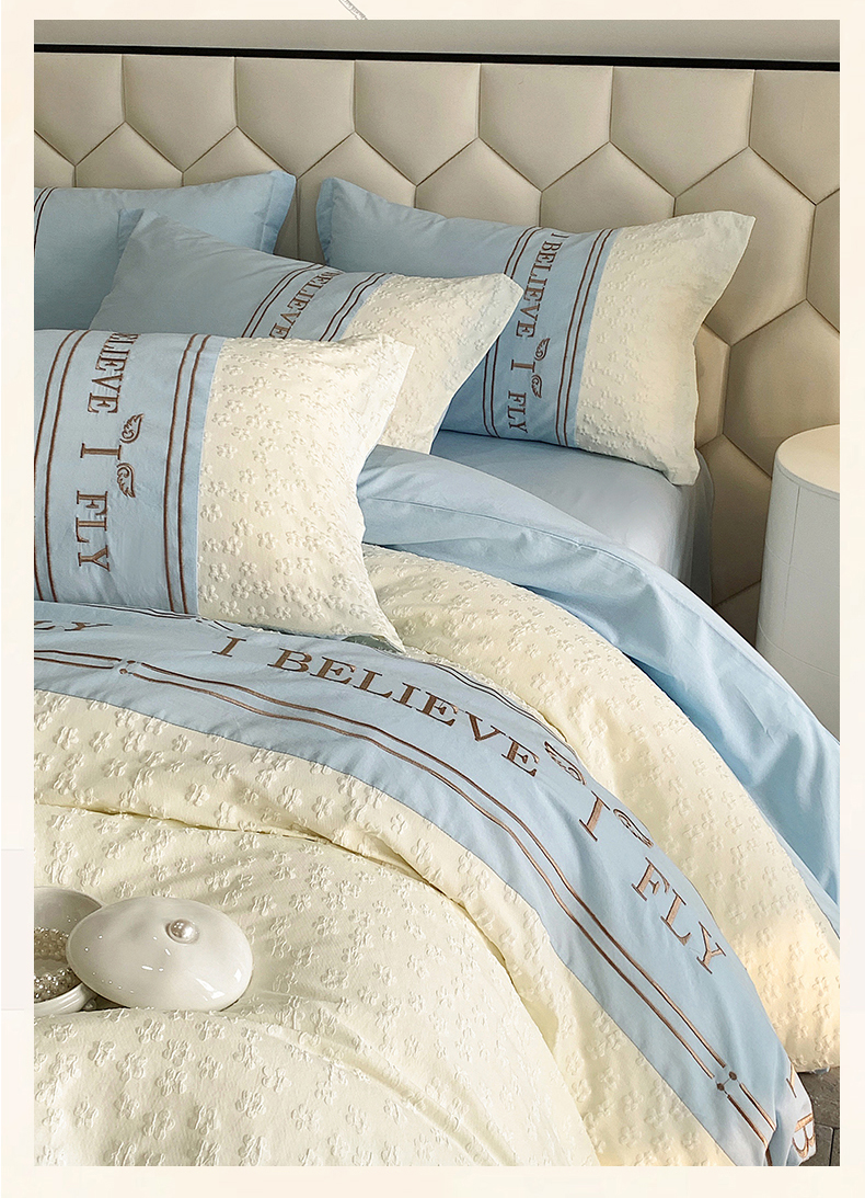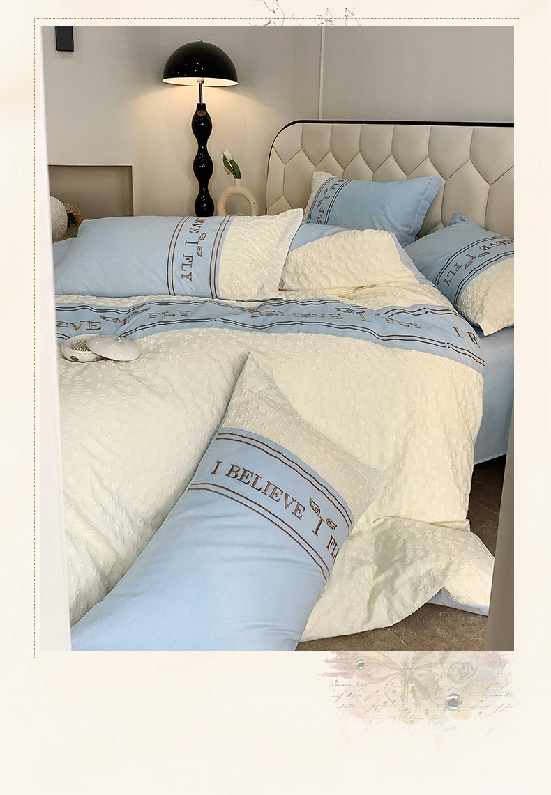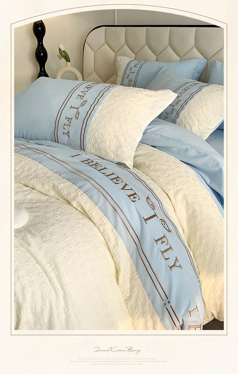 换种生活 2024新款法式小香风全棉夏被四件套 晴空