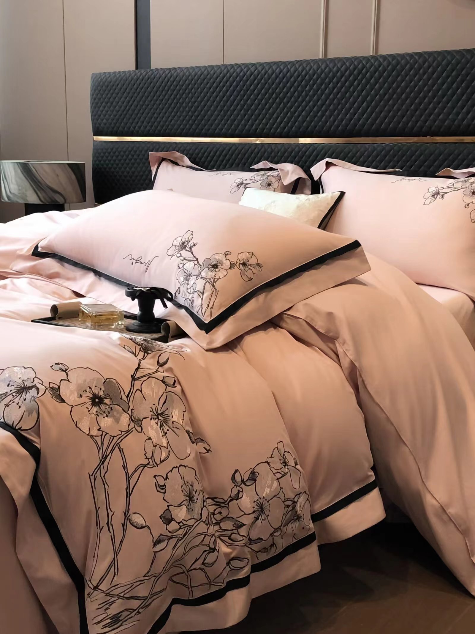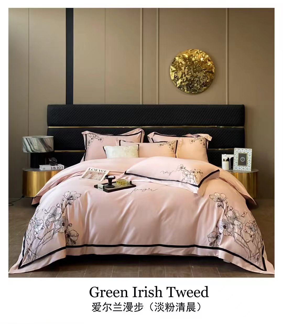 玖玖爱2024新品180支新疆长绒棉爱尔兰系列四件套 淡粉清晨