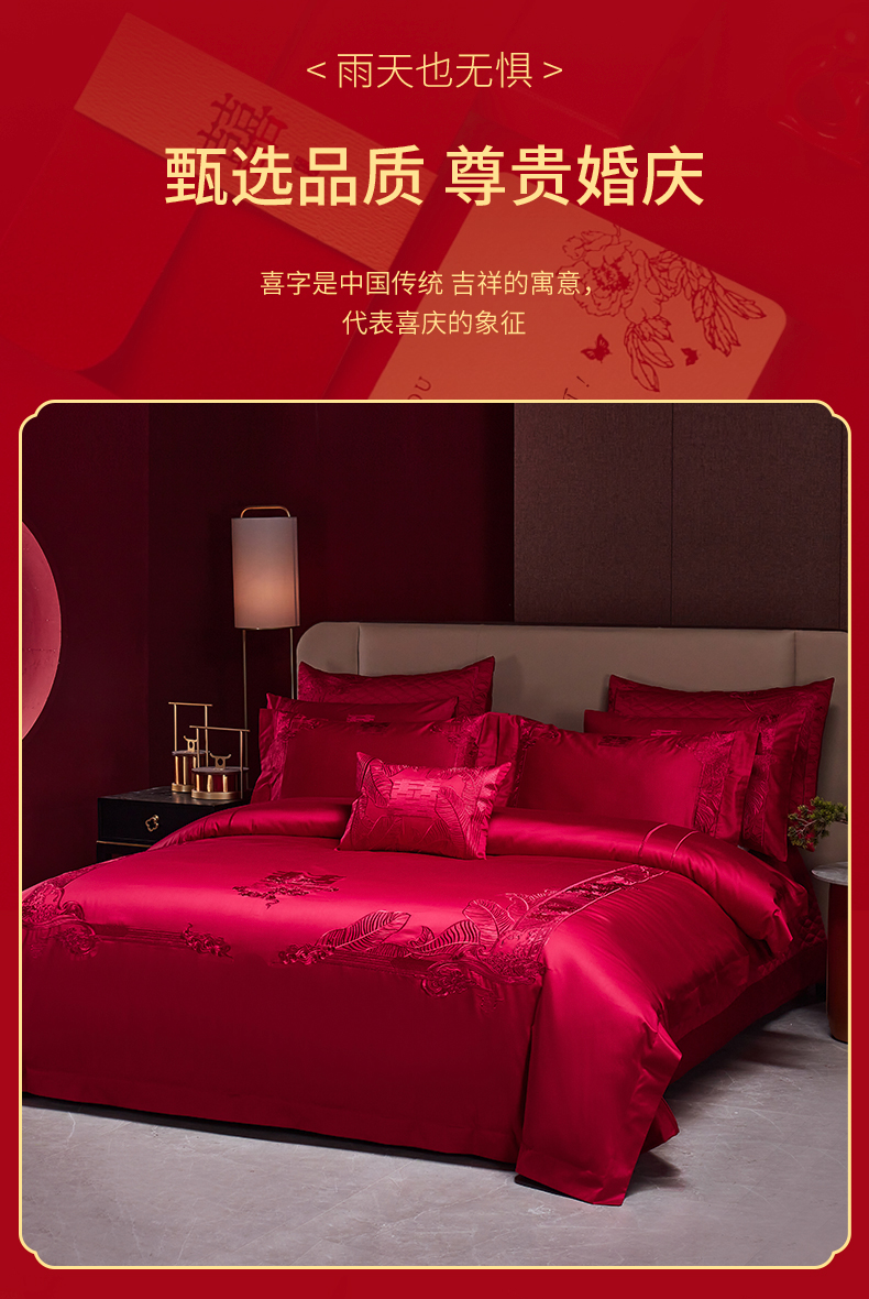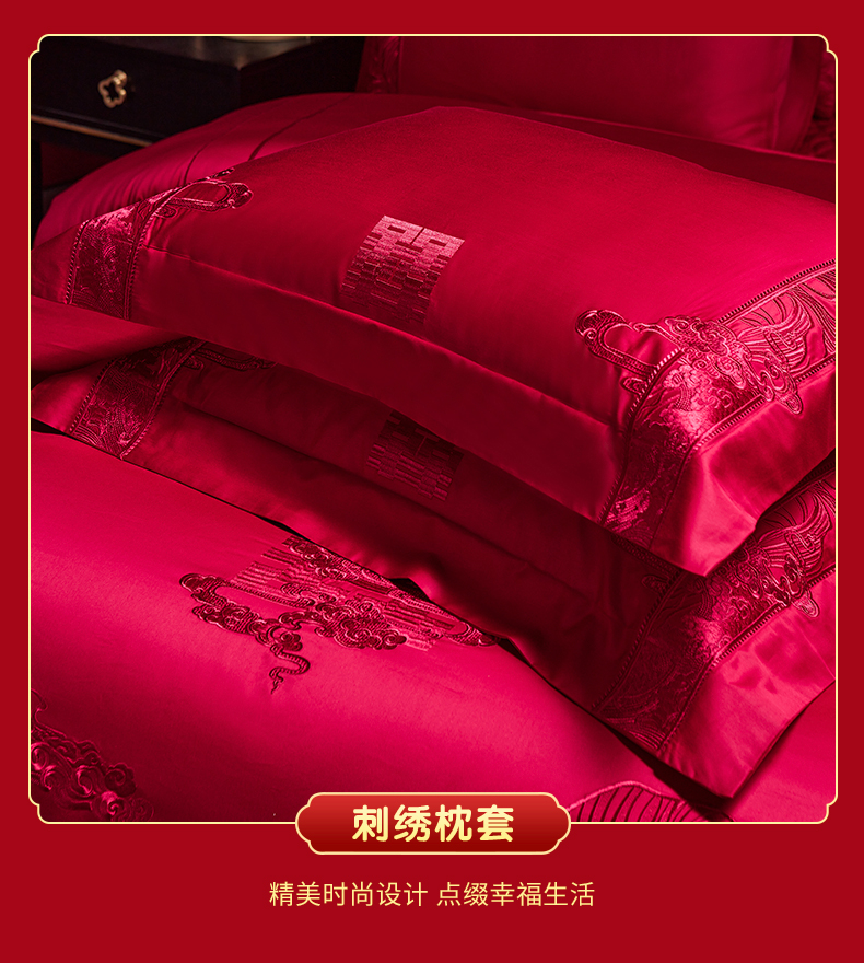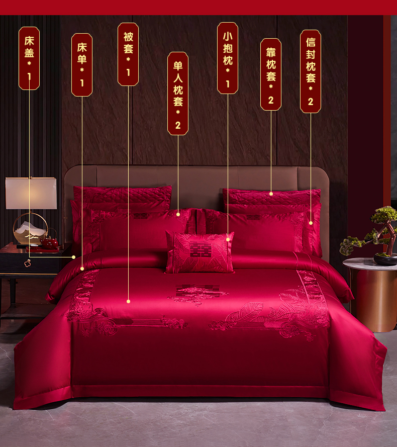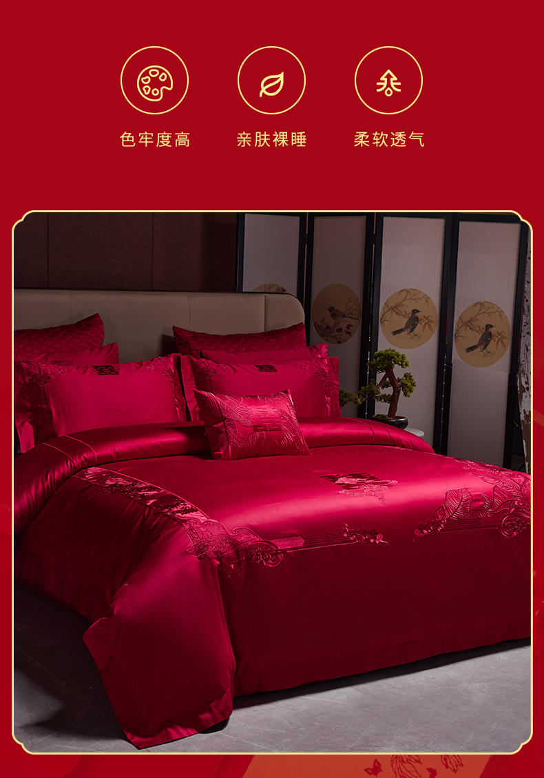 当前位置: 91家纺网 > 商品网购 > 床品套件 > 四件套 > 婚庆四件套 > 美娘阁 2025新款长绒棉贡缎提花古典新中式奢华精美刺绣四件套系列二 家大业大酒红色