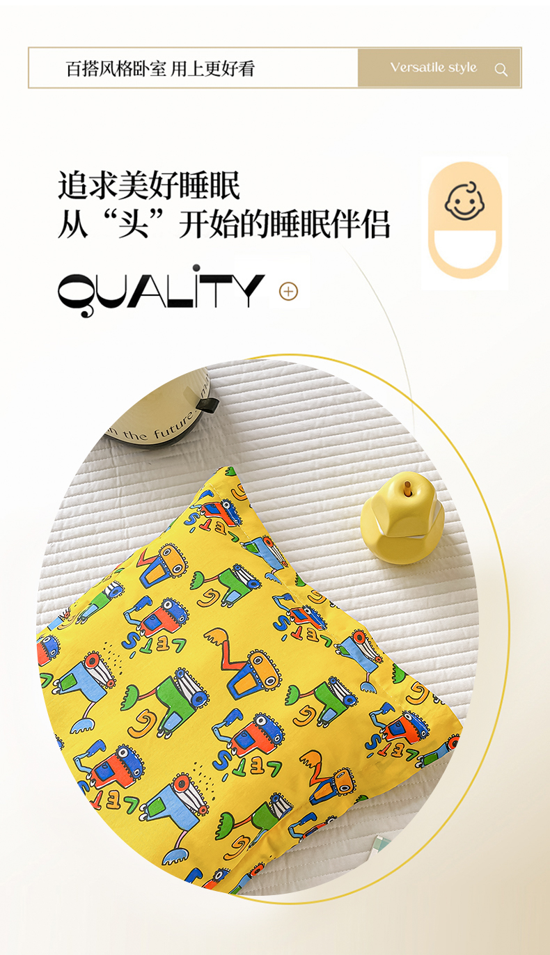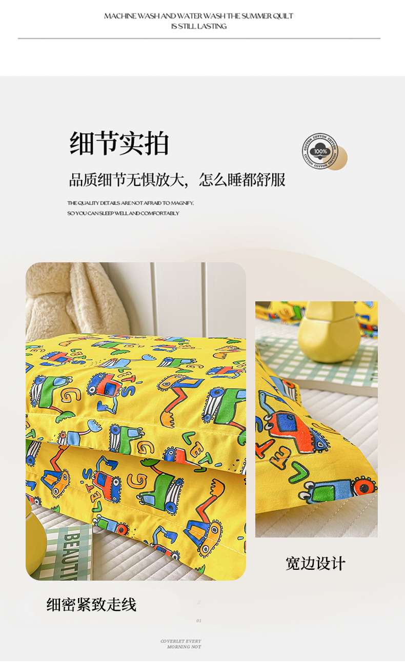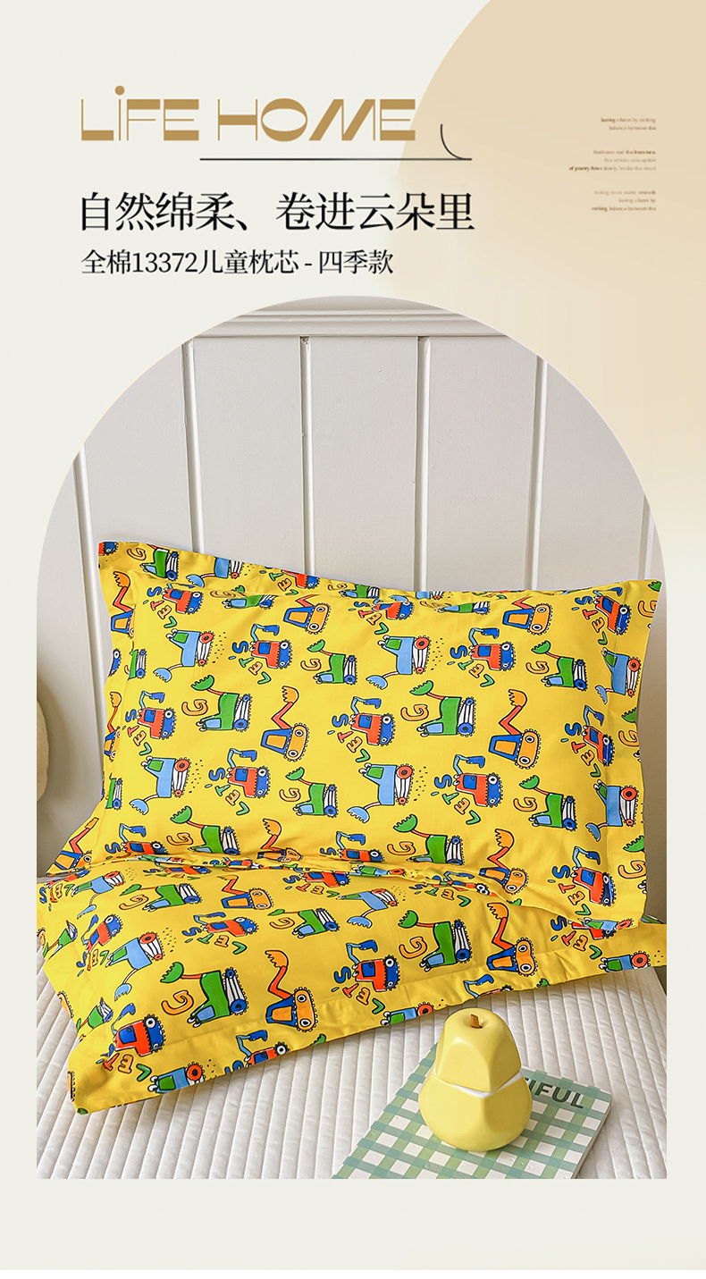商品名称:金帛坊 2024新款100%全棉信封枕套儿童可拆卸枕芯枕头 小小挖掘机
