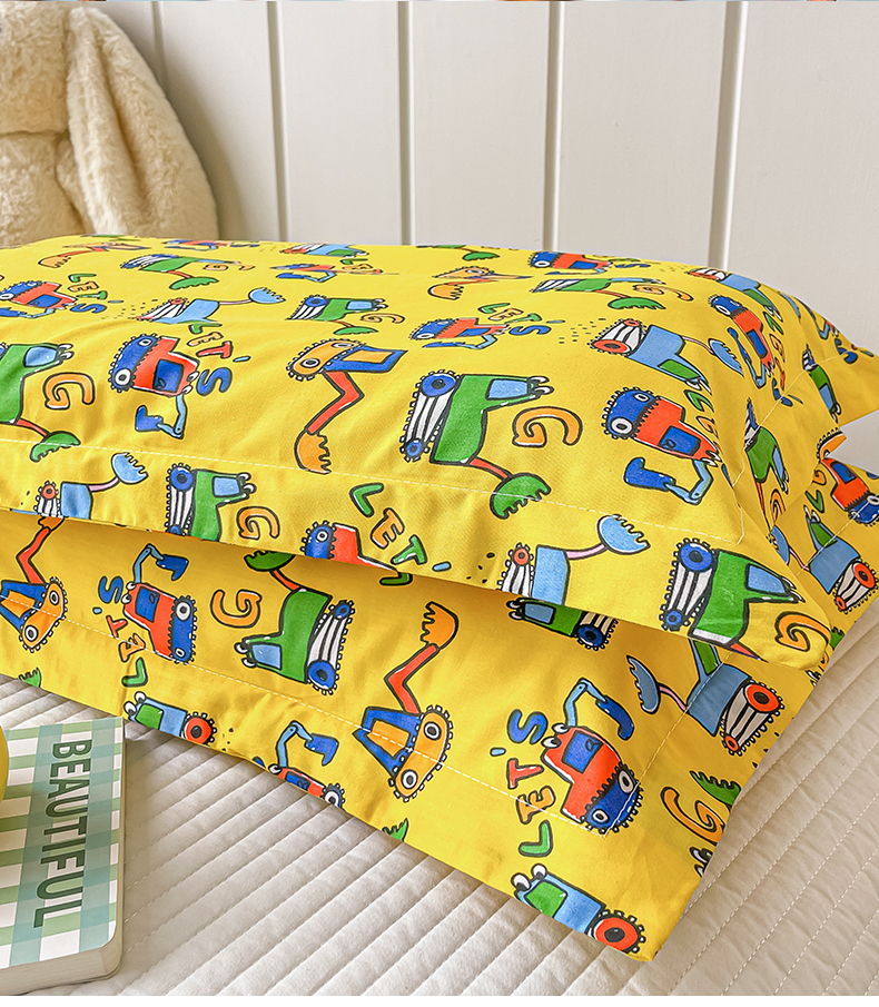 金帛坊 2024新款100%全棉信封枕套儿童可拆卸枕芯枕头 小小挖掘机