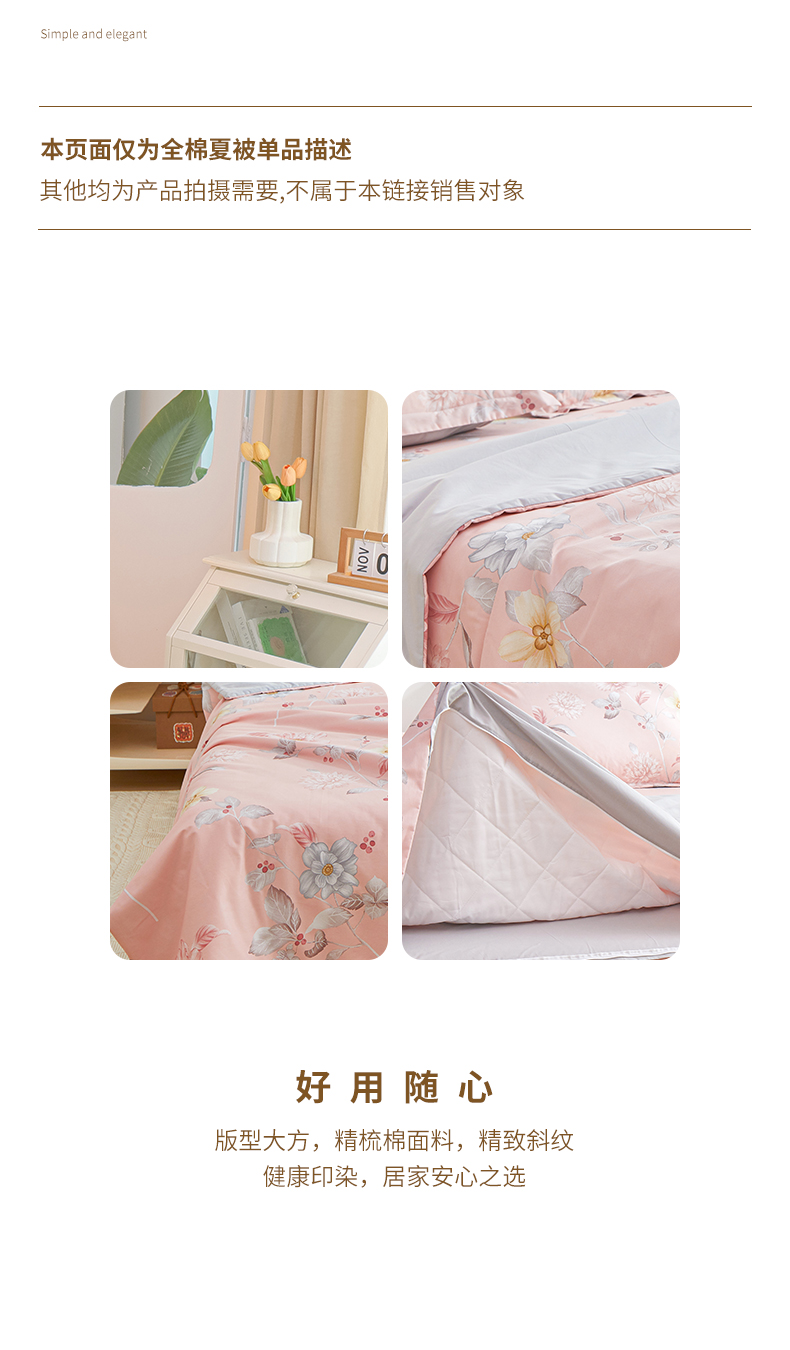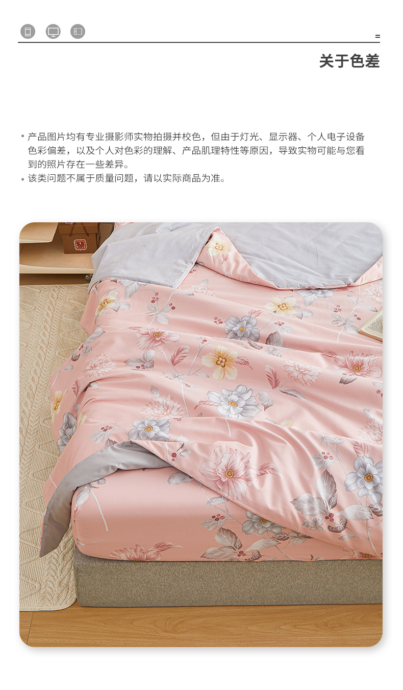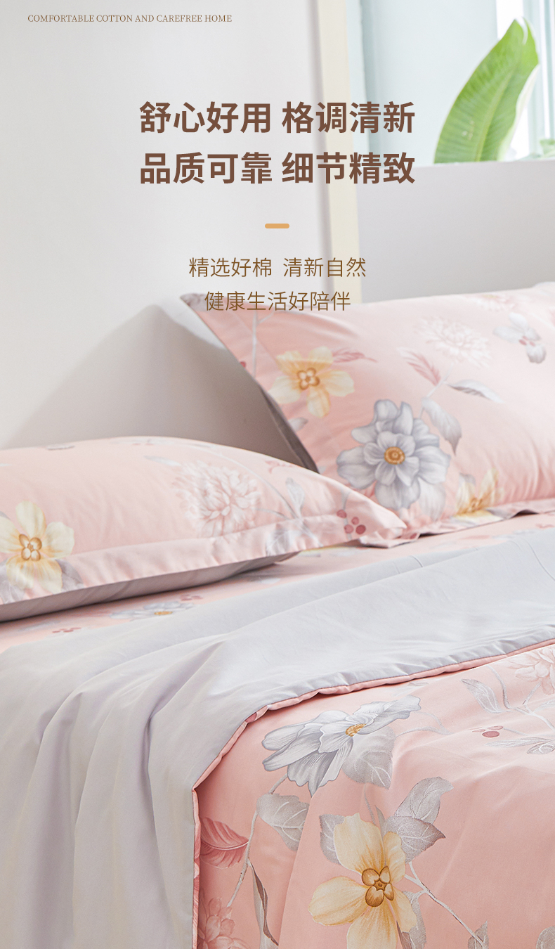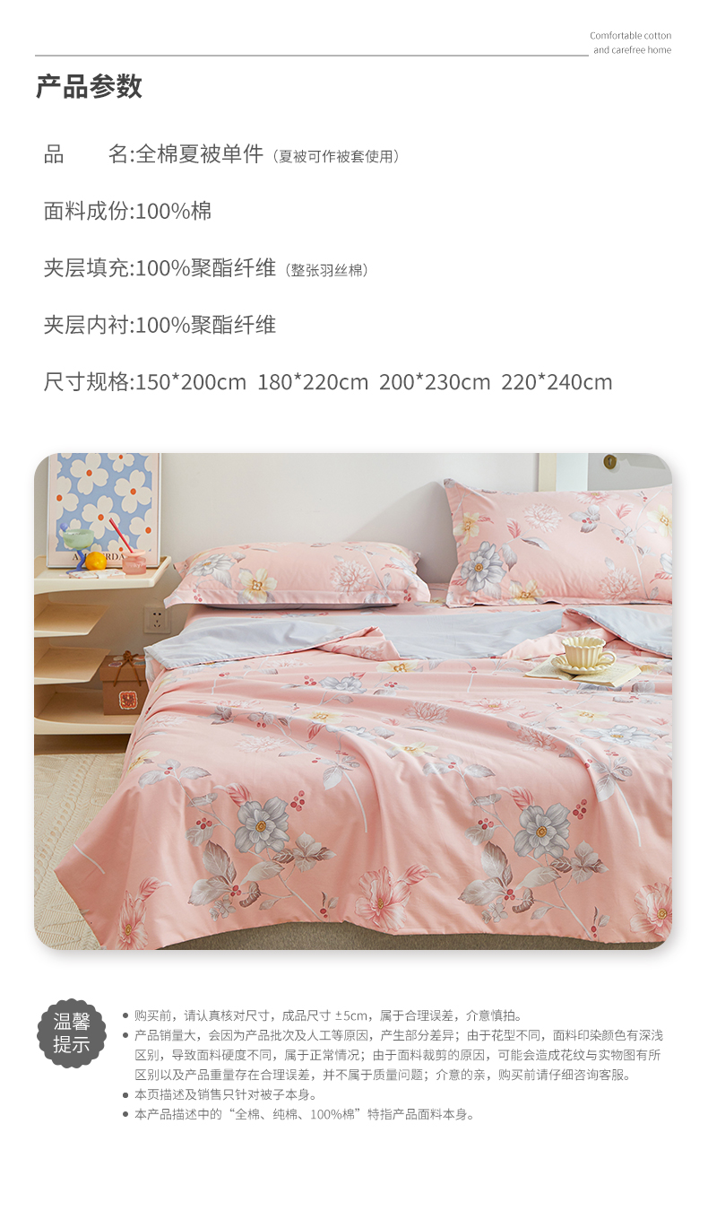 商品名称:元元被芯 2024新款全棉小清新夏被四件套-单夏被 花之绚烂-粉