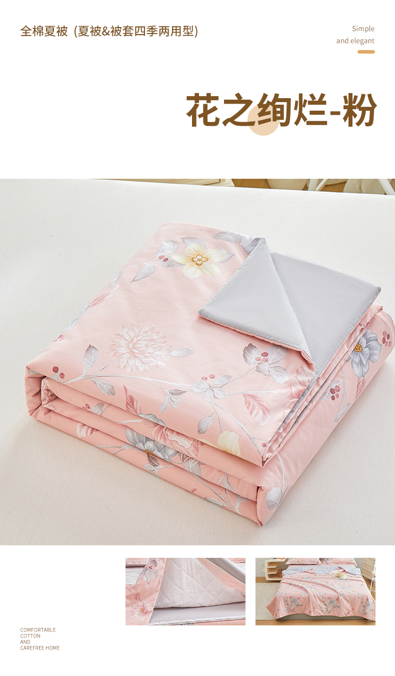 元元被芯 2024新款全棉小清新夏被四件套-单夏被 花之绚烂-粉