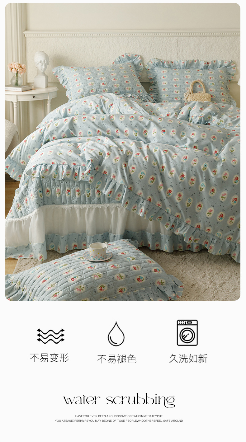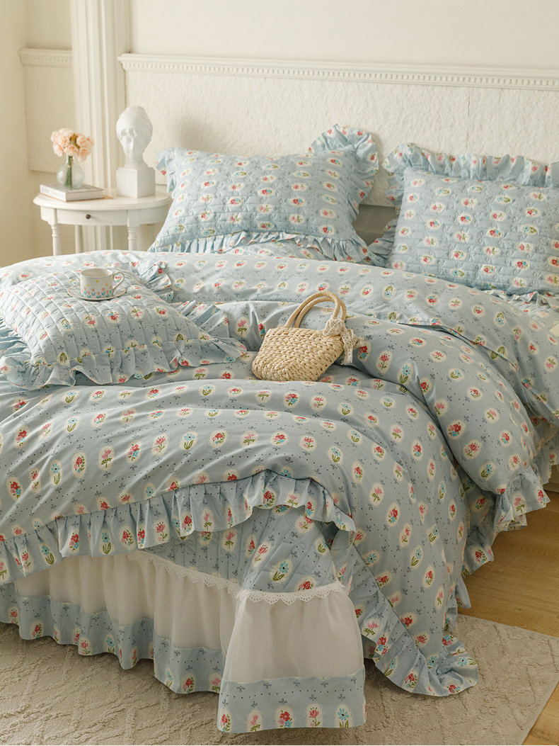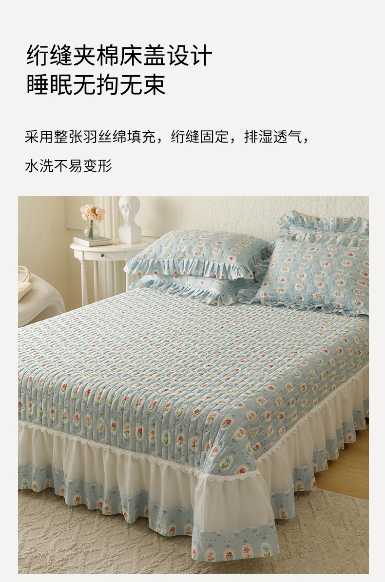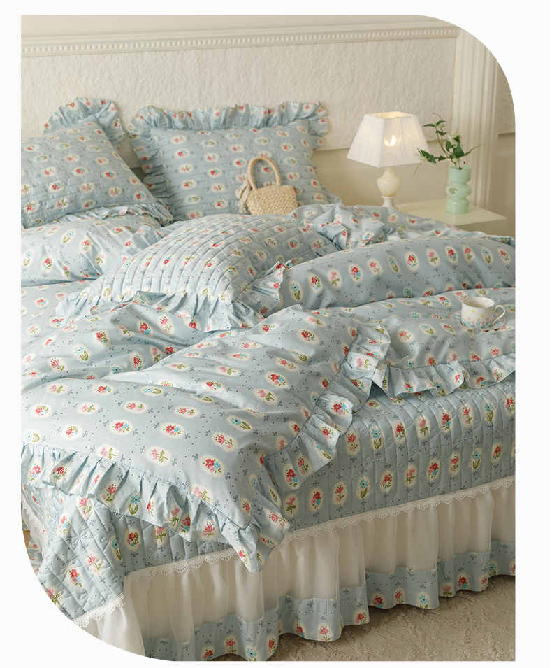商品名称:胜权 2024新款高端欧根纱全棉印花夹棉床盖四件套 忘忧草