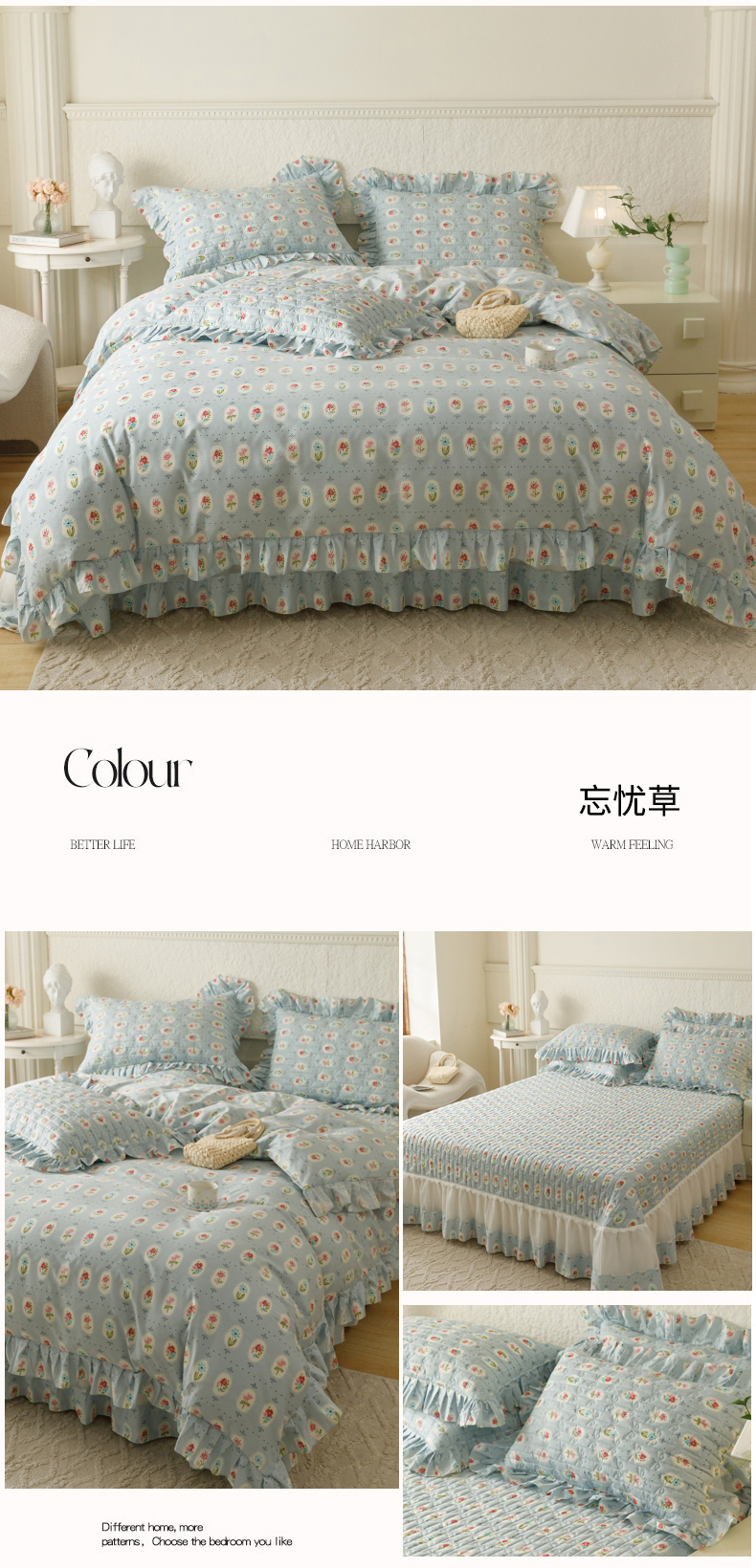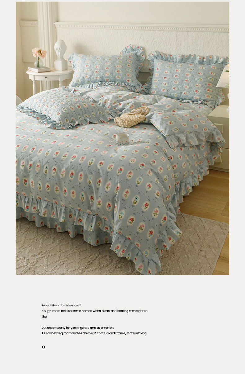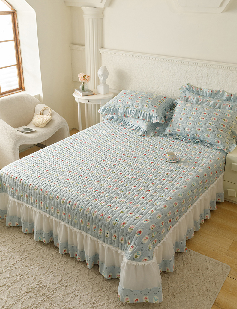 商品名称:胜权 2024新款高端欧根纱全棉印花夹棉床盖四件套 忘忧草