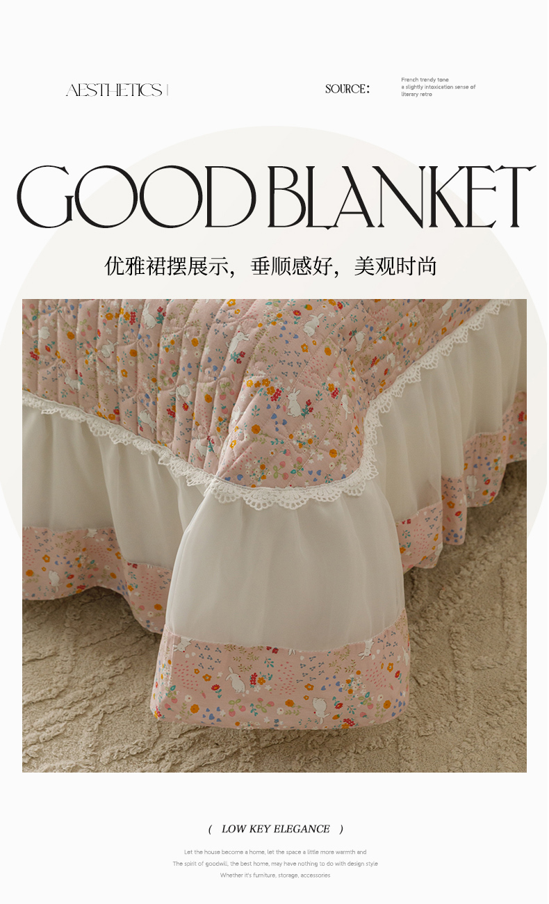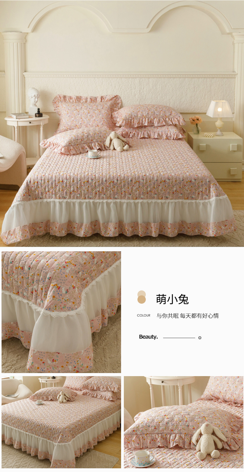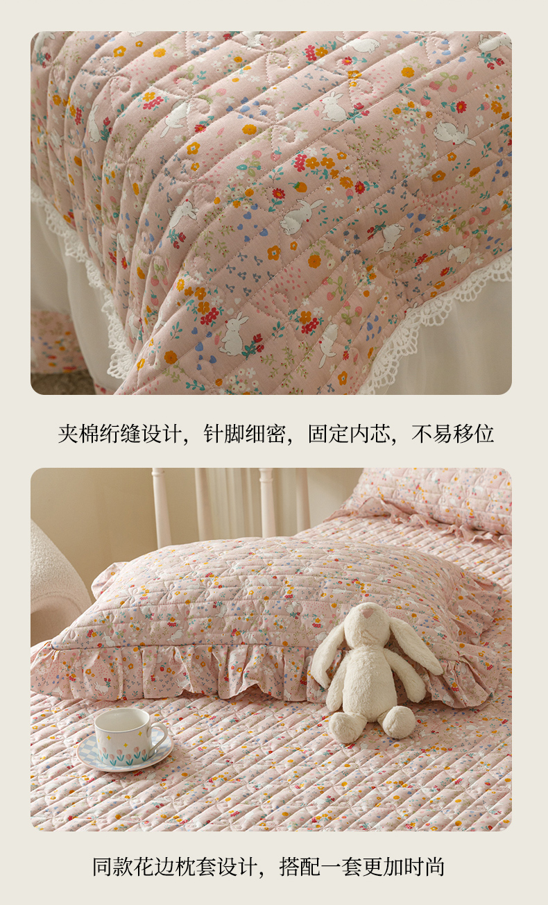 商品名称:胜权 2024新款高端欧根纱全棉印花夹棉床盖单品 萌小兔