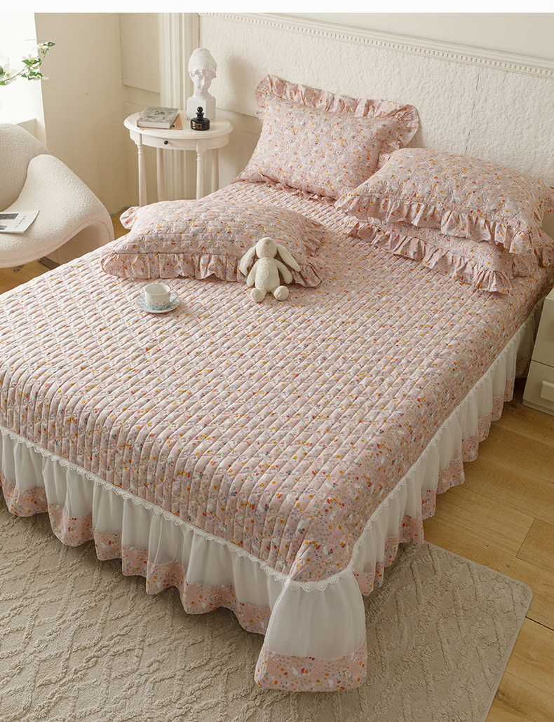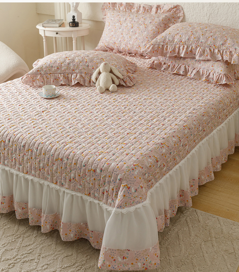 胜权 2024新款高端欧根纱全棉印花夹棉床盖单品 萌小兔