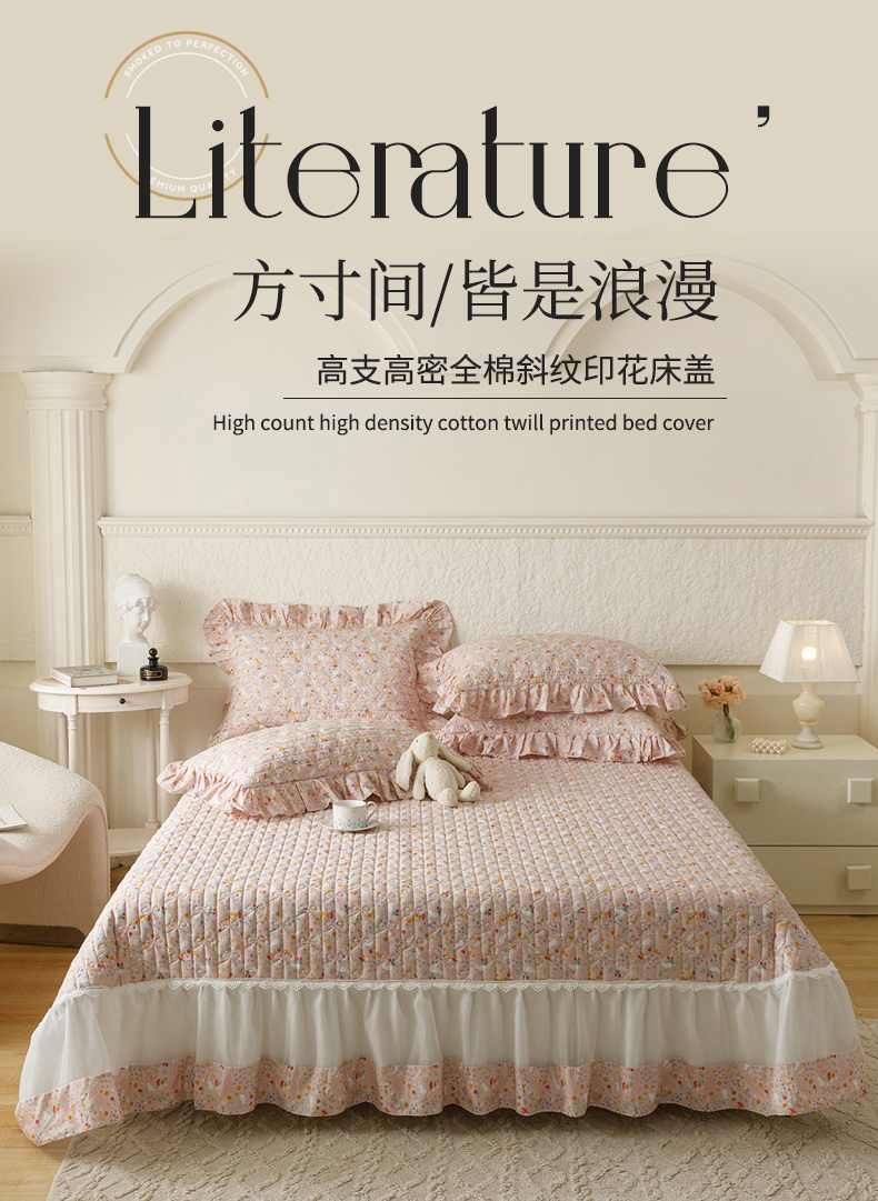 (总)胜权家纺 2025秋冬新款全棉法式13372数码印花夹棉床盖四件套系列,花非花粉,花非花绿,花海绿,锦绣繁华粉,锦绣繁华绿,妙颜粉