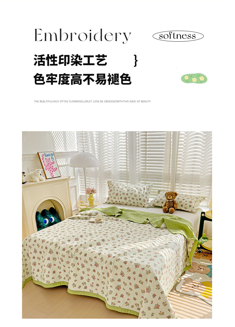 (总)胜权家纺 2025秋冬新款全棉法式13372数码印花夹棉床盖单品系列,花非花粉,花非花绿,妙颜粉,锦绣繁华绿,花海绿,锦绣繁华粉