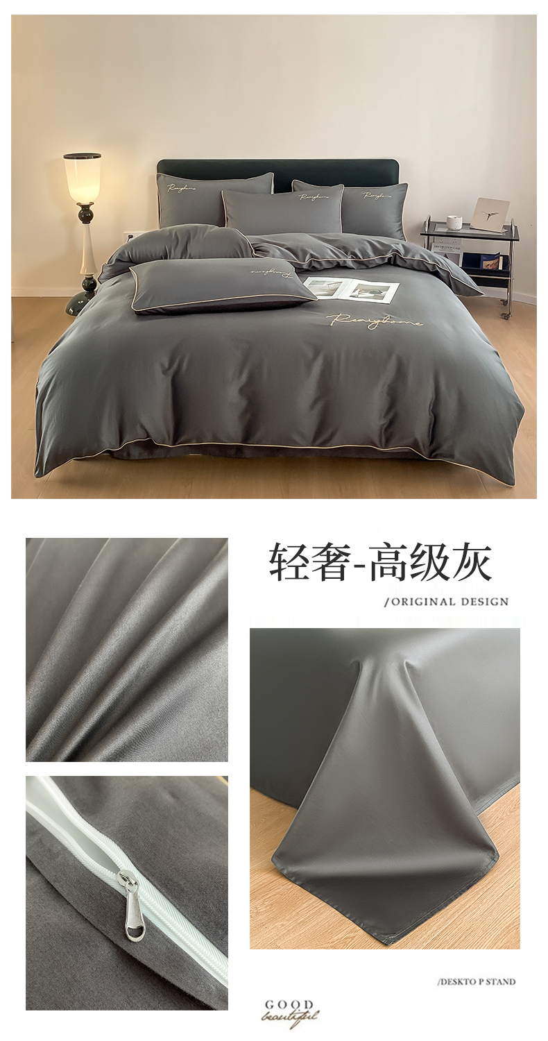 商品名称:慕色家纺 2024新款全棉刺绣四件套轻奢系列 轻奢-高级灰