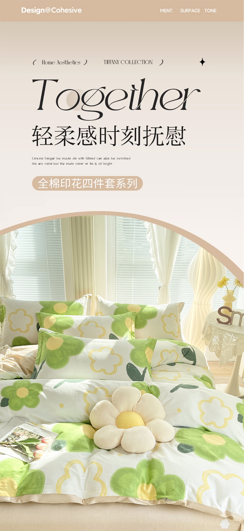 (总)珂博家纺 2025新款12868全棉纯棉小清新印花四件套学生宿舍三件套-系列二,繁花似锦,粉萼摇青,粉穹星语,浮青曳紫,结系花铃,汪星织梦,樱露垂角
