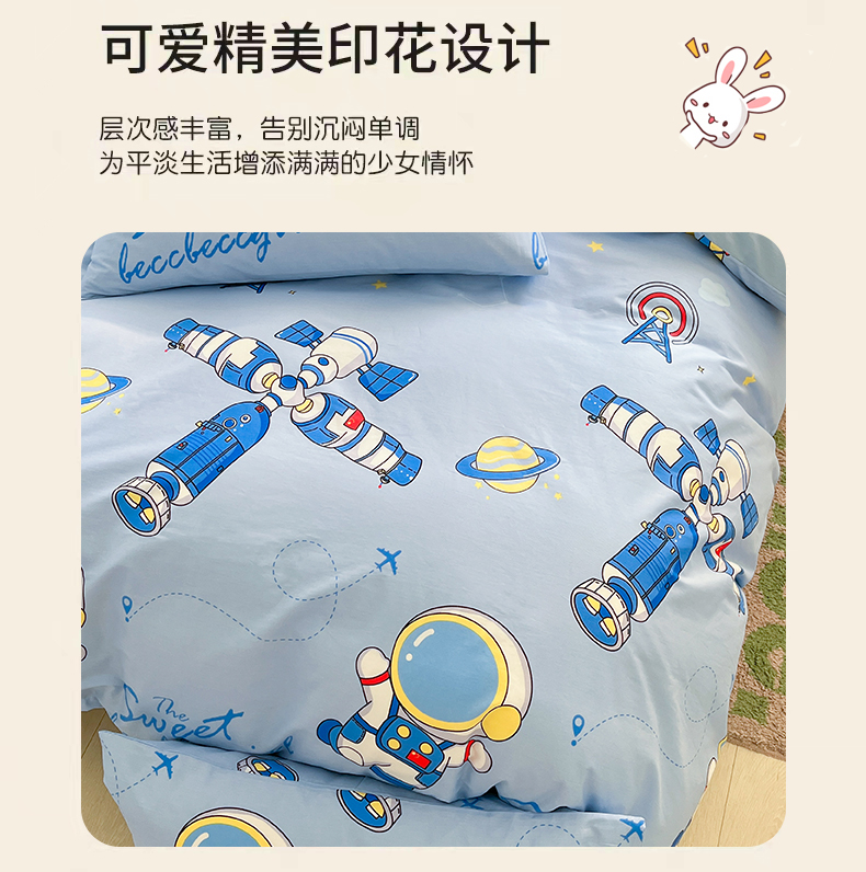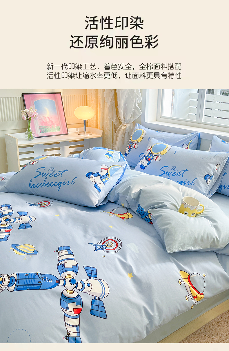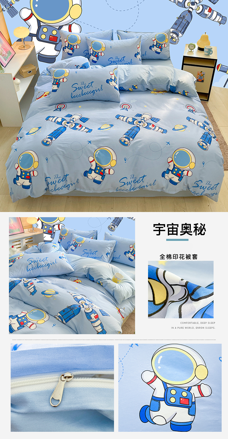 金鑫汇家纺 2024新款全棉纯棉卡通印花四件套单品系列-单被套 宇宙奥秘