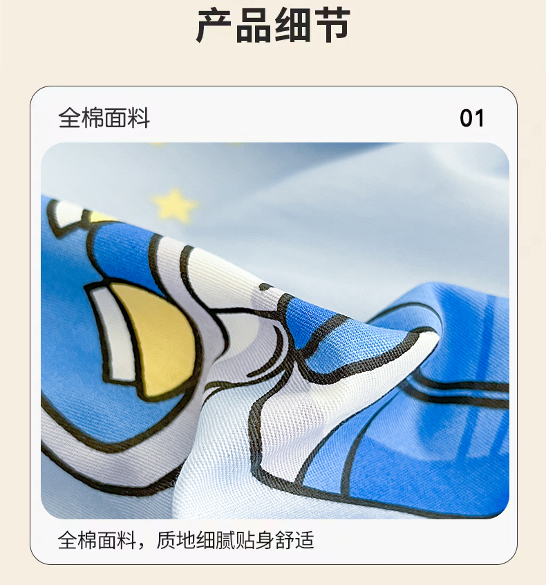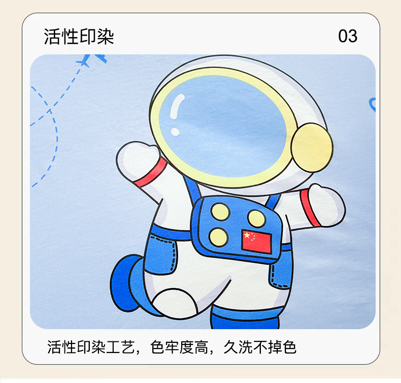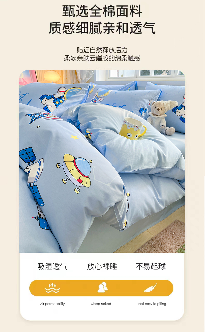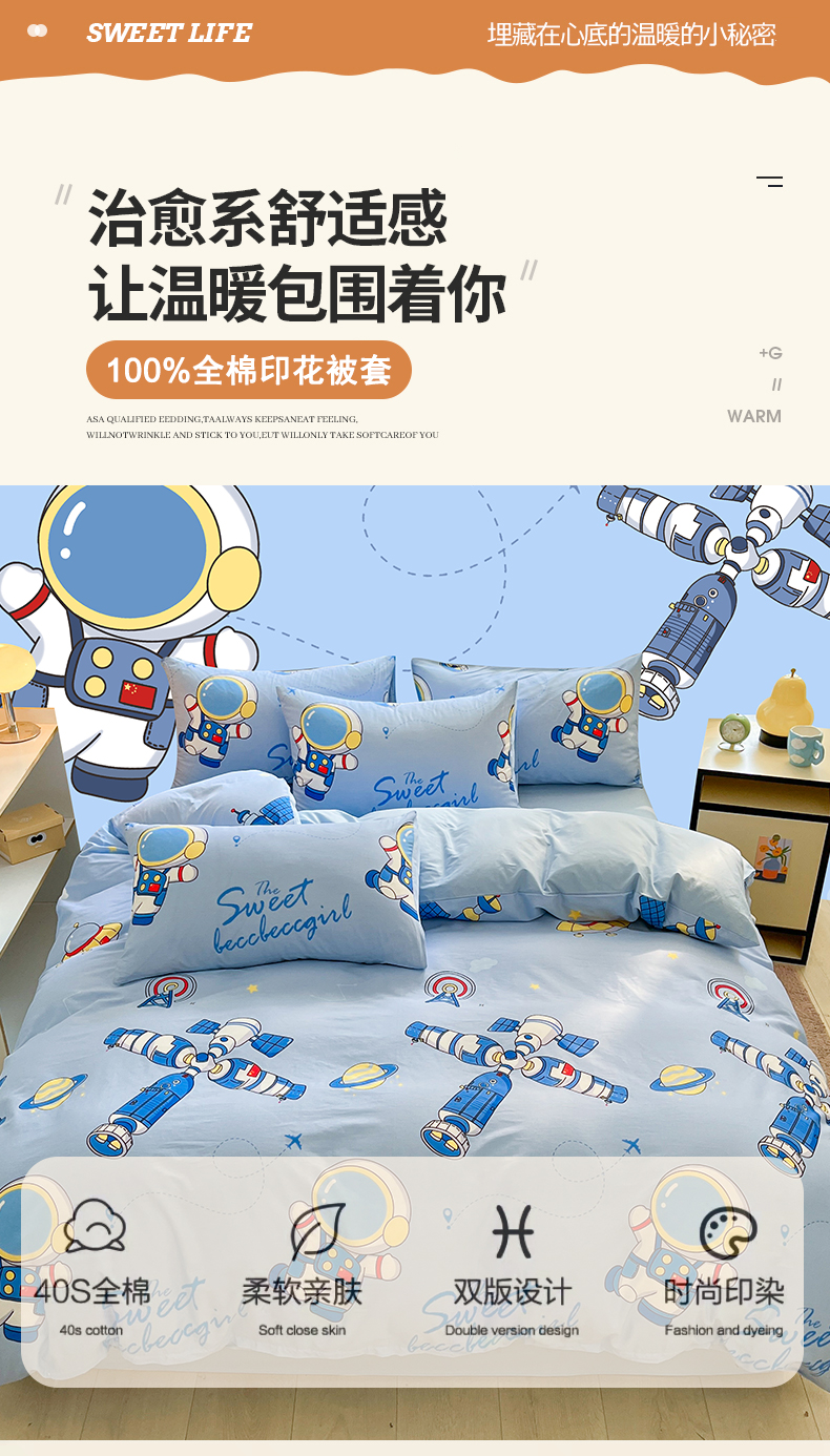 商品名称:金鑫汇家纺 2024新款全棉纯棉卡通印花四件套单品系列-单被套 宇宙奥秘