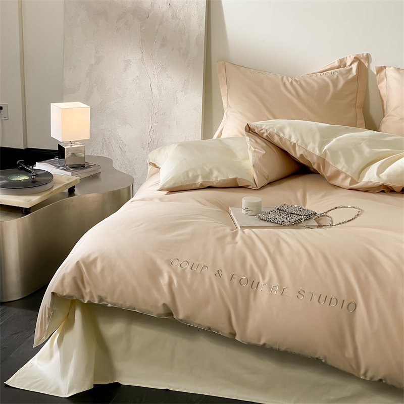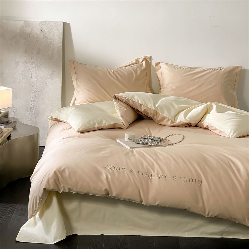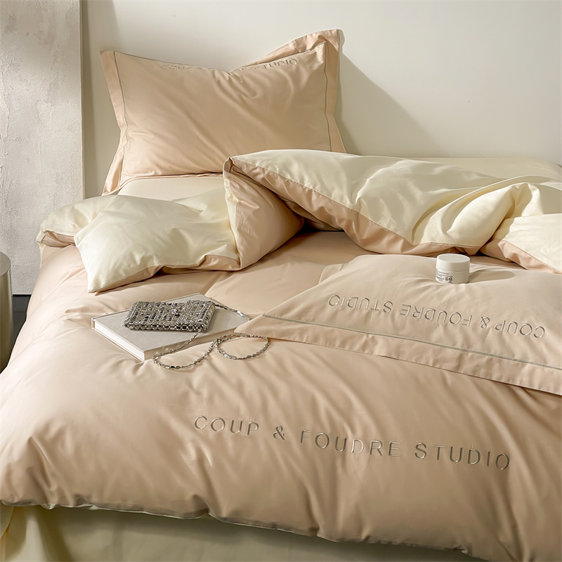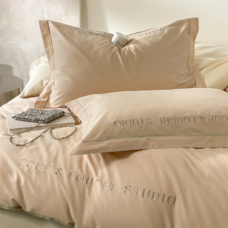商品名称:荣轩家居 2024新款全棉字母一字绣古里系列四件套 古里-拿铁