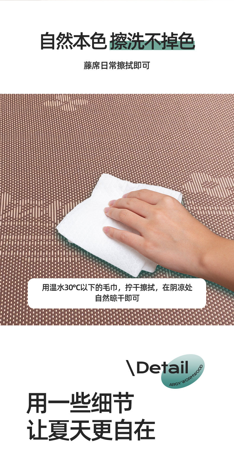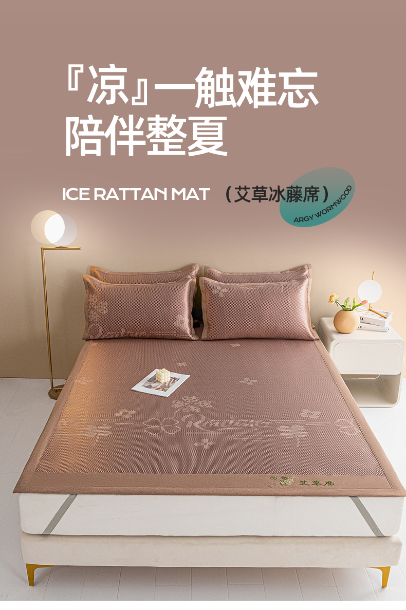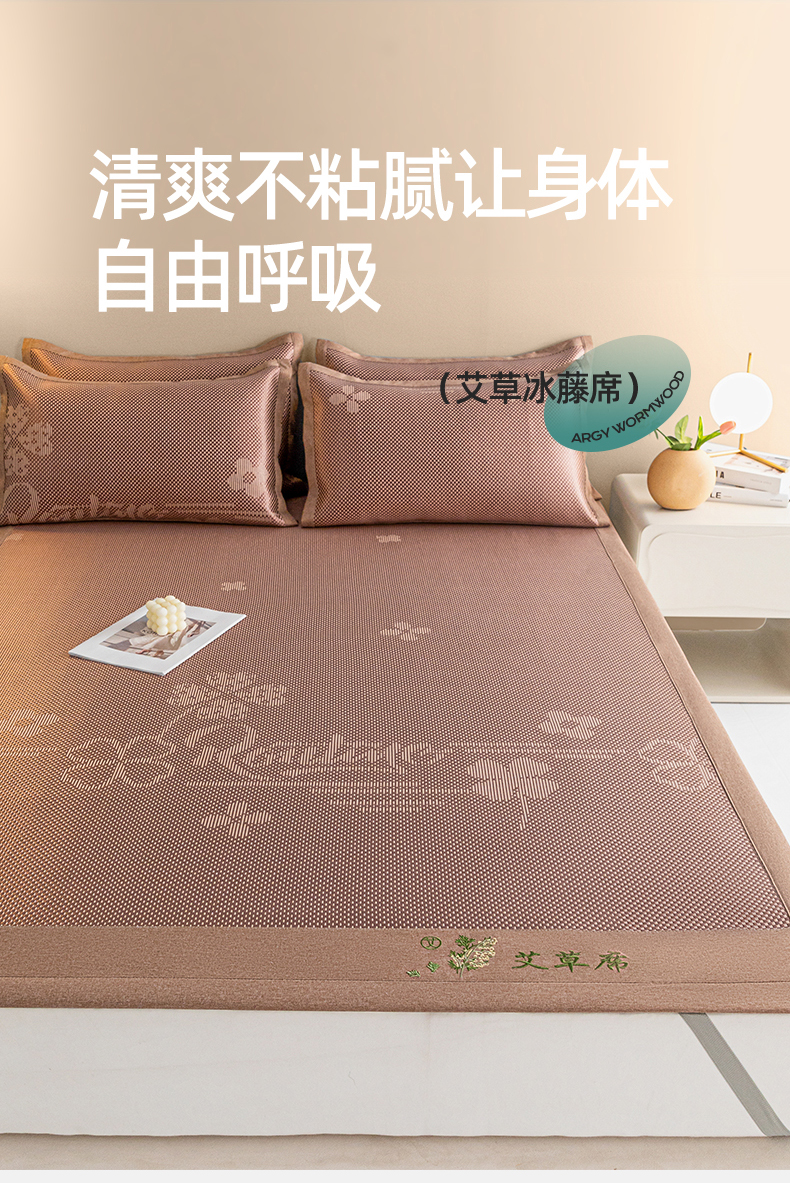 当前位置: 91家纺网 > 商品网购 > 床上用品 > 凉席 > 藤席 > 席佬大 2025新款香薰·艾草冰藤席三件套系列 花开玉-床席款