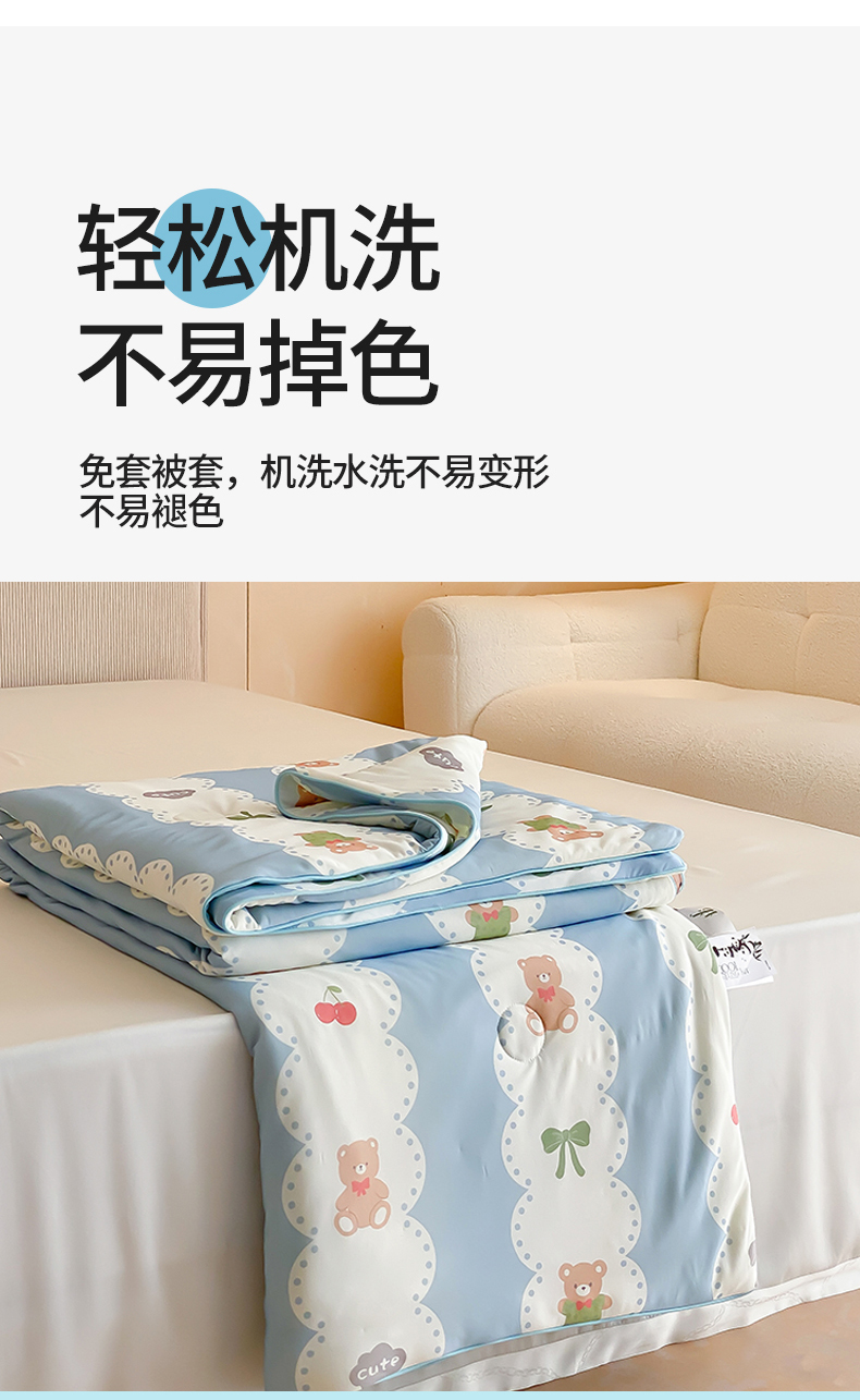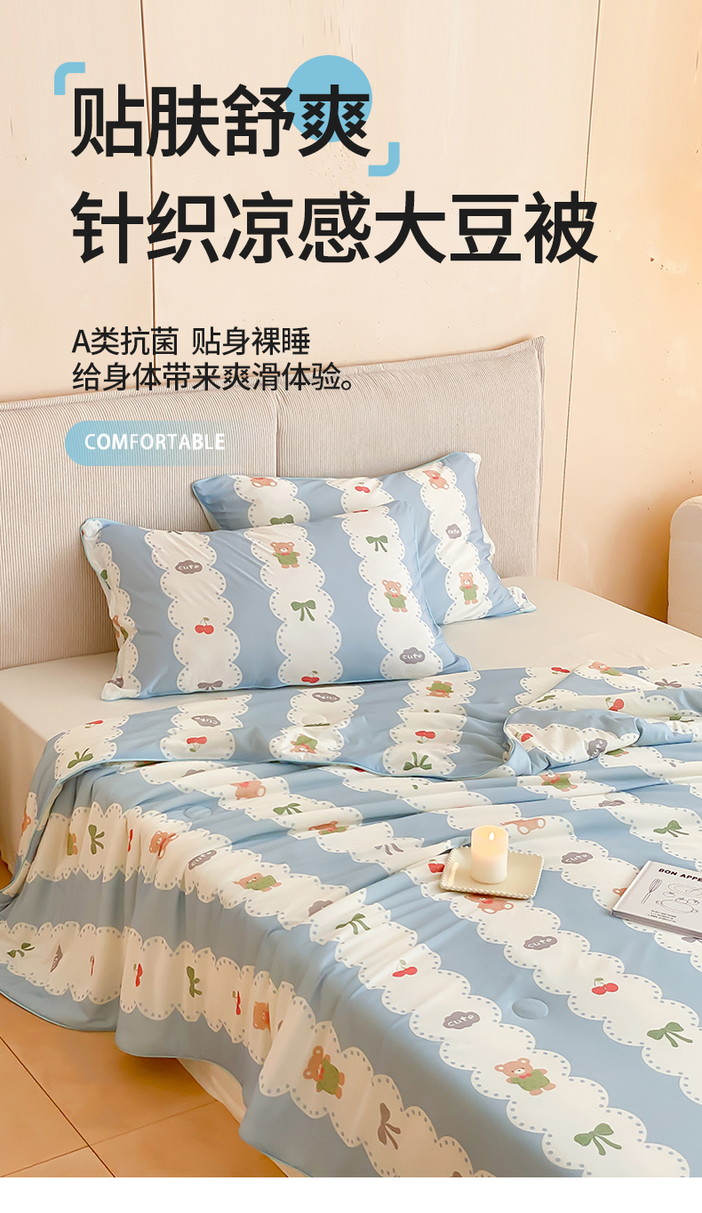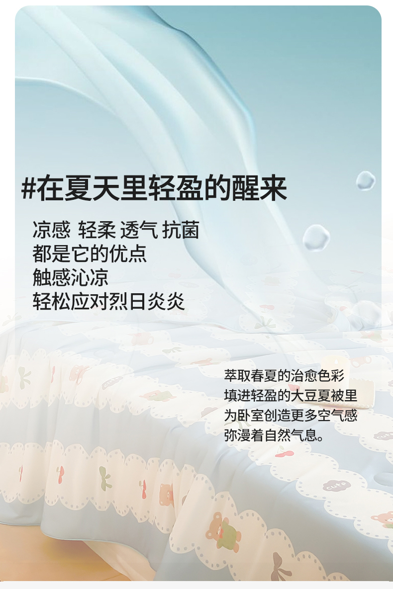 商品名称:头等舱 2025新款针织棉凉感氨纶A类印华大豆抗菌夏被 小熊伴嫁