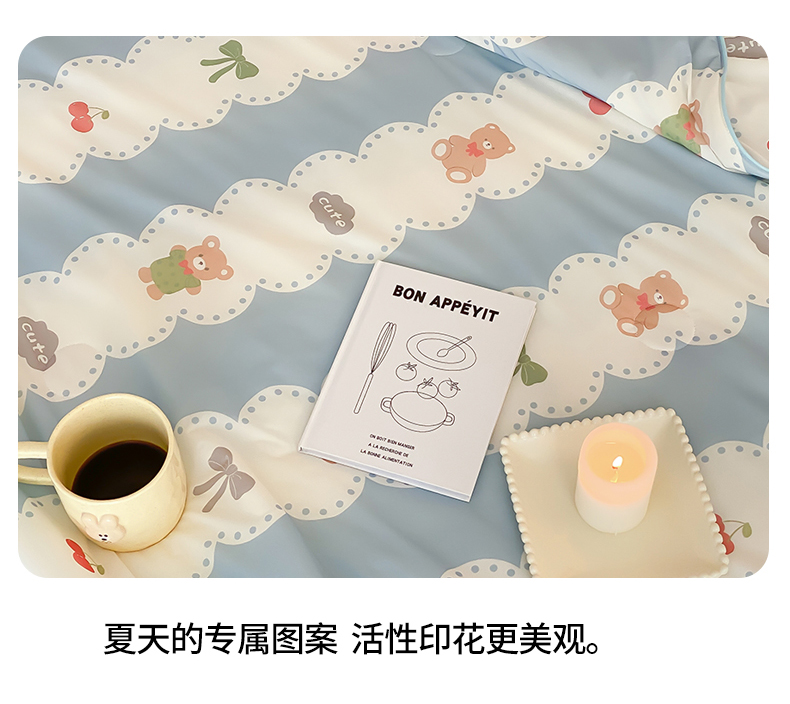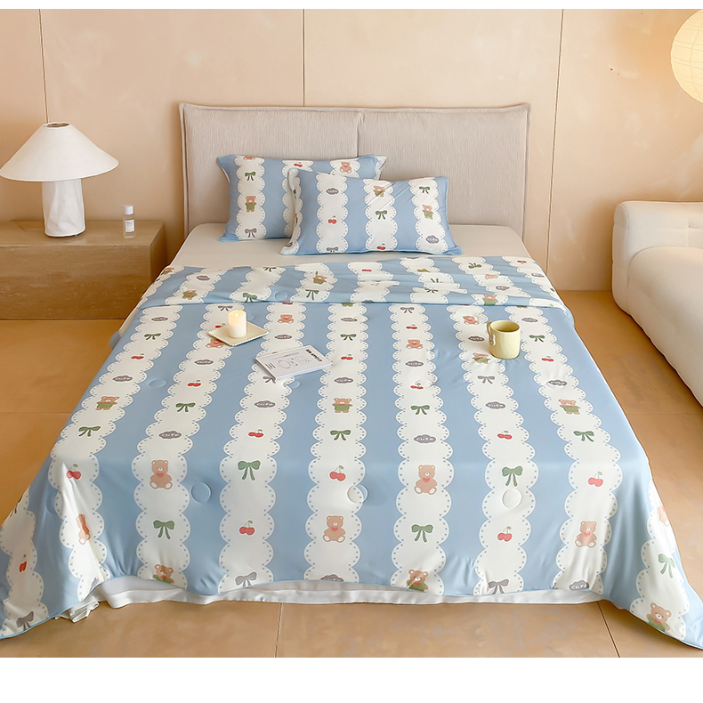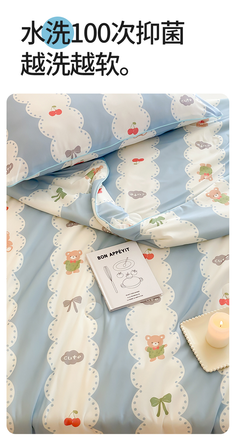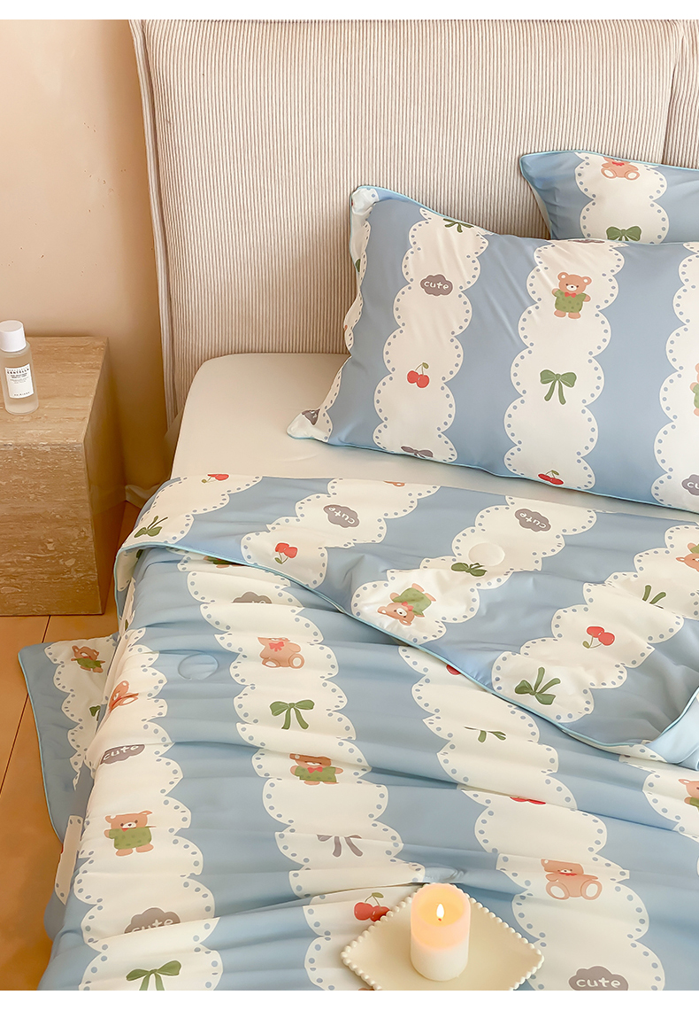 商品名称:头等舱 2025新款针织棉凉感氨纶A类印华大豆抗菌夏被 小熊伴嫁