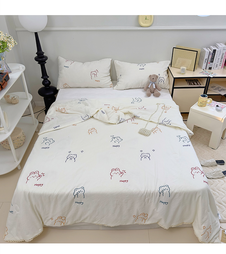 (总)TT.one 塔塔家居 2025新款有氧泡泡棉云朵皱皱棉小花边夏被,洛丽塔熊,可爱熊仔,森林物语,兔兔莓莓,云朵熊,紫色郁金香,曼妙花园,猫咪酱,苹果乐园,山茶花