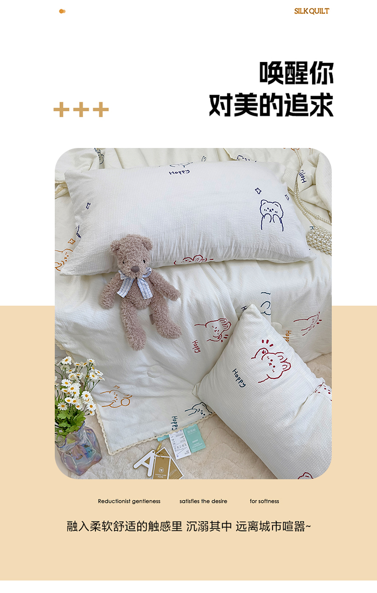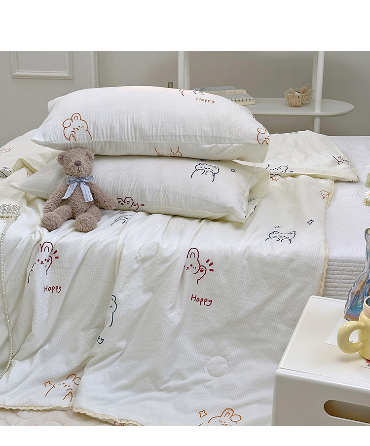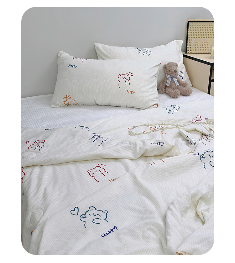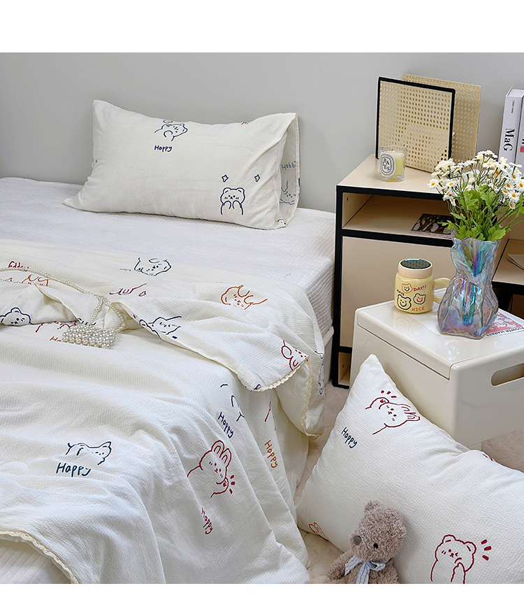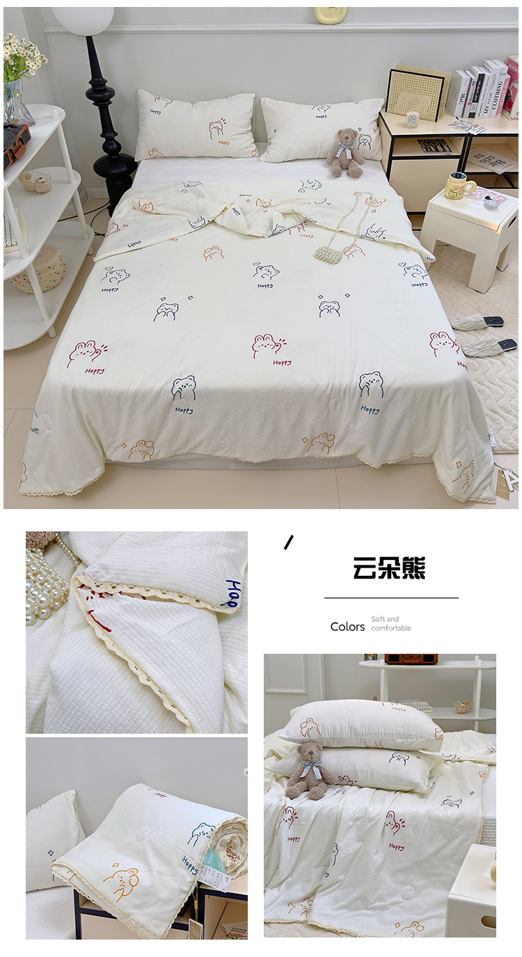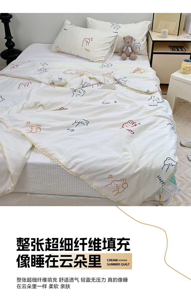 商品名称:塔塔 云朵皱皱棉小花边夏被 云朵熊