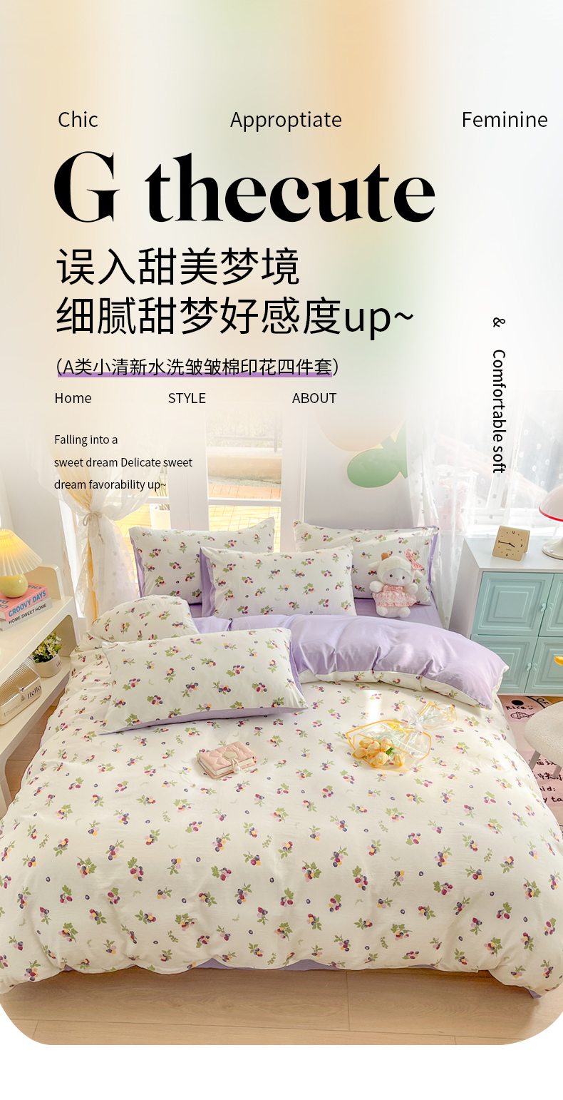 当前位置: 91家纺网 > 商品网购 > 床品套件 > 四件套 > 其它四件套 > 优选良品 2025新款直播爆款母婴级水洗皱皱棉四件套小碎花被套床笠款三件套清新葡语