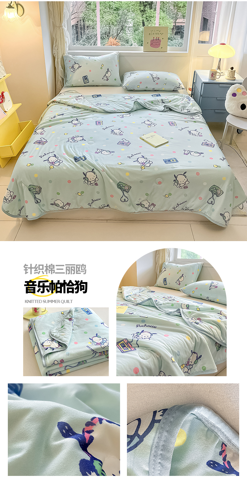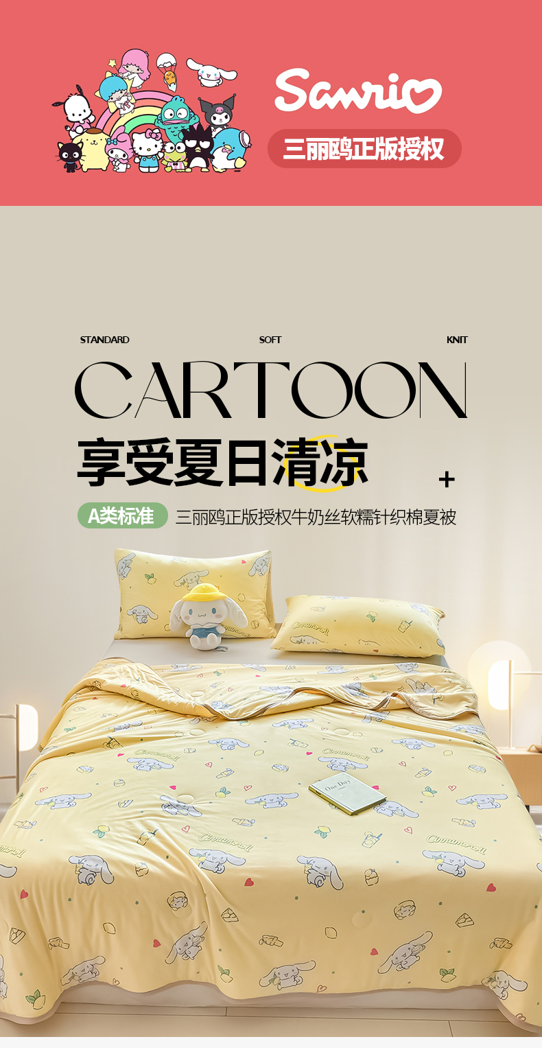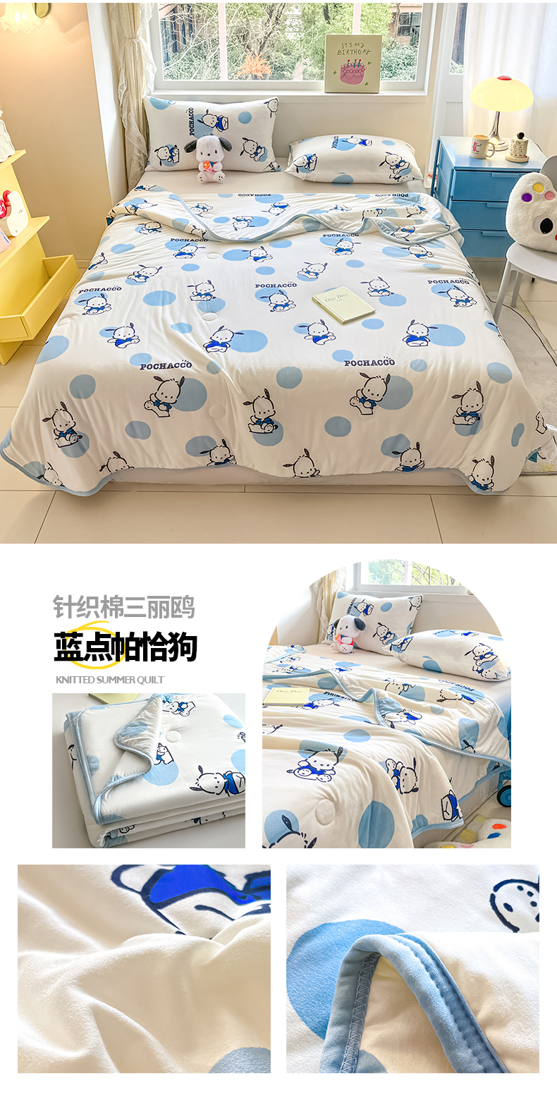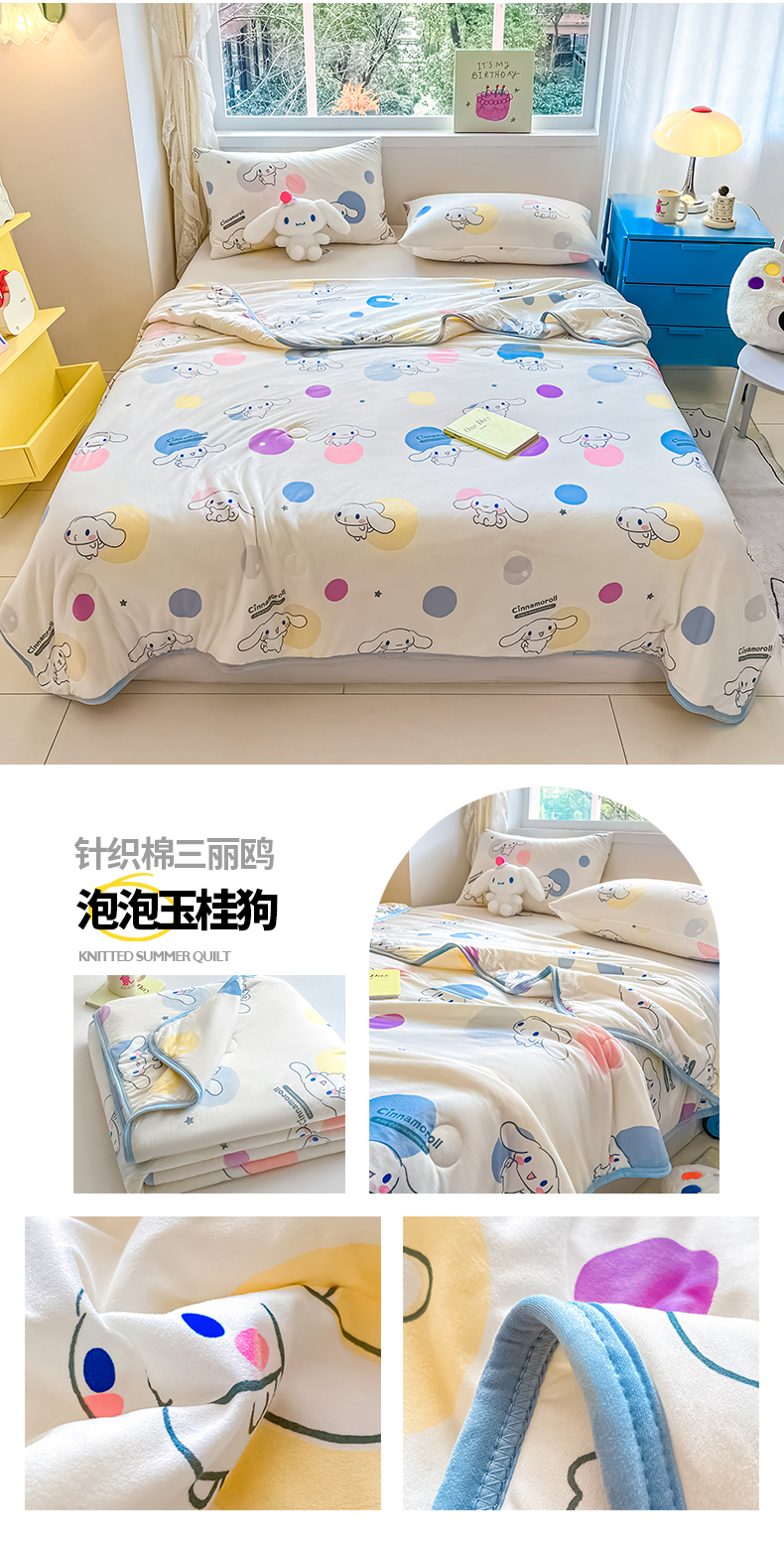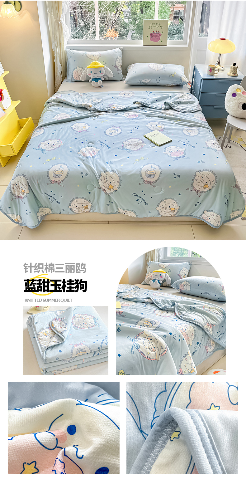 • 91家纺网 家纺一手货源 找家纺 桃子家居 2024新款A类三丽鸥正版授权高品质牛奶丝软糯针织棉夏被系列 针织棉三丽鸥-柠檬玉桂狗