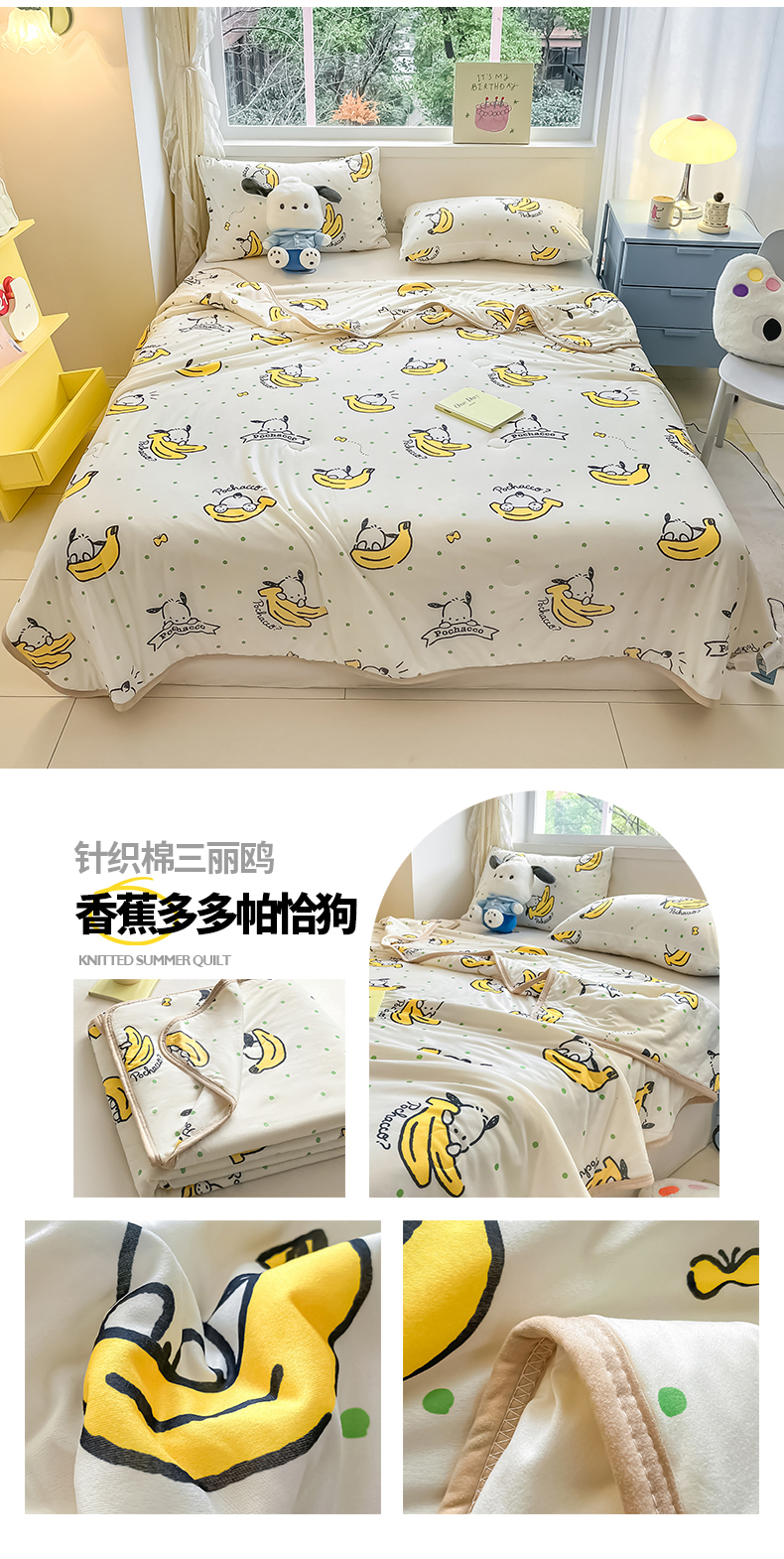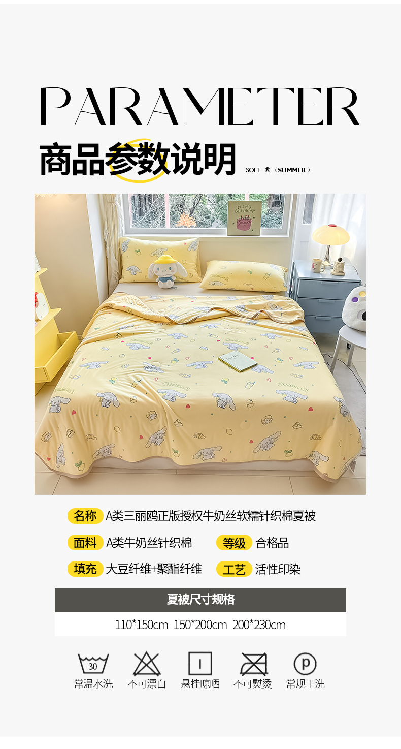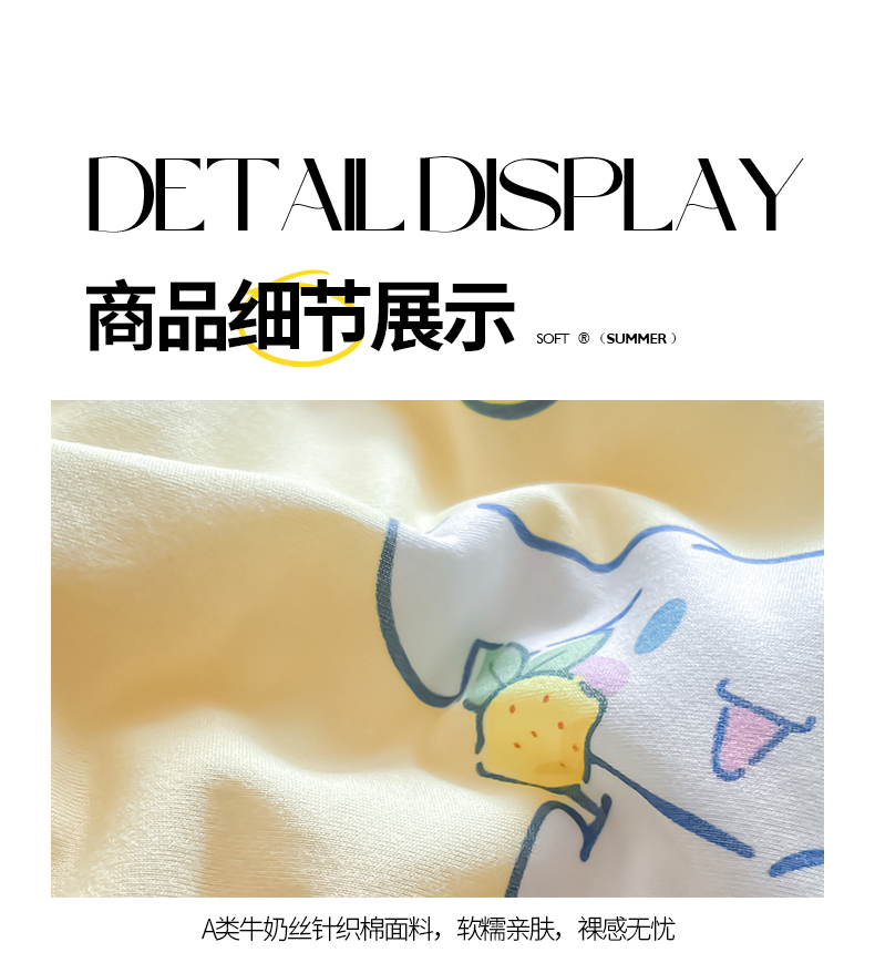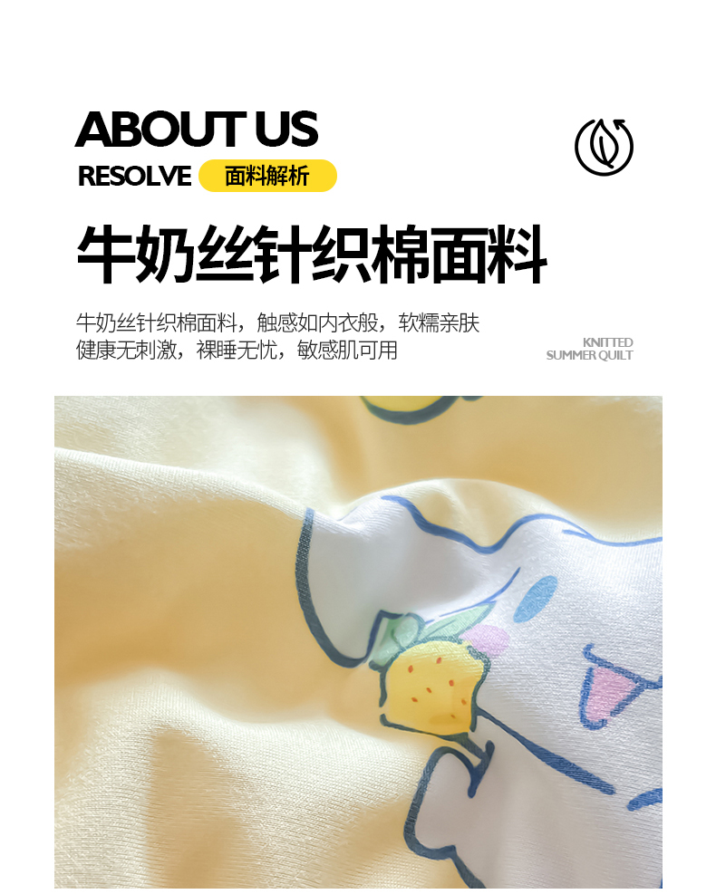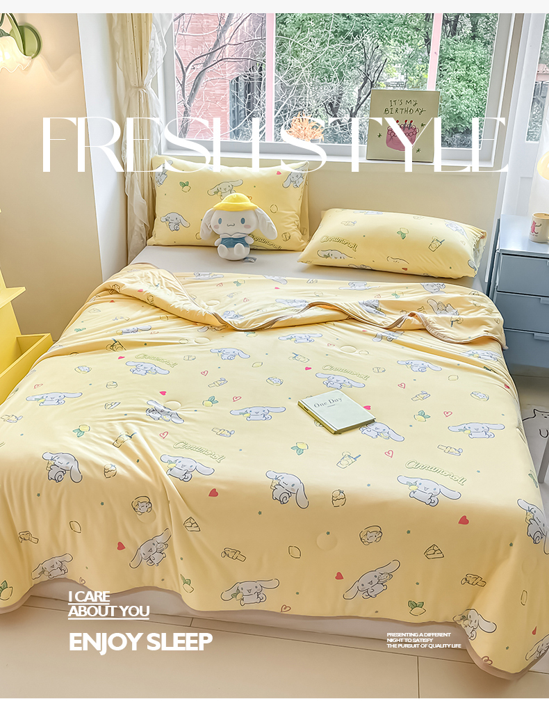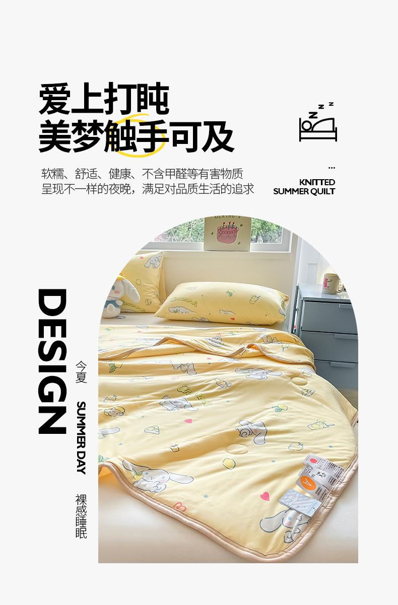 • 91家纺网 家纺一手货源 找家纺 桃子家居 2024新款A类三丽鸥正版授权高品质牛奶丝软糯针织棉夏被系列 针织棉三丽鸥-柠檬玉桂狗