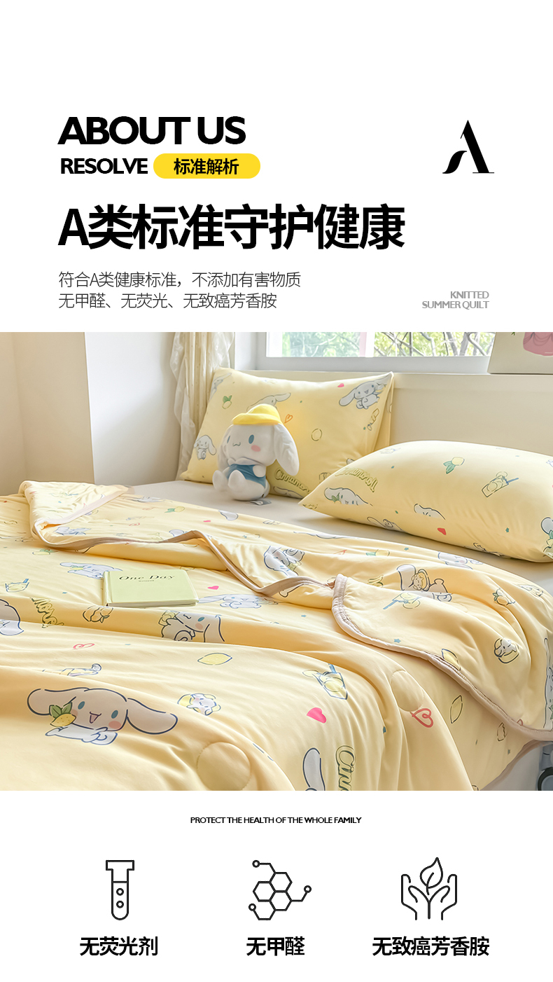 当前位置: 91家纺网 > 商品网购 > 被子 > 普通夏被 > 桃子家居 2024新款A类三丽鸥正版授权高品质牛奶丝软糯针织棉夏被系列 针织棉三丽鸥-柠檬玉桂狗