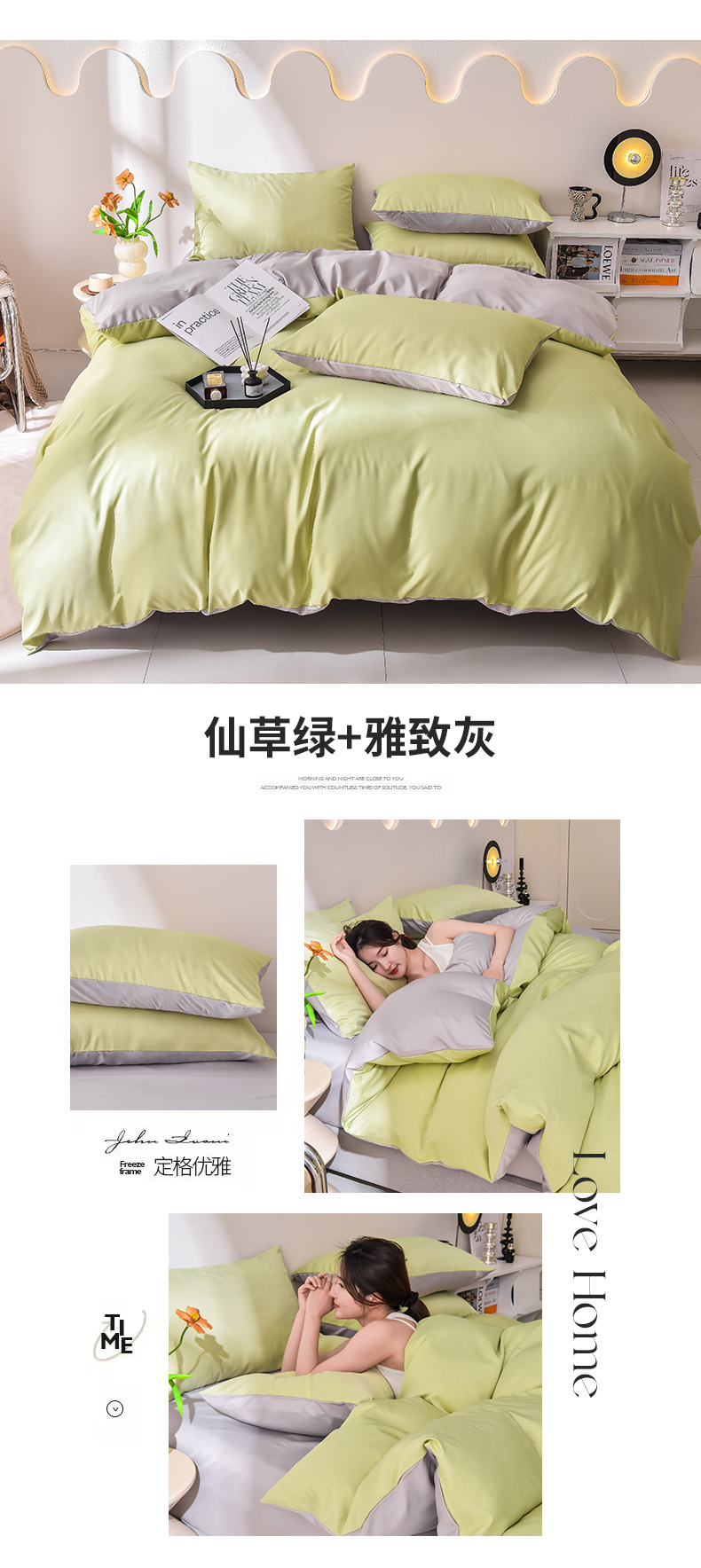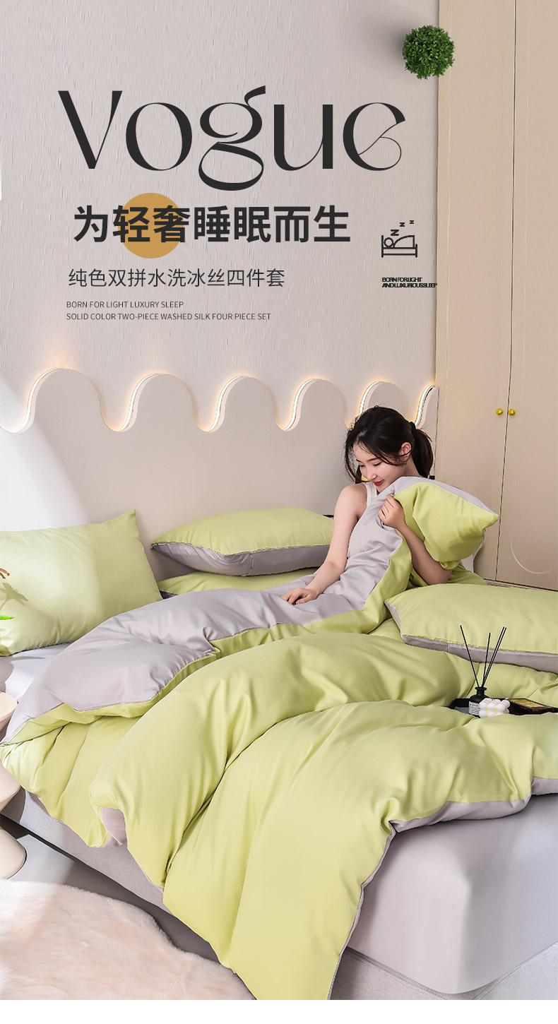当前位置: 91家纺网 > 商品网购 > 床品套件 > 四件套 > 真丝四件套 > 简爱家纺 2025新款水洗真丝四件套 仙草绿+雅致灰