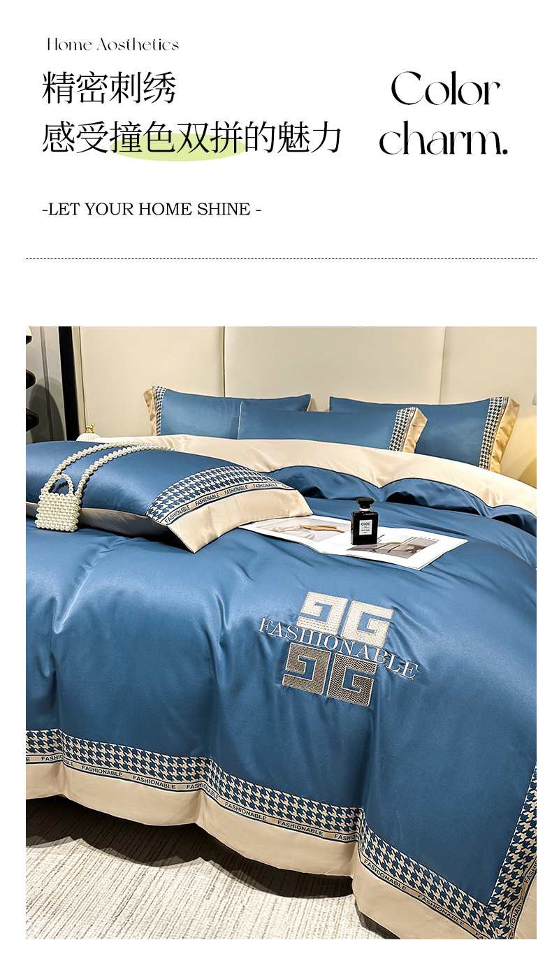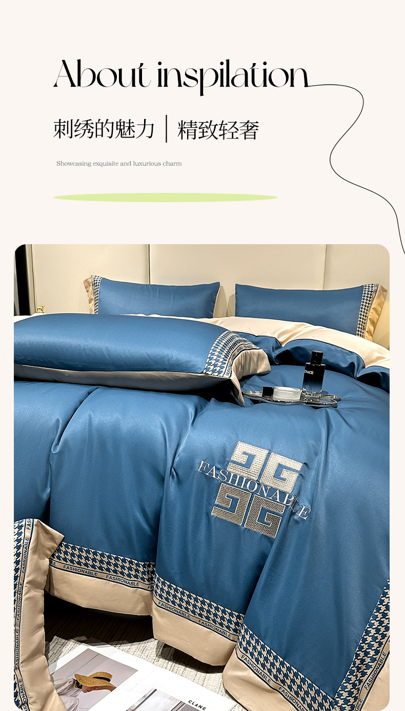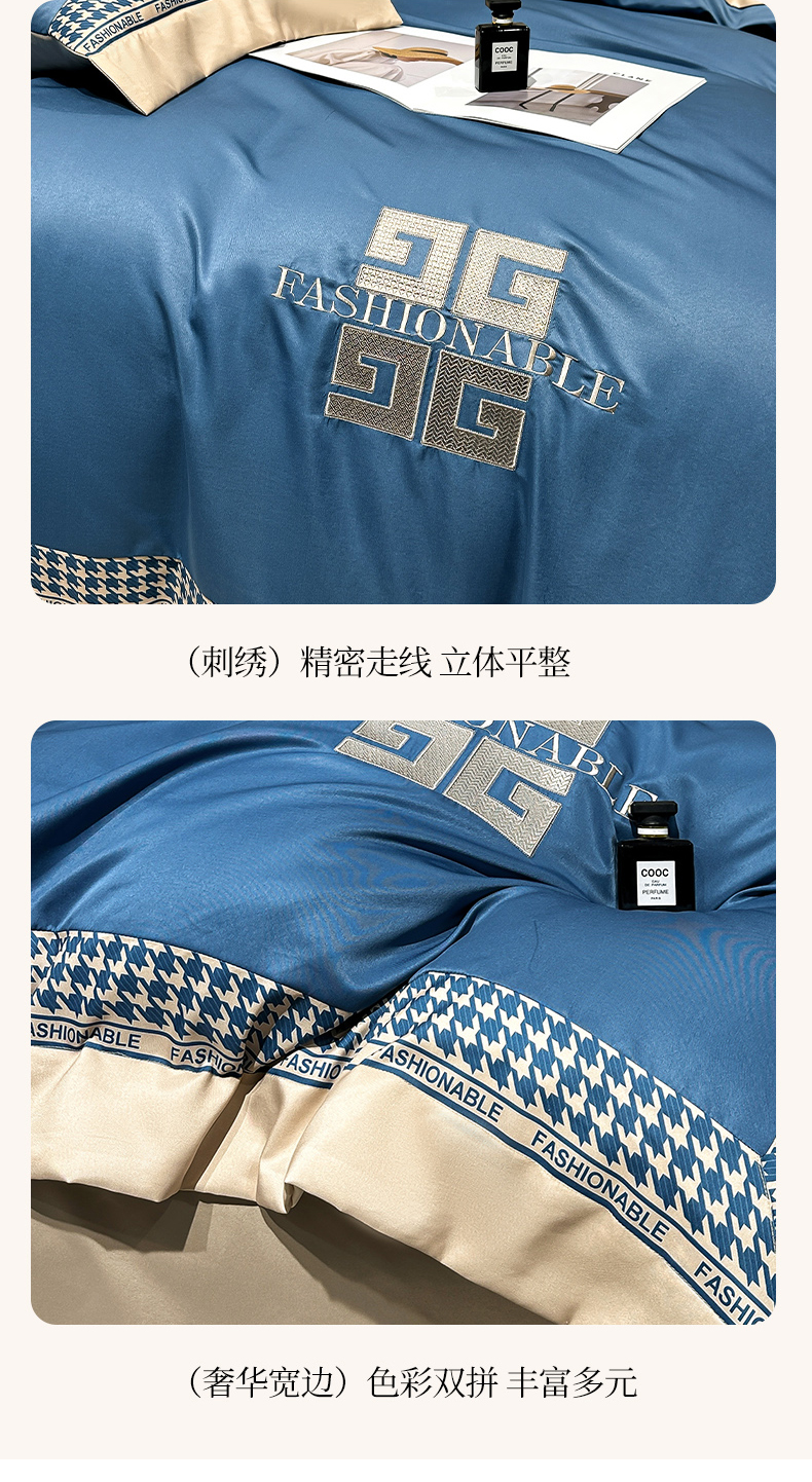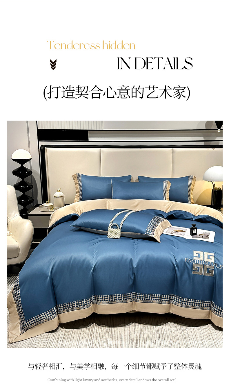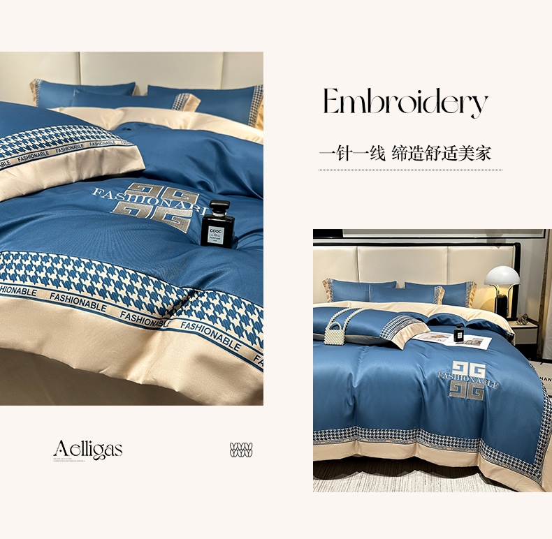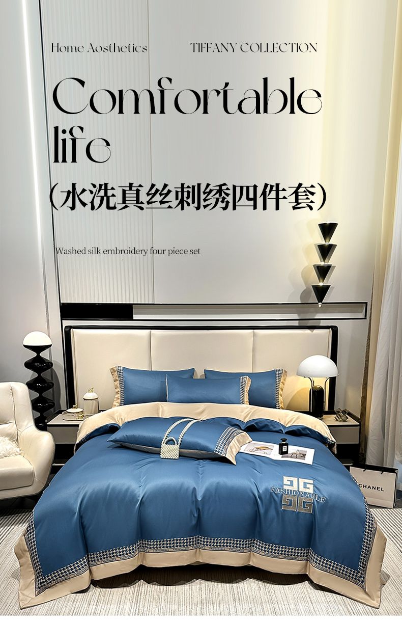 富盛家纺 2024新款水洗真丝刺绣四件套-威灵顿 威灵顿—深蓝