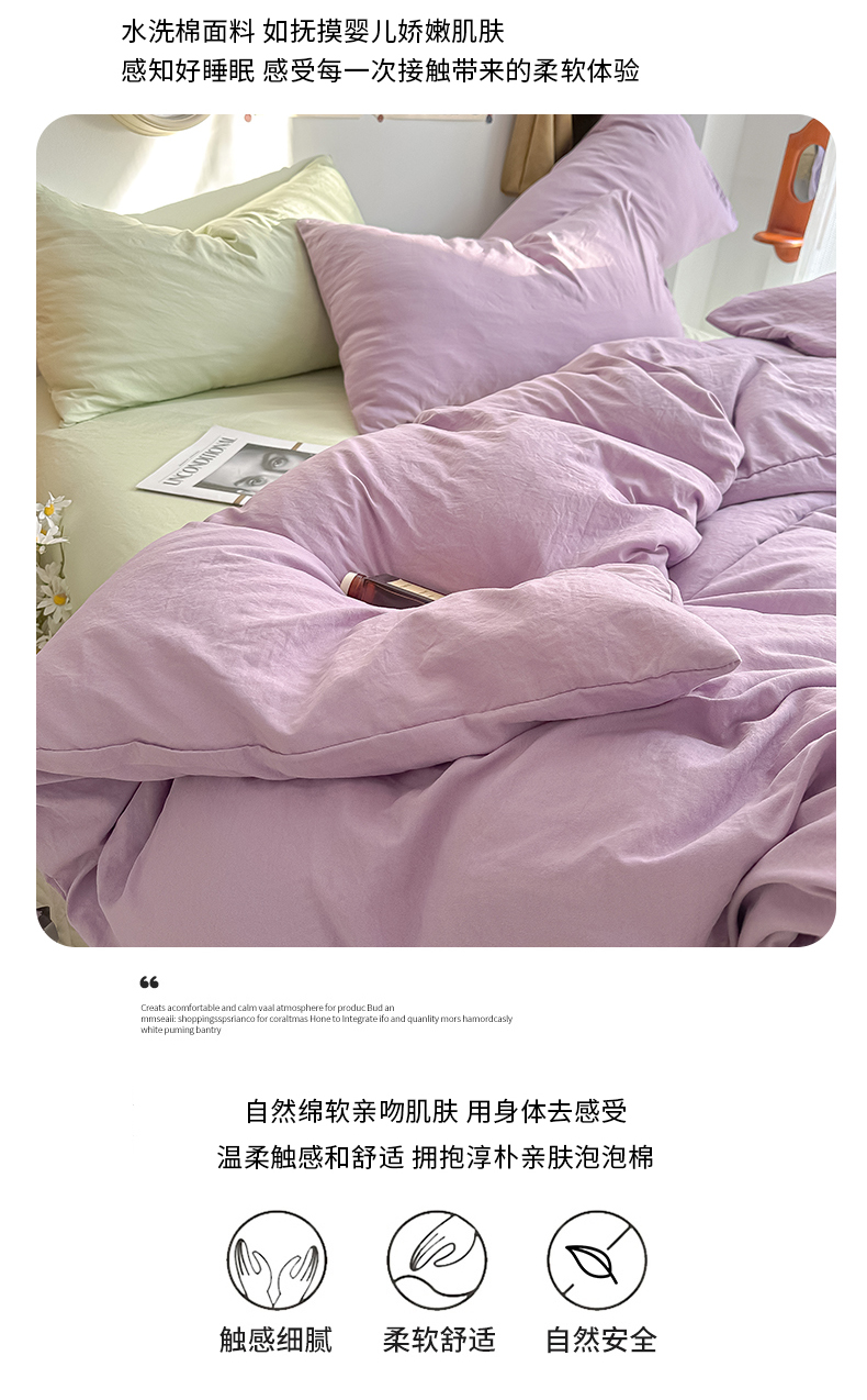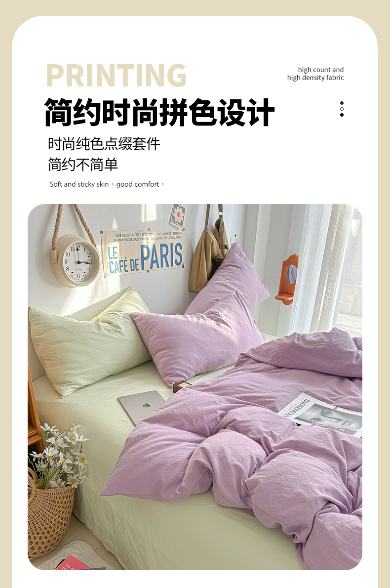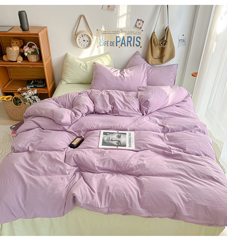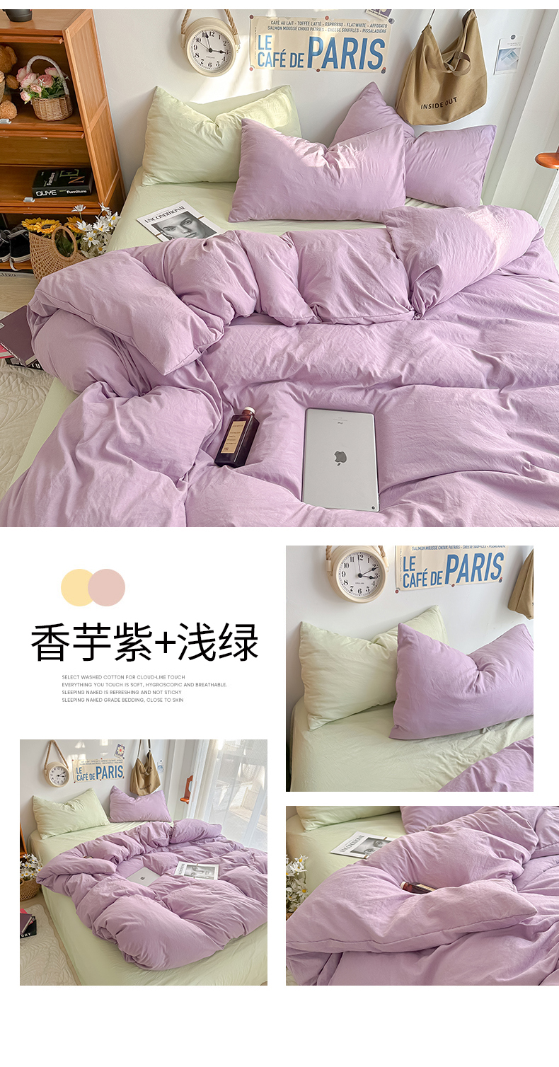 当前位置: 91家纺网 > 商品网购 > 床品套件 > 四件套 > 全棉普通四件套 > 易辰美 2024新款混搭超柔水洗棉四件套 香芋紫+浅绿