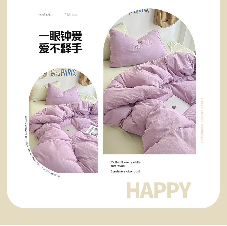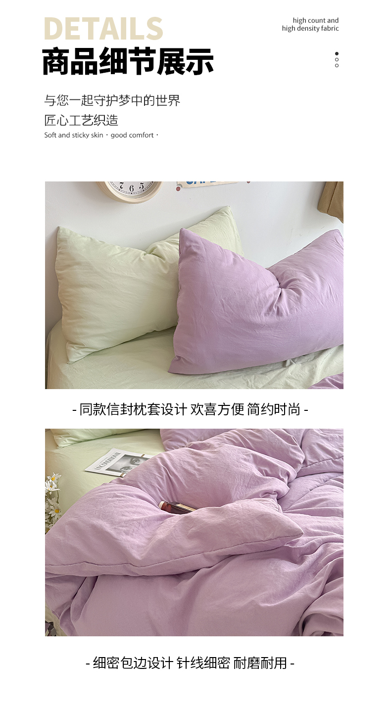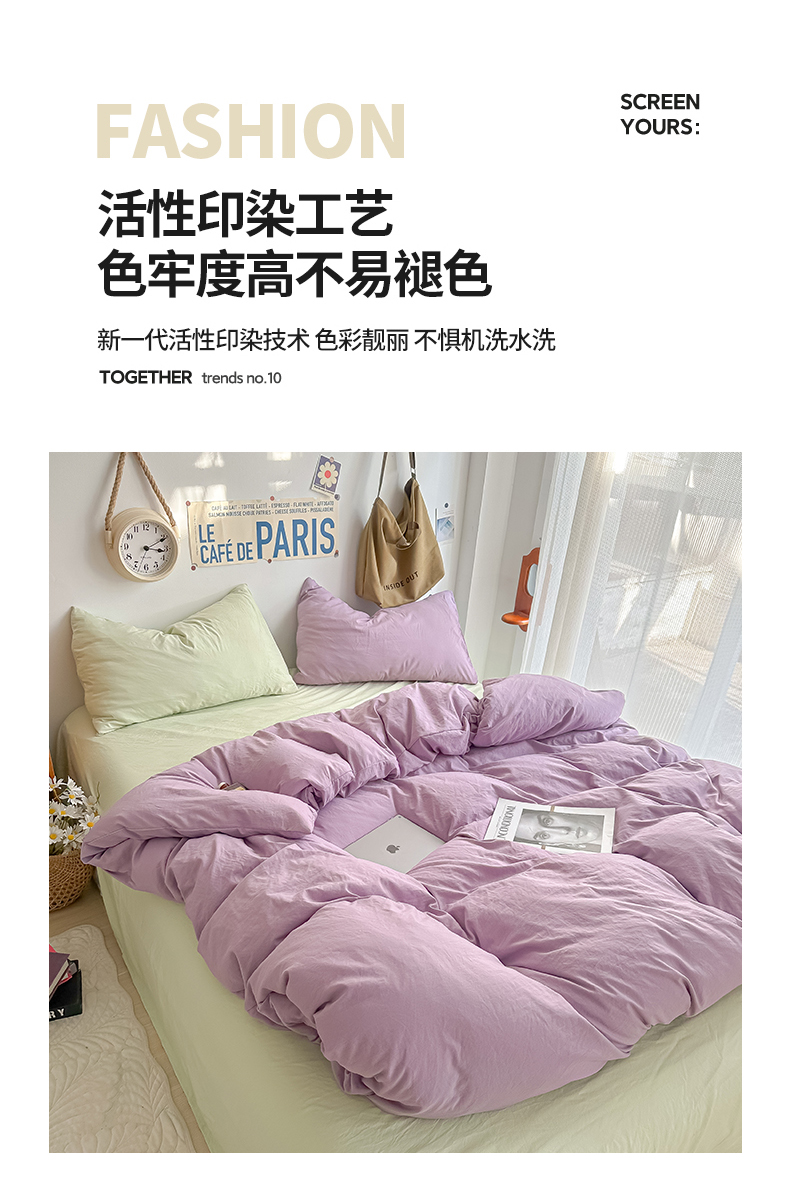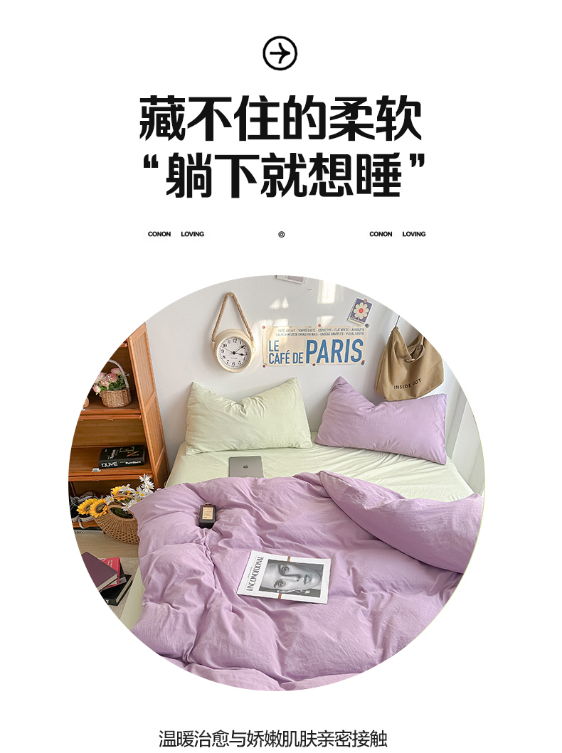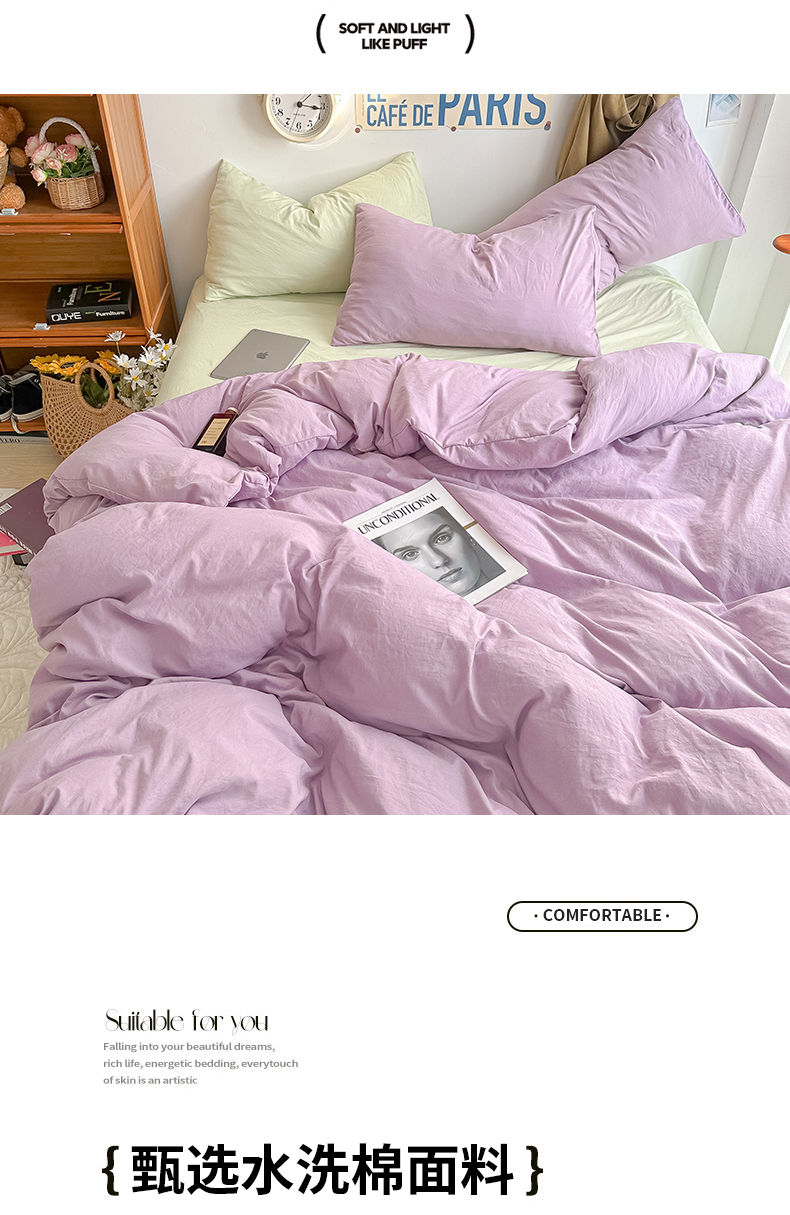 当前位置: 91家纺网 > 商品网购 > 床品套件 > 四件套 > 全棉普通四件套 > 易辰美 2024新款混搭超柔水洗棉四件套 香芋紫+浅绿