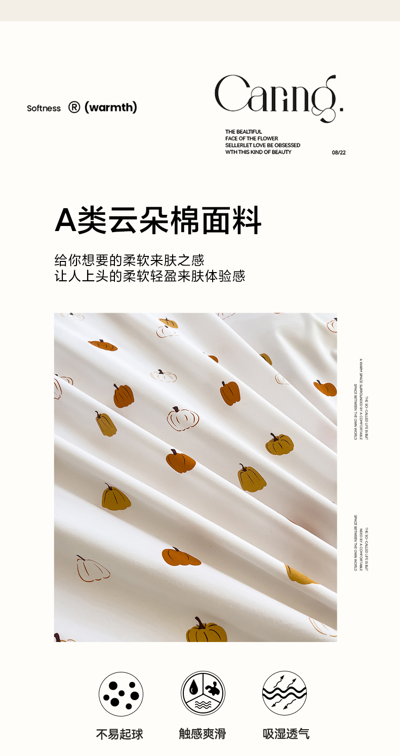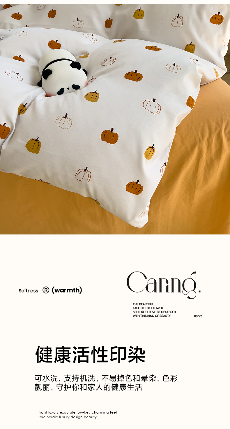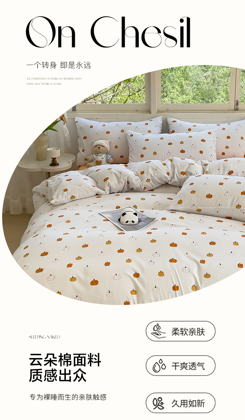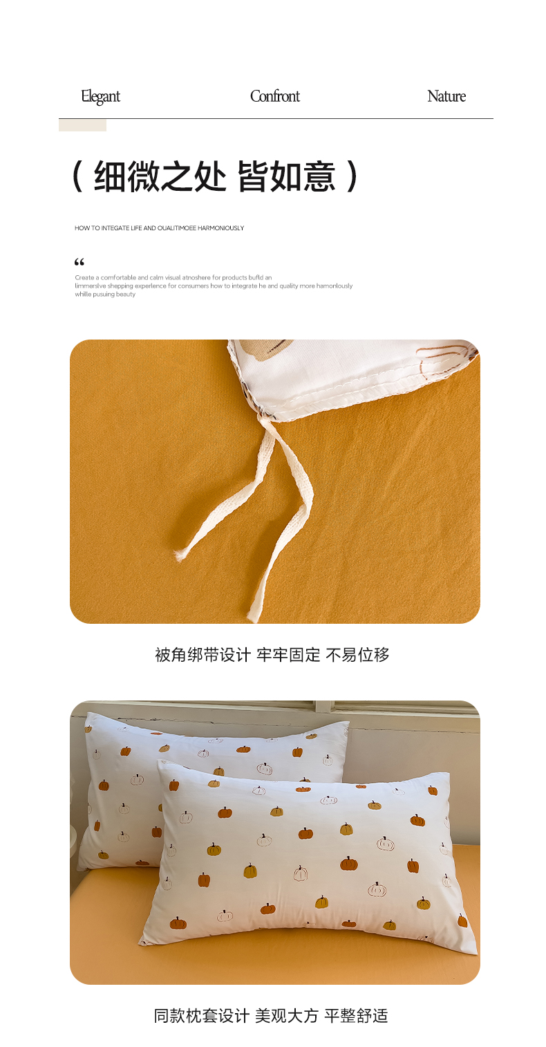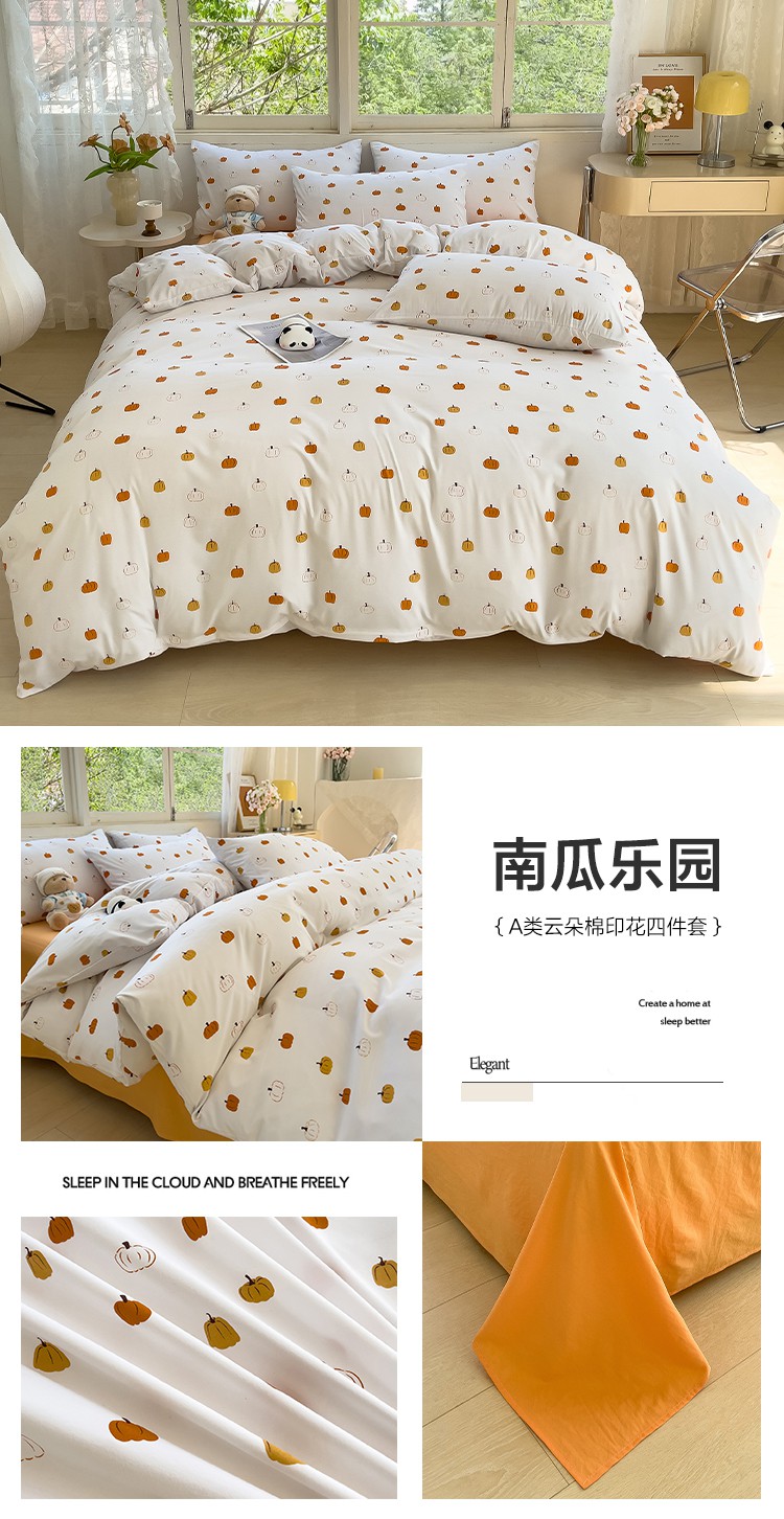 当前位置: 91家纺网 > 商品网购 > 床品套件 > 四件套 > 其它四件套 > 乐萱家纺 2024新款水洗云朵棉小清新四件套超柔印花单被套 南瓜乐园