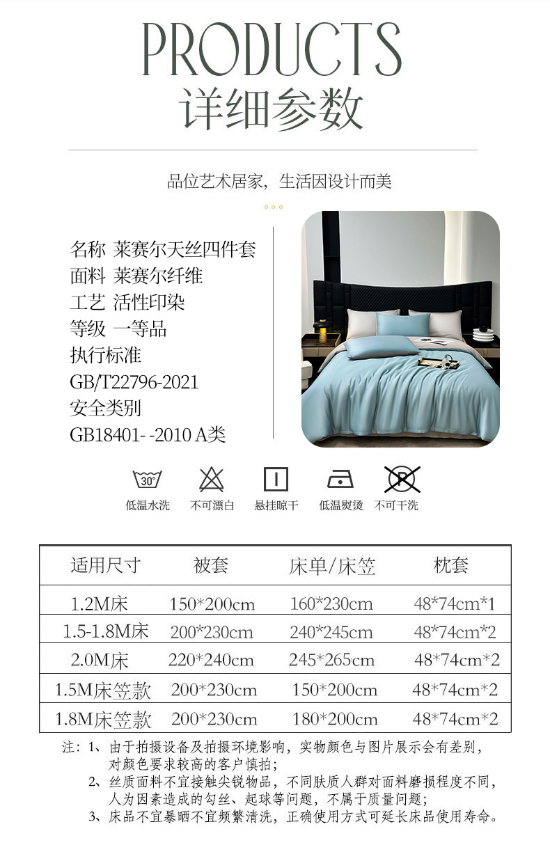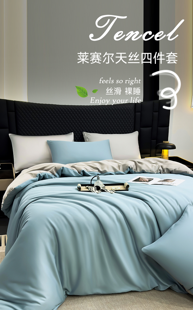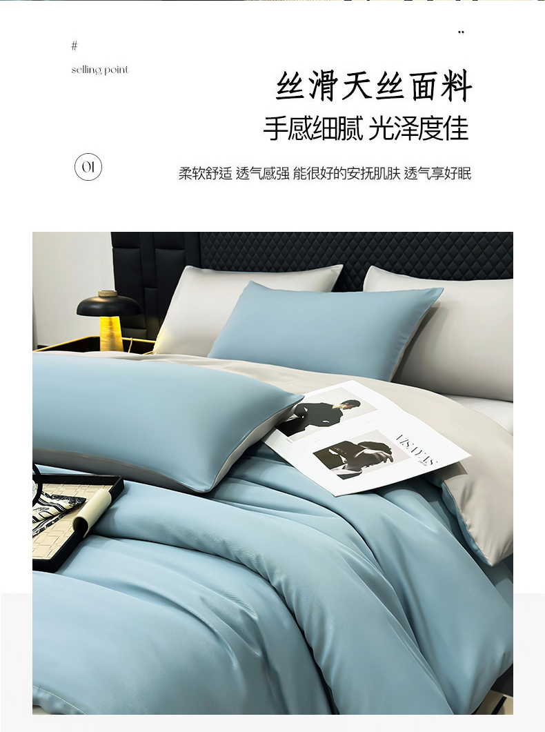 商品名称:直播爆款A类轻奢60S莱赛尔天丝四件套真丝四件套 海清+山灰
