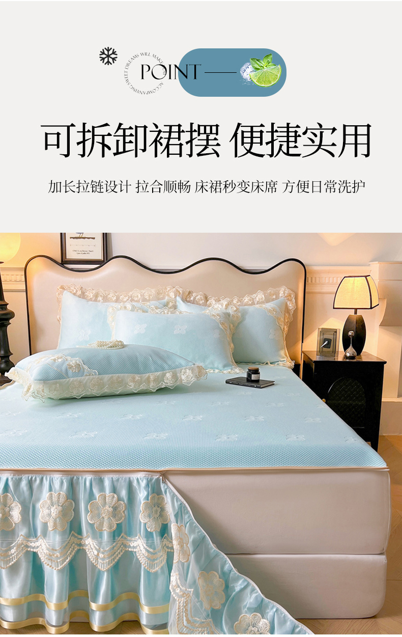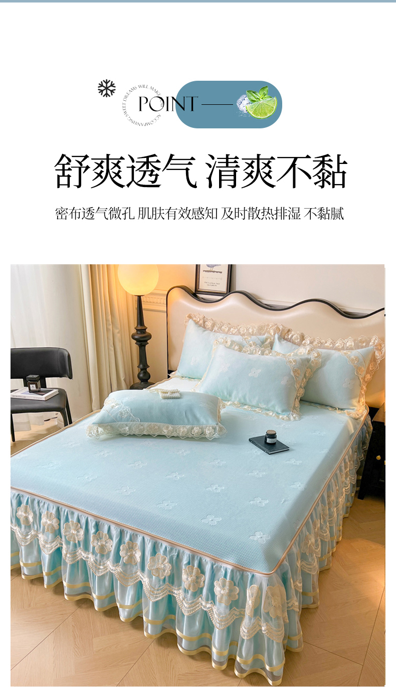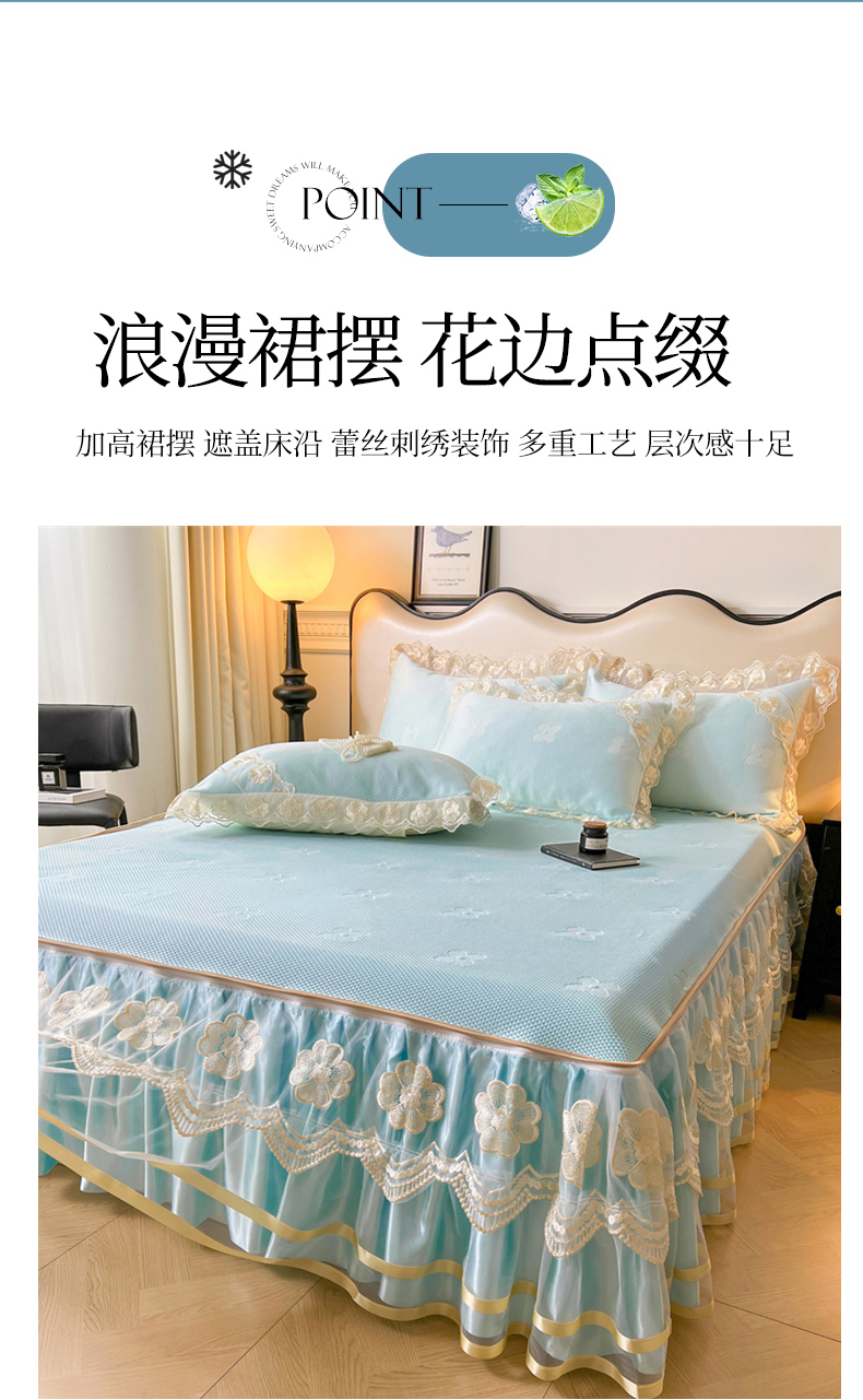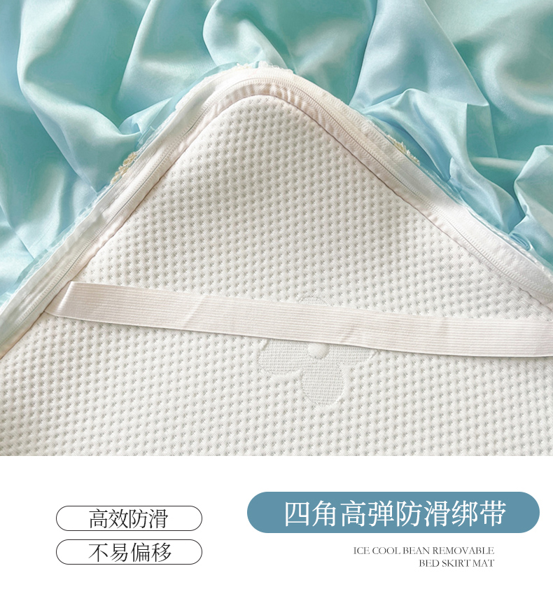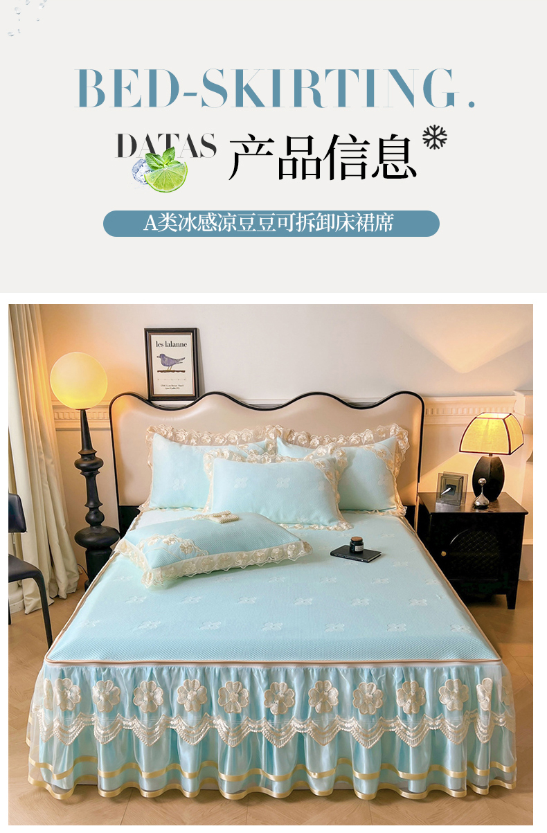 商品名称:虹星家纺 2024新款A类冰感凉豆豆可拆卸床裙席三件套 冰川蓝