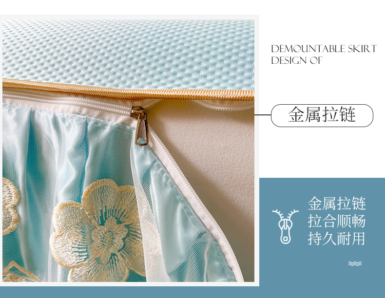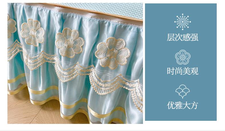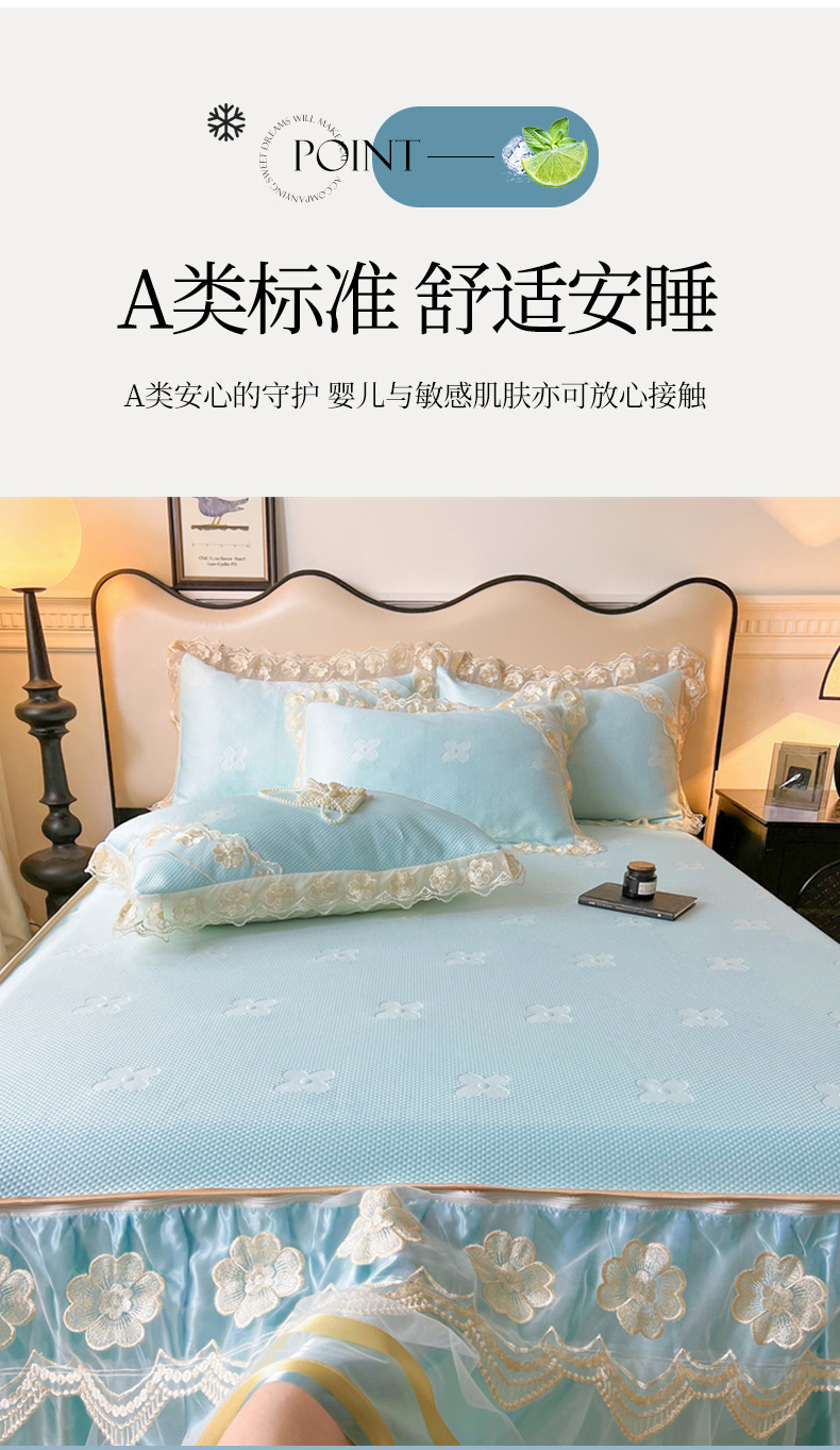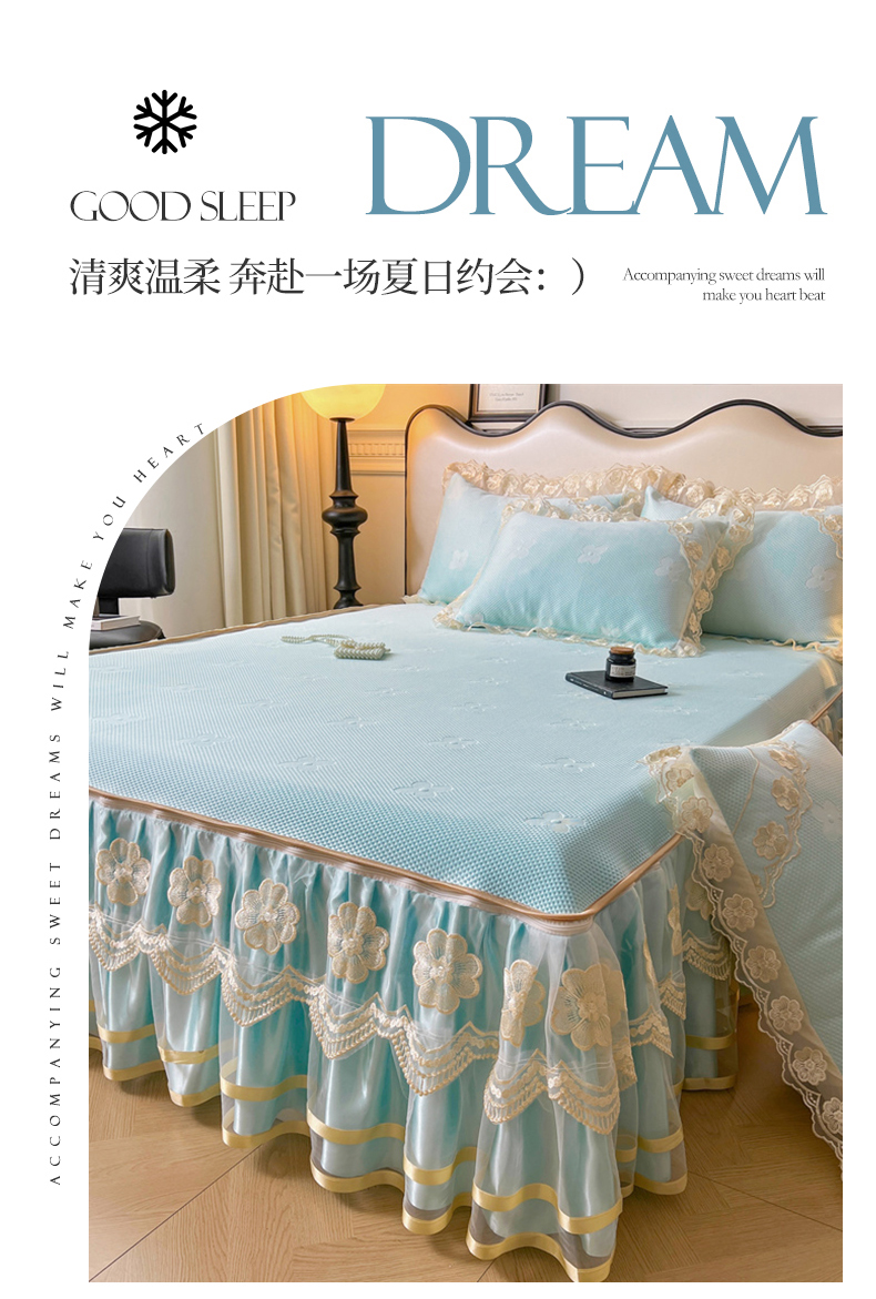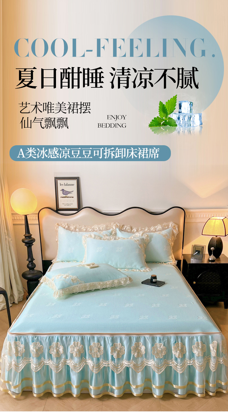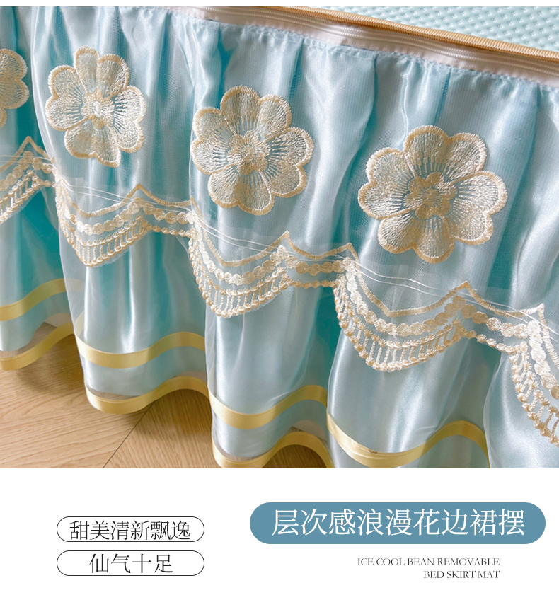 商品名称:虹星家纺 2024新款A类冰感凉豆豆可拆卸床裙席三件套 冰川蓝