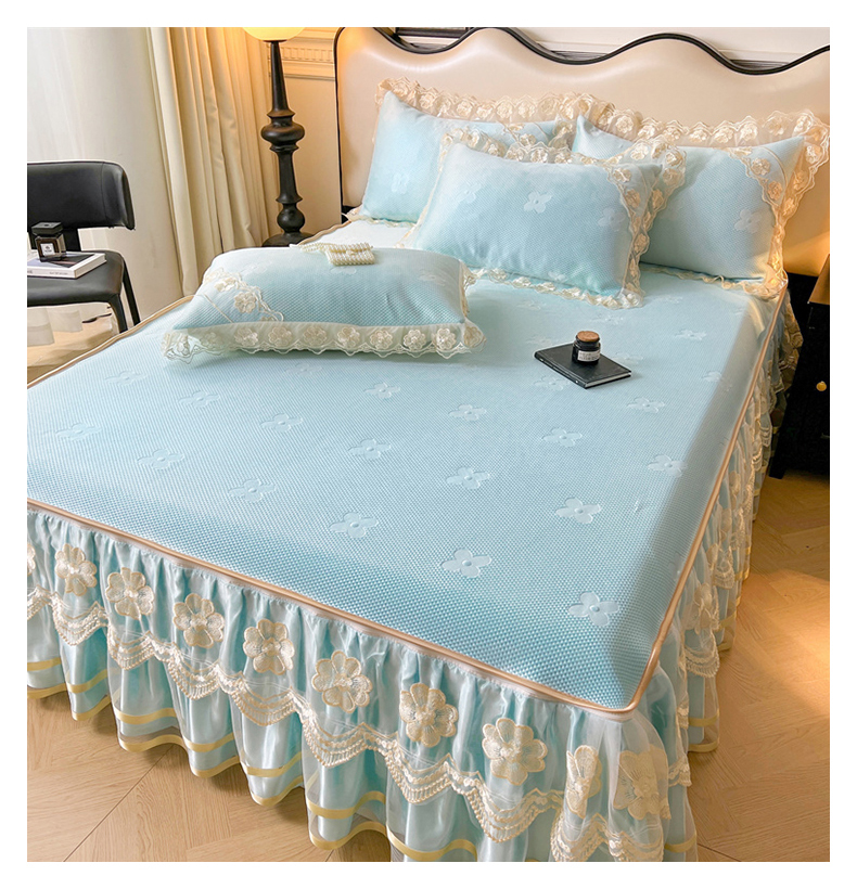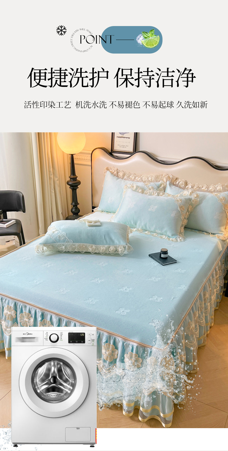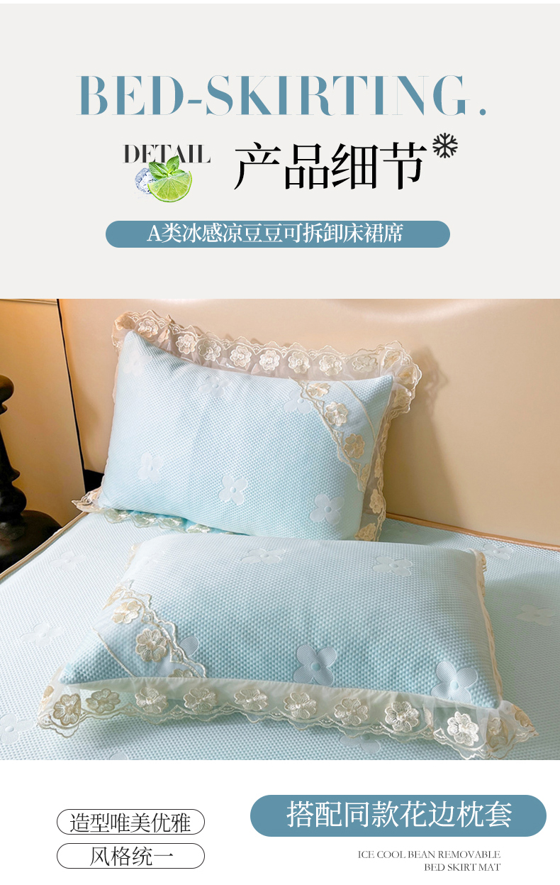 (总)虹星家纺 2025新款A类冰感凉豆豆床裙席三件套-素夏,素夏-抹茶绿,素夏-蜜桃粉,素夏-青果绿,素夏-天空蓝,素夏-月光灰