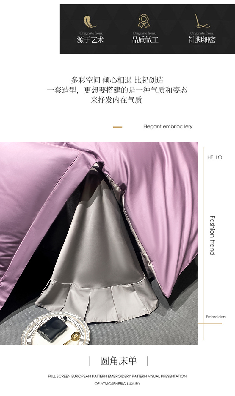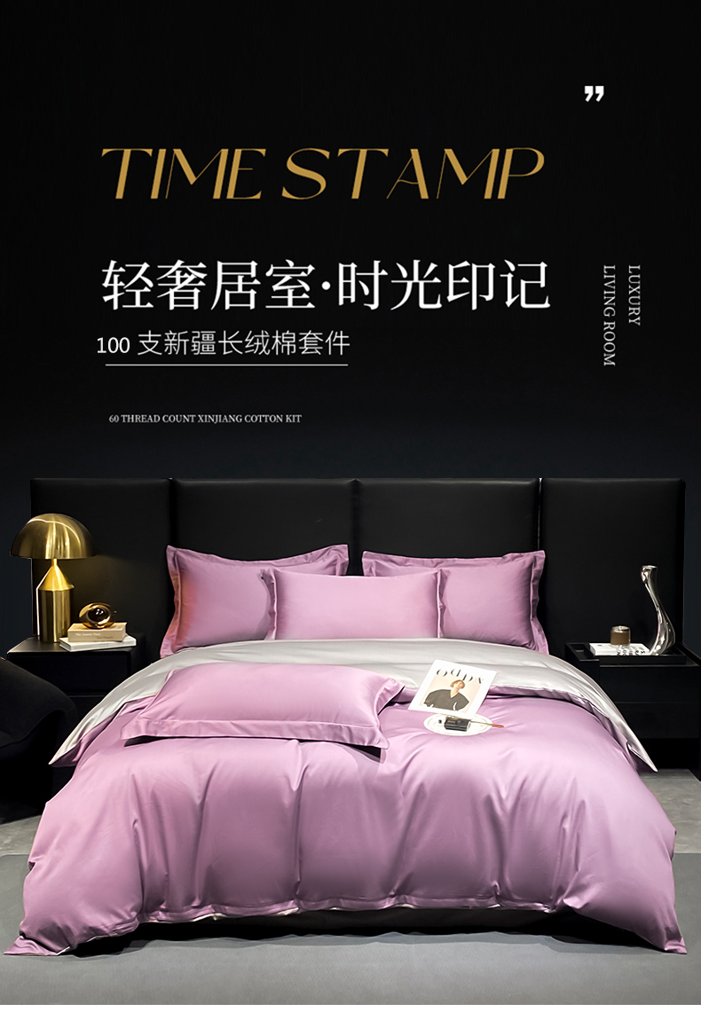 富之航家纺 2024新款长绒棉四件套 雅克-香芋紫灰