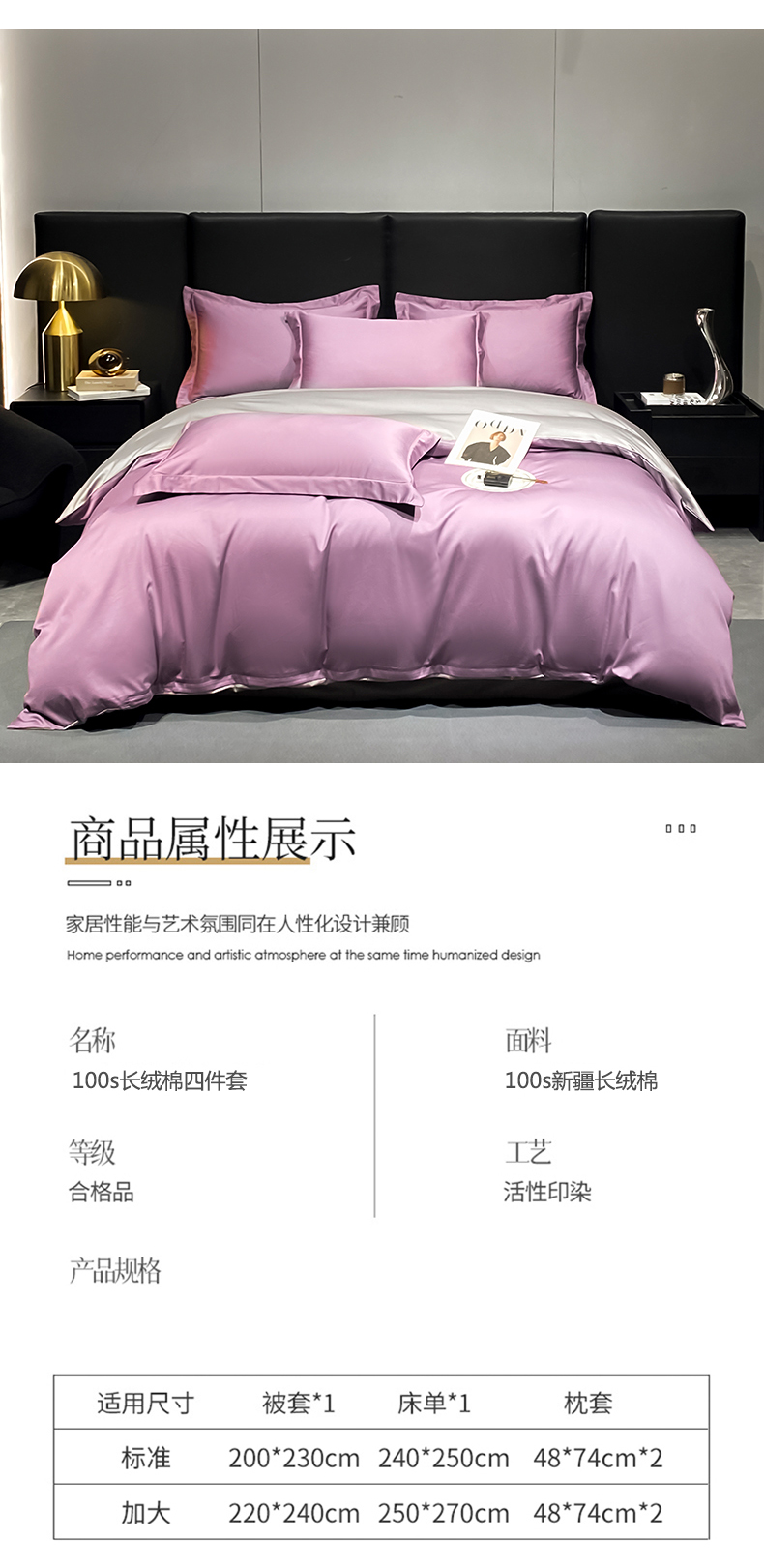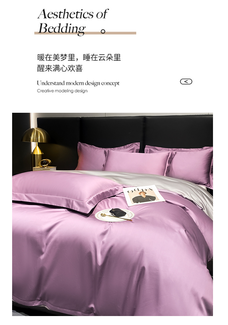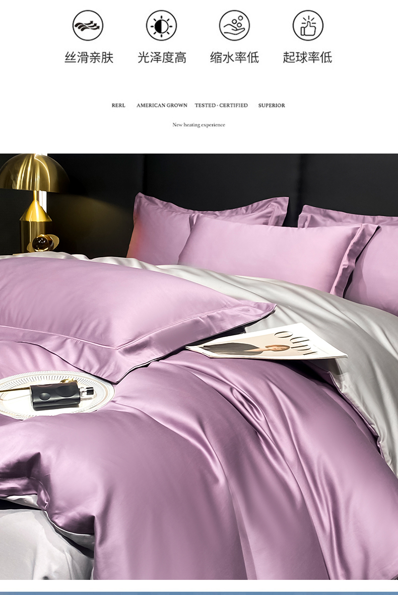 商品名称:富之航家纺 2024新款长绒棉四件套 雅克-香芋紫灰