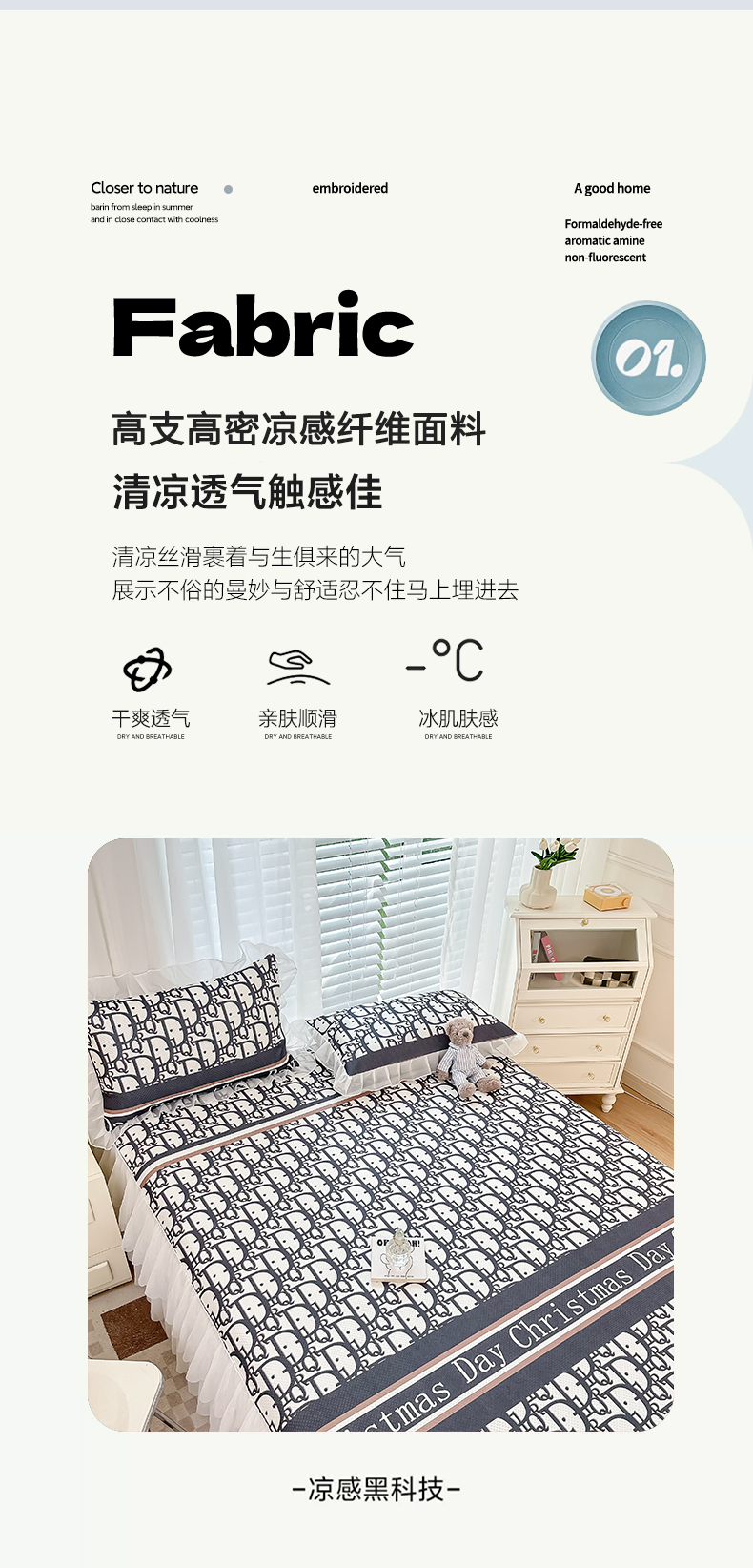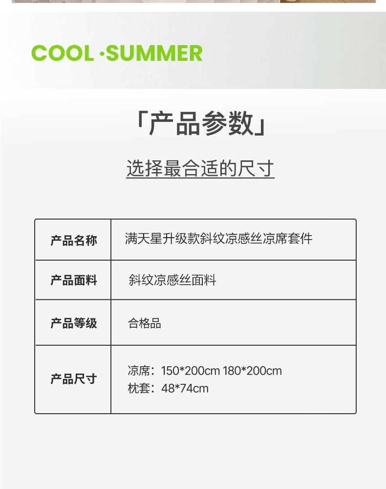 商品名称:花漾家居 2024新款韩版满天星升级款斜纹冰丝凉感丝豆豆席凉席 D字母