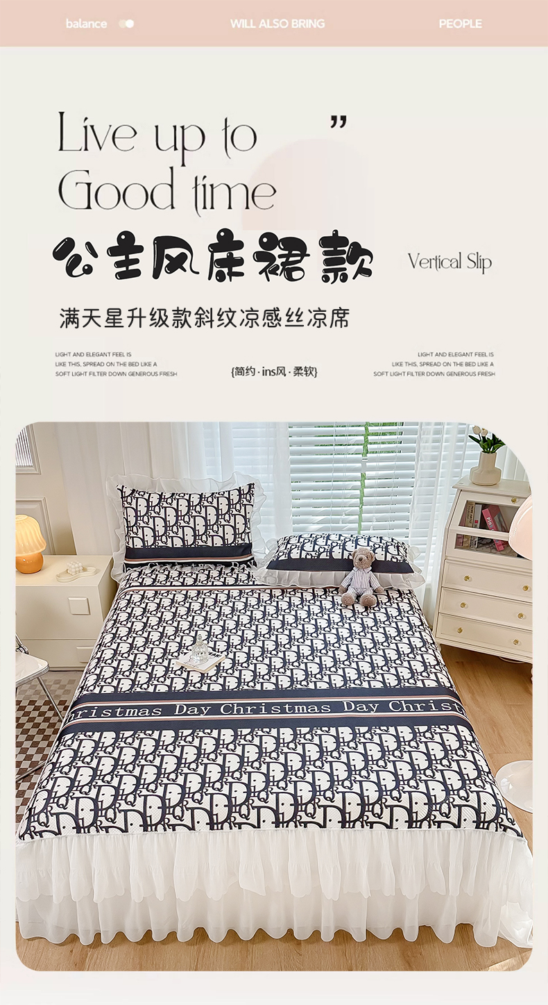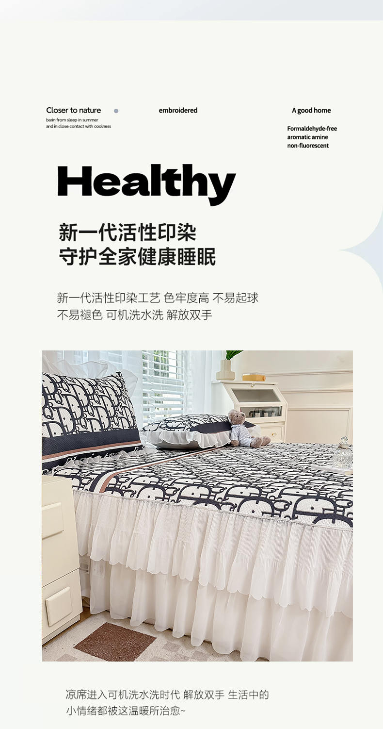 花漾家居 2024新款韩版满天星升级款斜纹冰丝凉感丝豆豆席凉席 D字母
